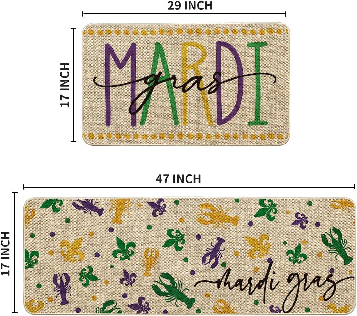 Artoid Mode Irises Mardi Gras Kitchen Mats Set of 2, Home Decor Low-Profile Kitchen Rugs for Floor – 17×29 and 17×47 Inch
