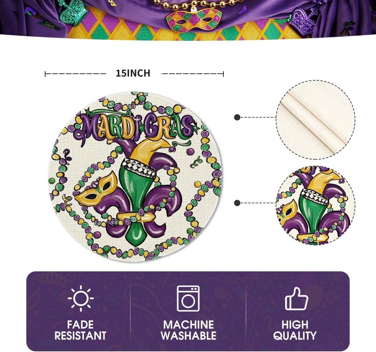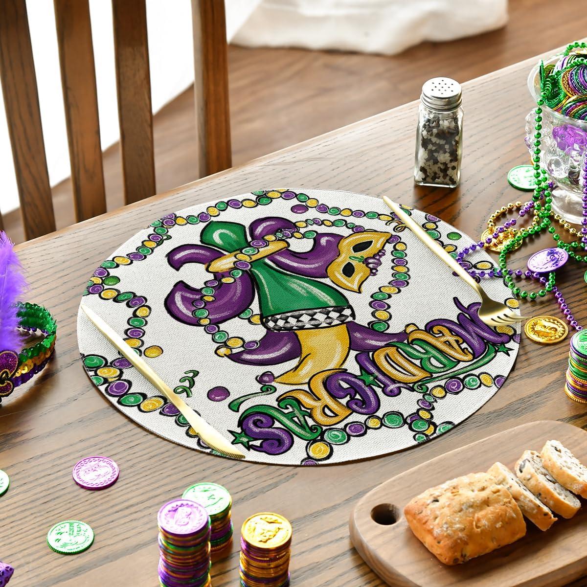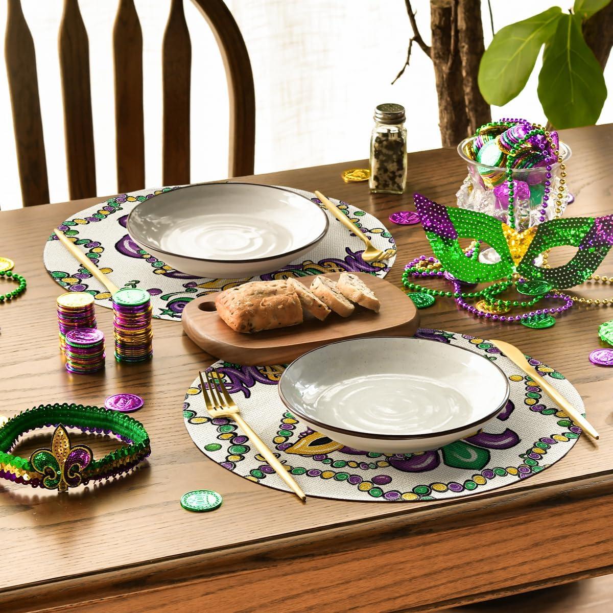 Artoid Mode Irises Mask Carnival Mardi Gras Placemats Set of 4, 14 Inch Jewelry Round Table Mats for Dining Decoration(Beige)
