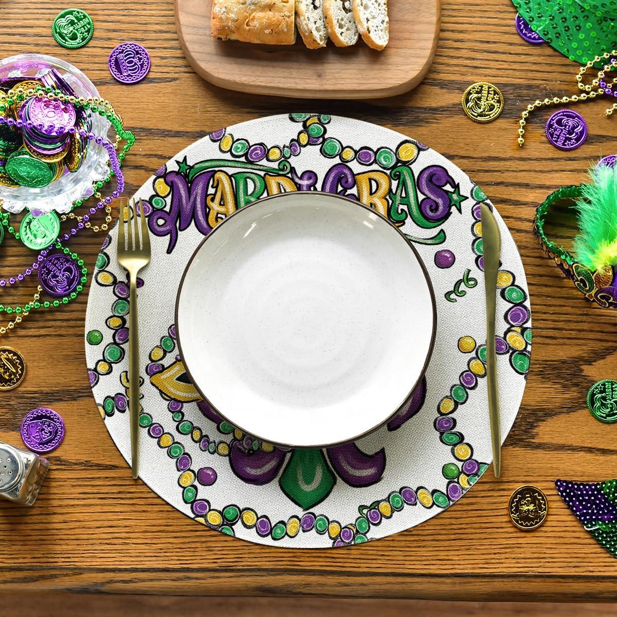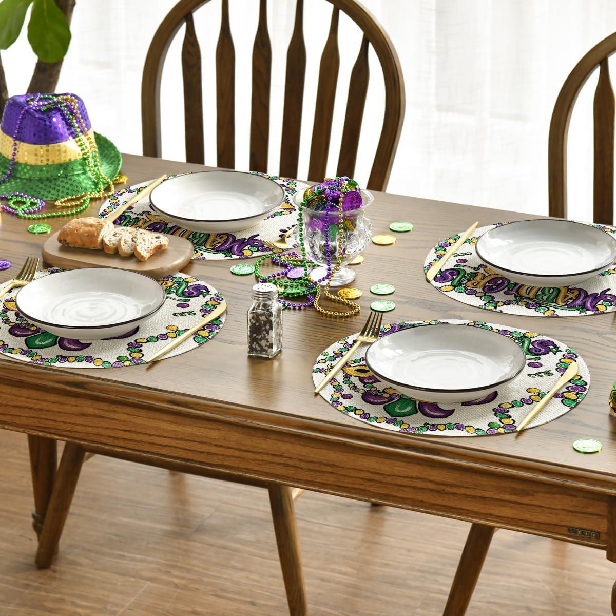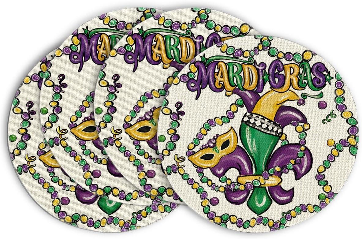 Artoid Mode Irises Mask Carnival Mardi Gras Placemats Set of 4, 14 Inch Jewelry Round Table Mats for Dining Decoration(Beige)