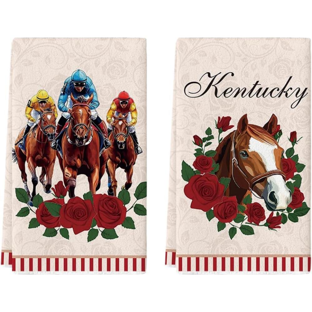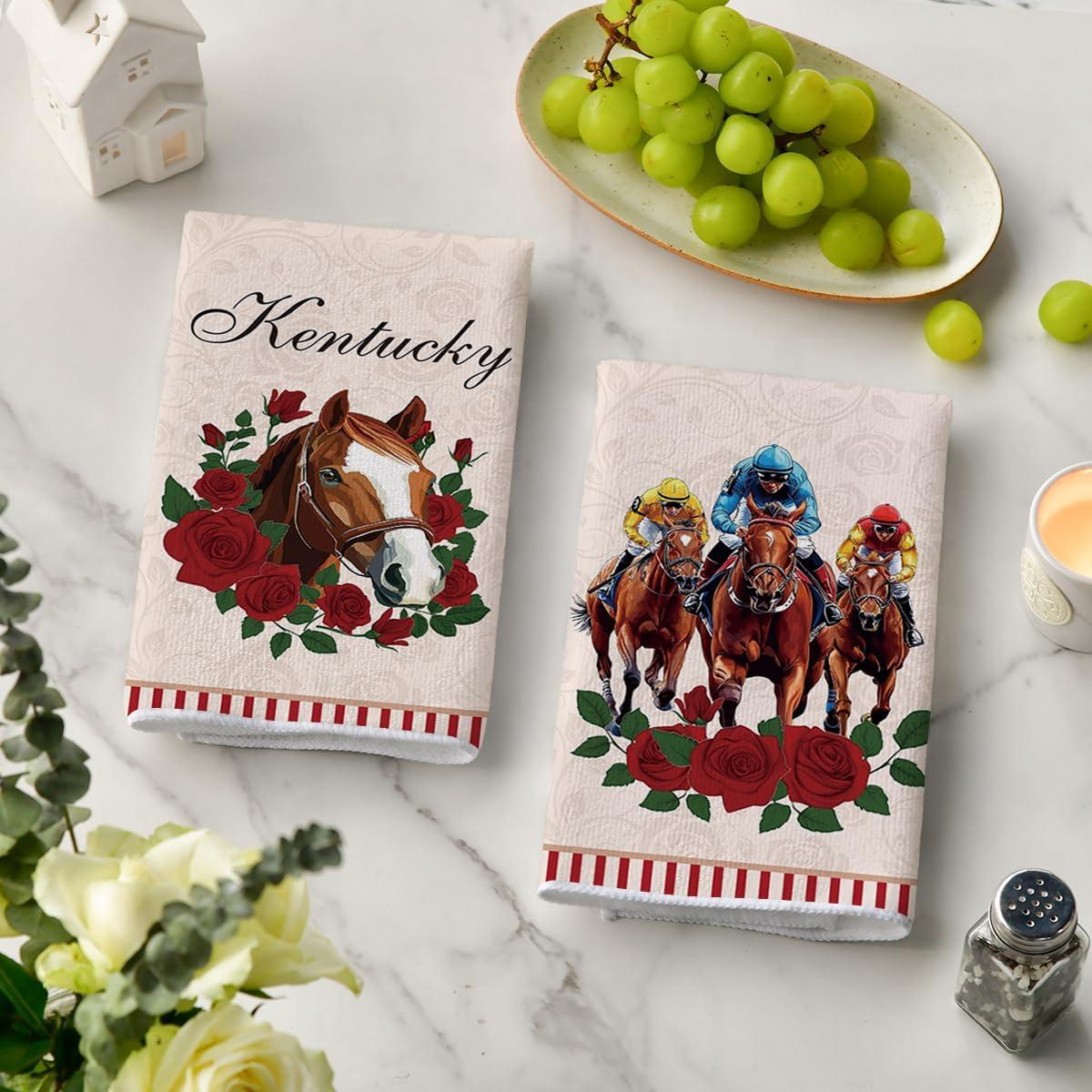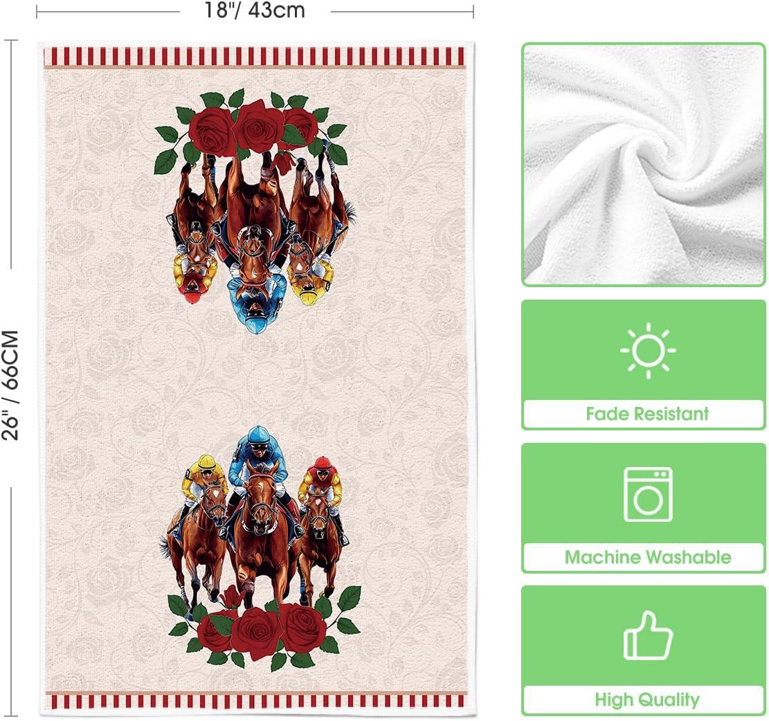 Artoid Mode Jockey Racehorse Kentucky Kitchen Towels Dish Towels, 18×26 Inch Rose Farmhouse Decoration Hand Towels Set of 2