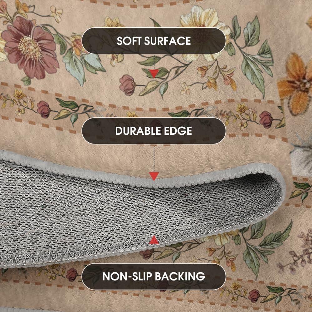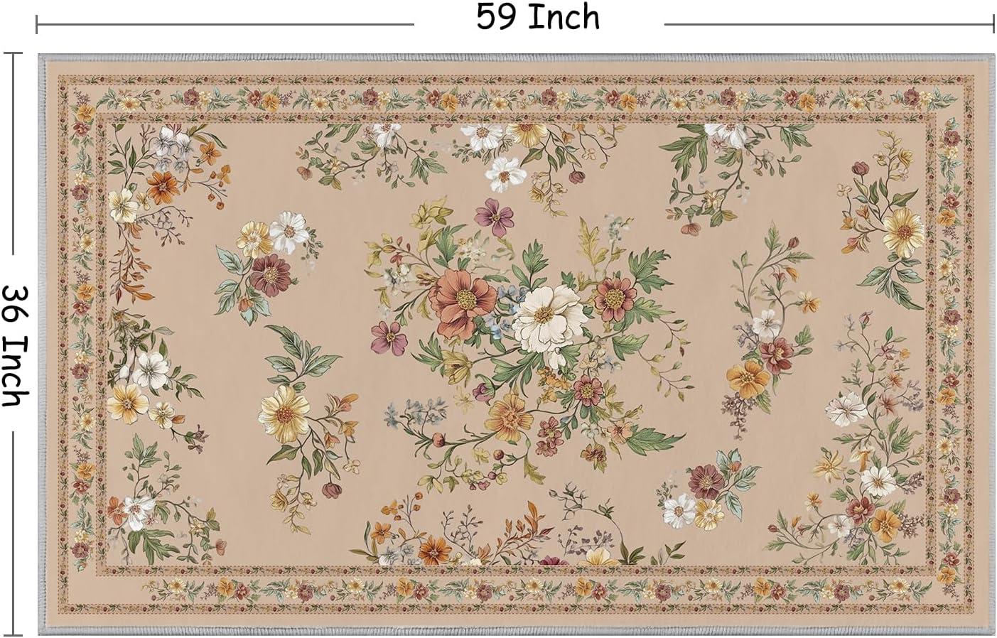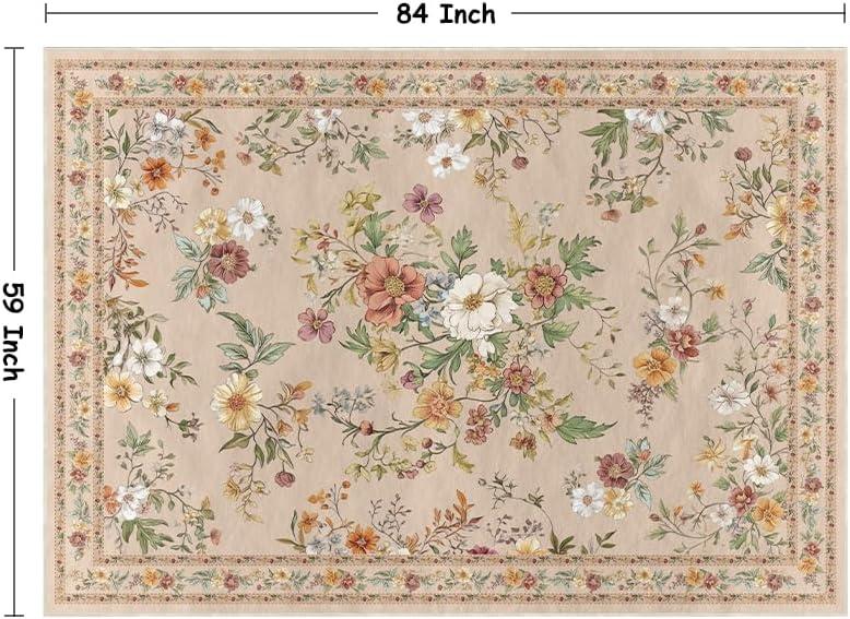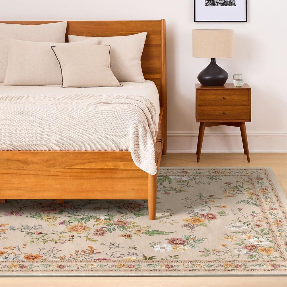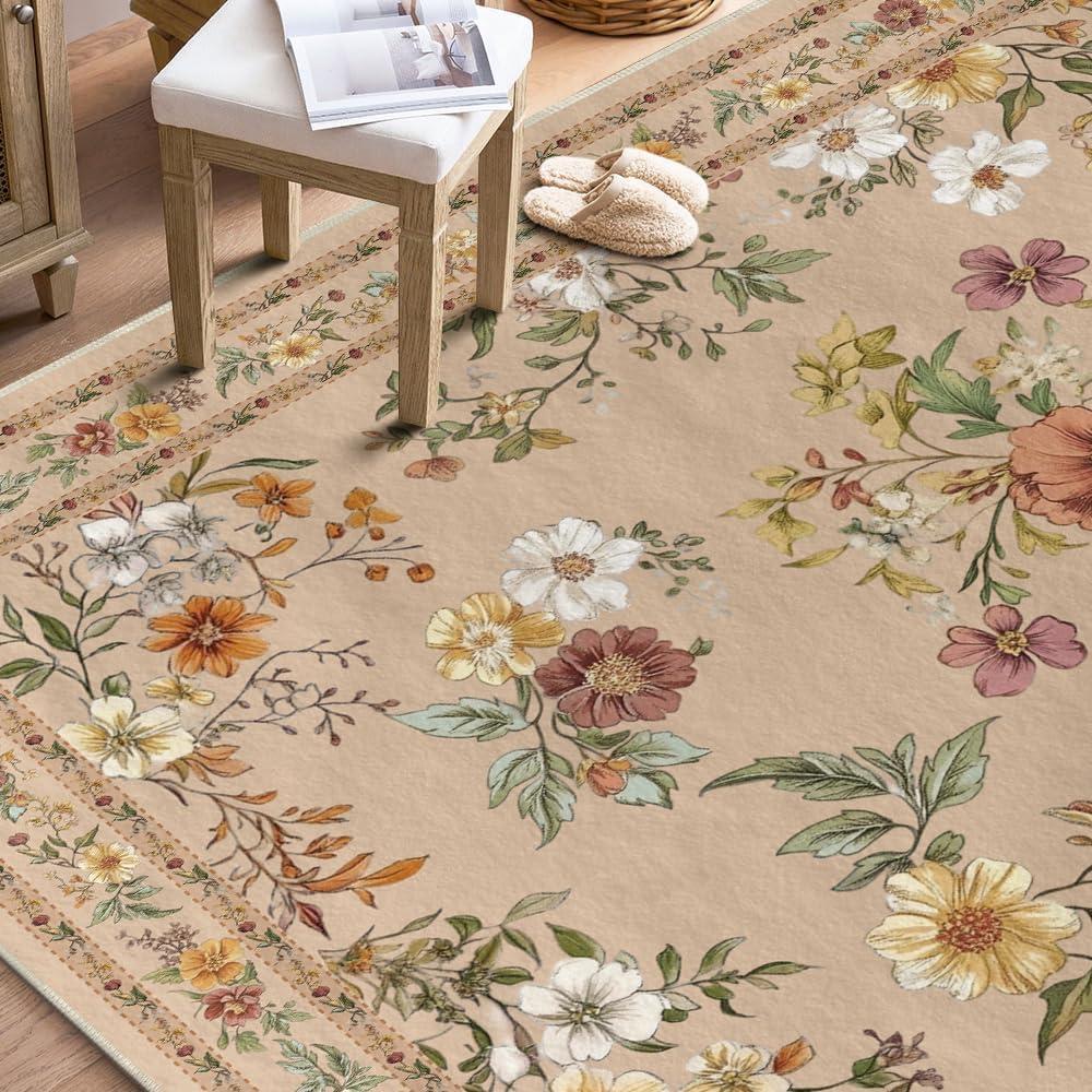 Artoid Mode Leaves Floral Fall Area Rug, Autumn Thanksgiving Home Decor Non Slip Washable Area Rug for Entryway Bedroom Living Room Laundry Room Indoor 5×7 Feet(Beige)