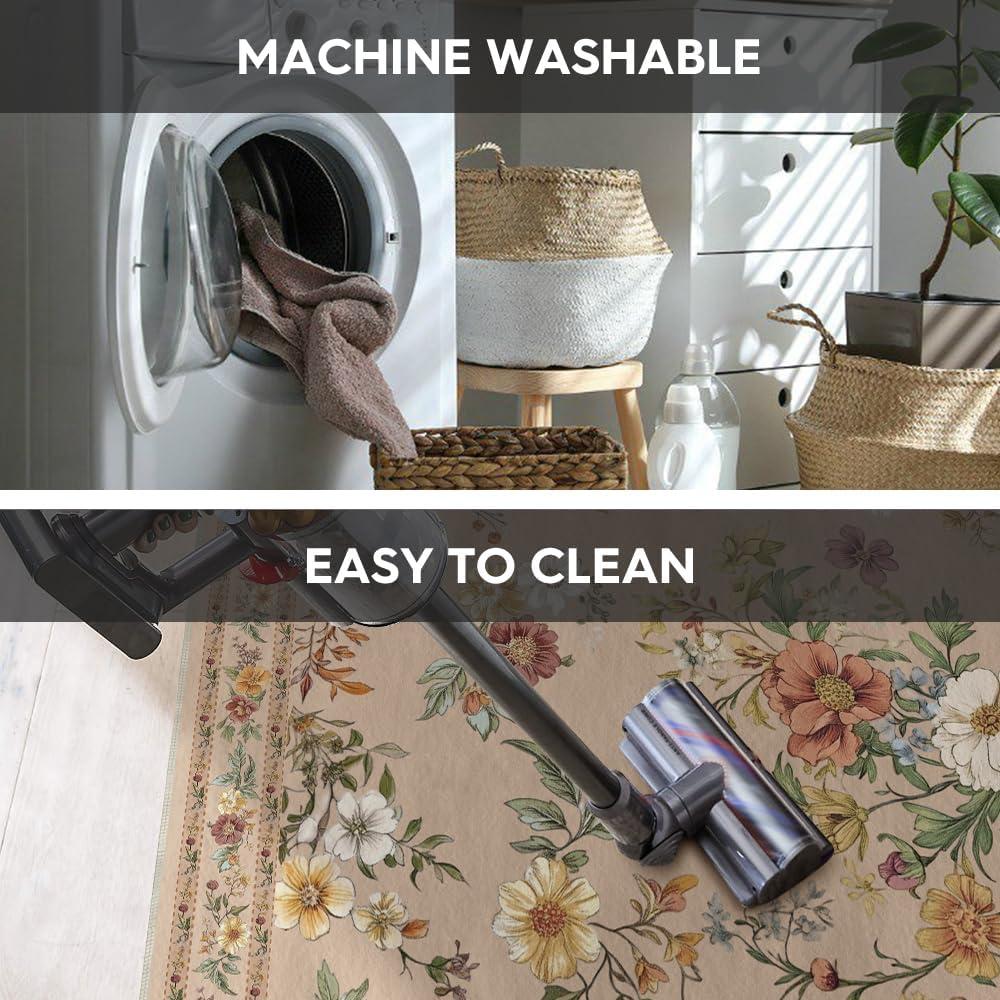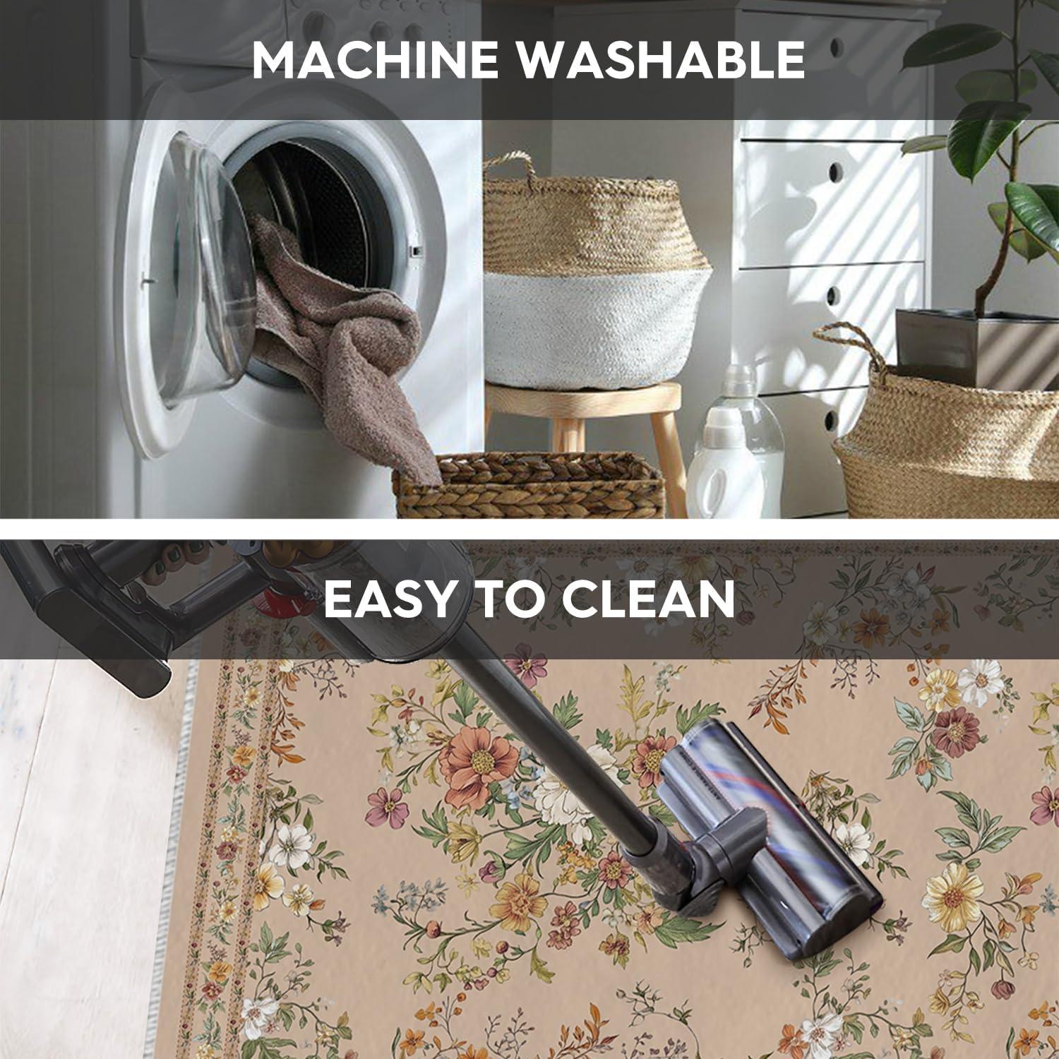 AREA RUGS WASHABLE:The washing machine and vacuum cleaner is friendly to these area rug. Rugs are quick and easy to clean and maintain which is durable, just regular vacuuming and gently blotting out minor stains with a mild detergent or carpet cleaner. A clean rug for living room can be obtained without taking a long time.