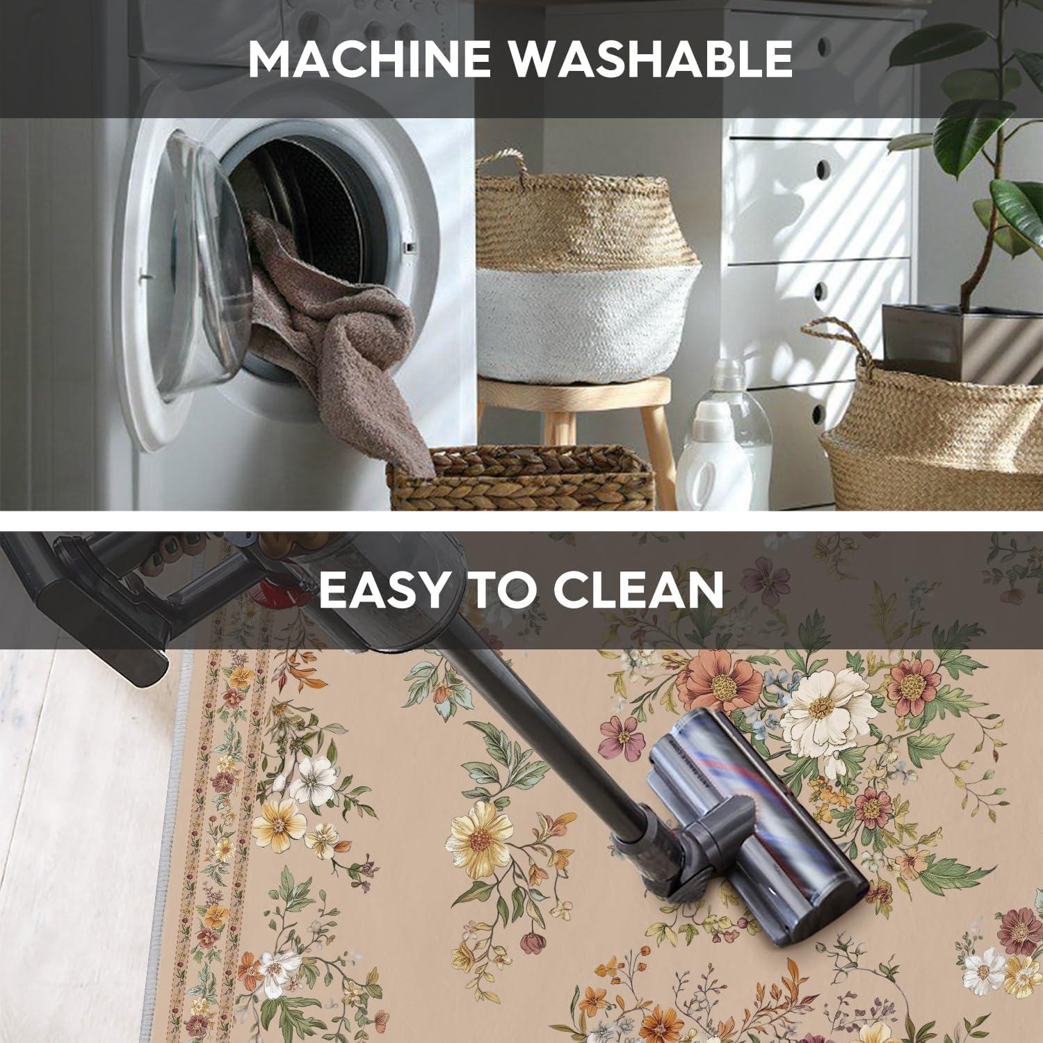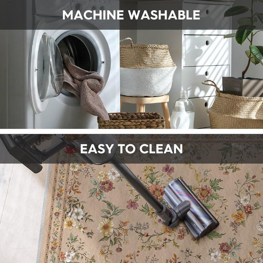 AREA RUGS WASHABLE:The washing machine and vacuum cleaner is friendly to these area rug. Rugs are quick and easy to clean and maintain which is durable, just regular vacuuming and gently blotting out minor stains with a mild detergent or carpet cleaner. A clean rug for living room can be obtained without taking a long time.