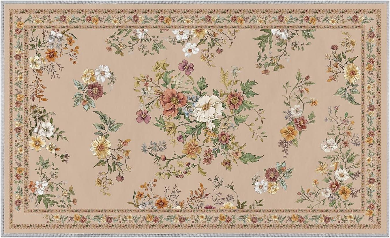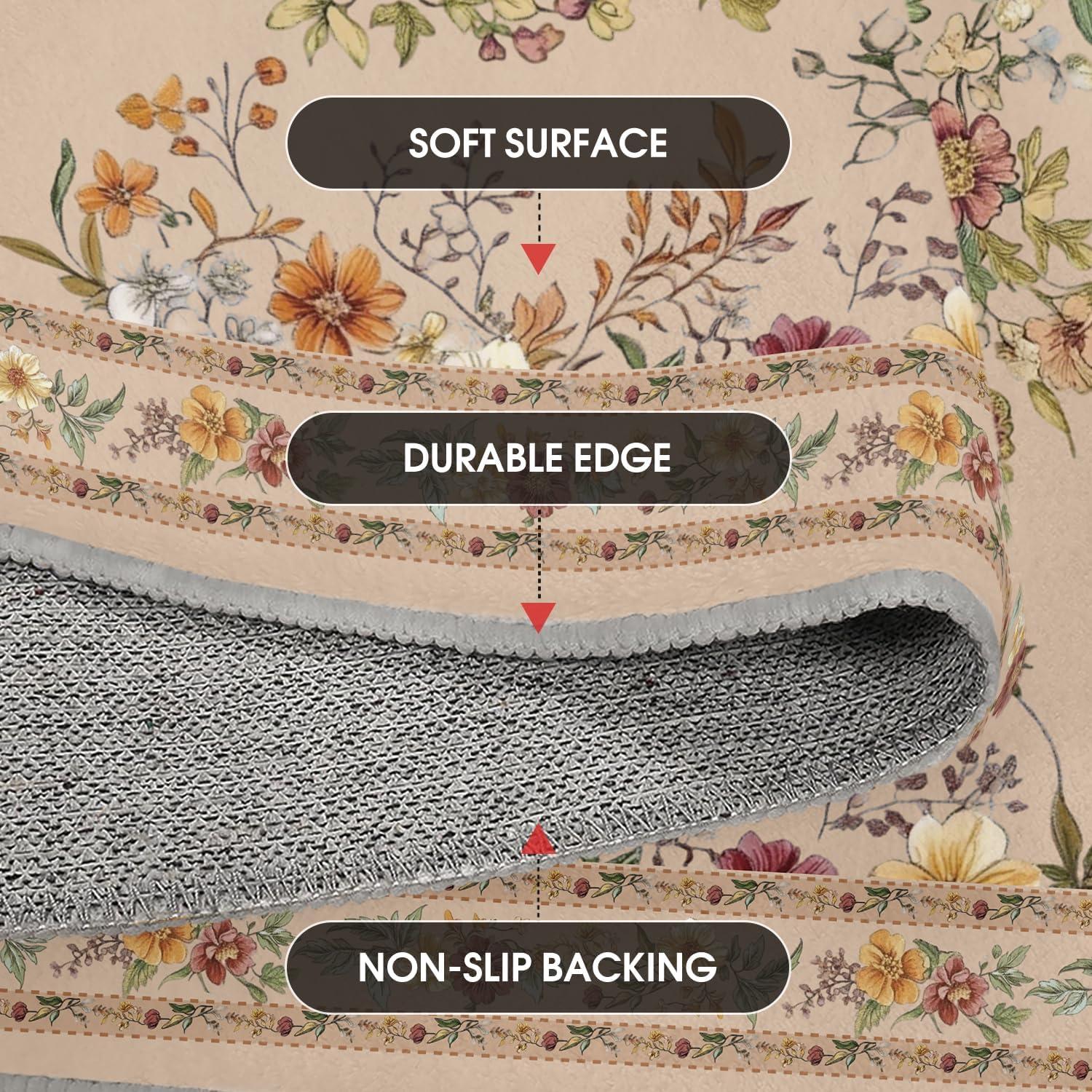 Artoid Mode Leaves Floral Fall Door Mat, Autumn Thanksgiving Home Decor Low-Profile Non Slip Washable Area Rug for Kitchen Entryway Bedroom Bathroom Laundry Room Indoor 2×3 Feet(Beige)