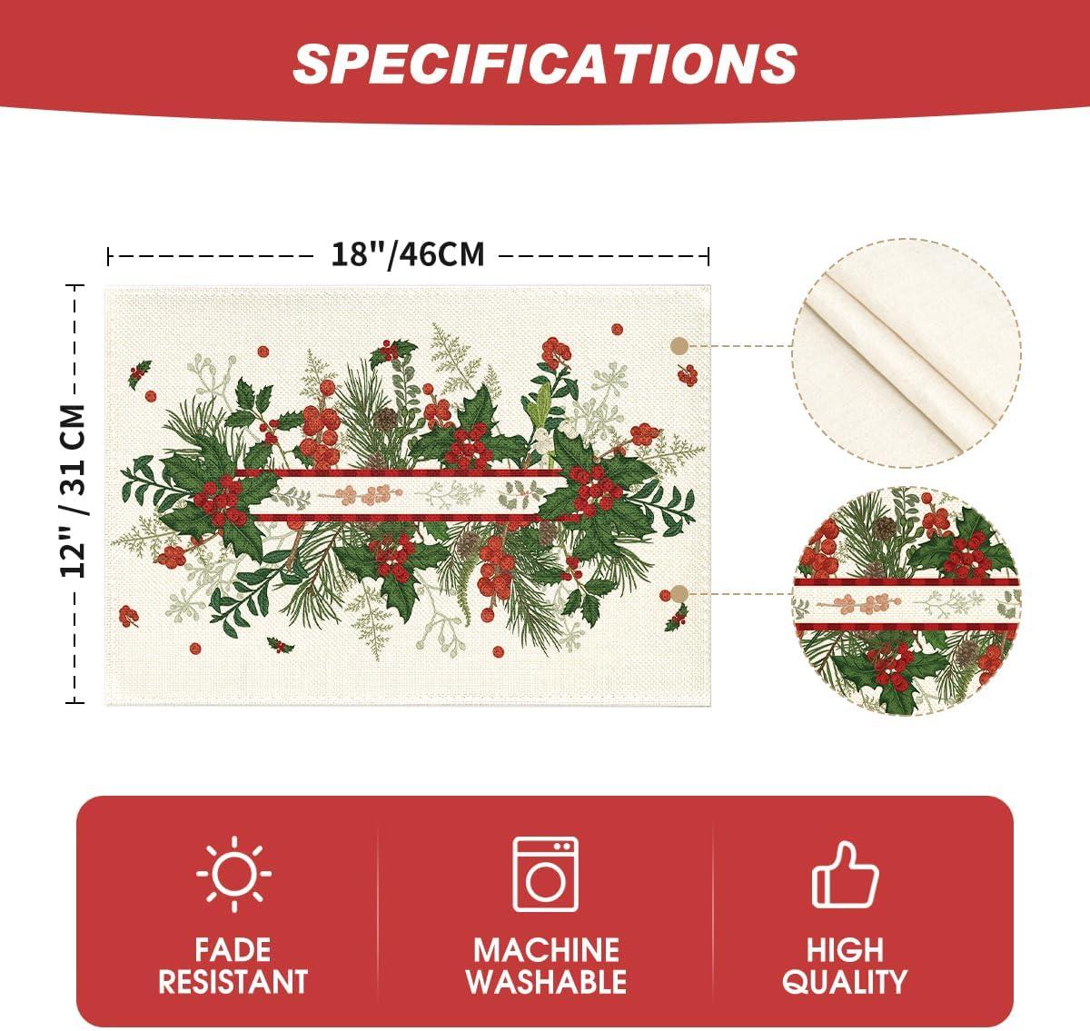 Be the first to review “Artoid Mode Leaves Holly Round Placemats Set of 4, 14 Inch Christmas Round Table Mats for Dining Decoration(Green/Beige)”