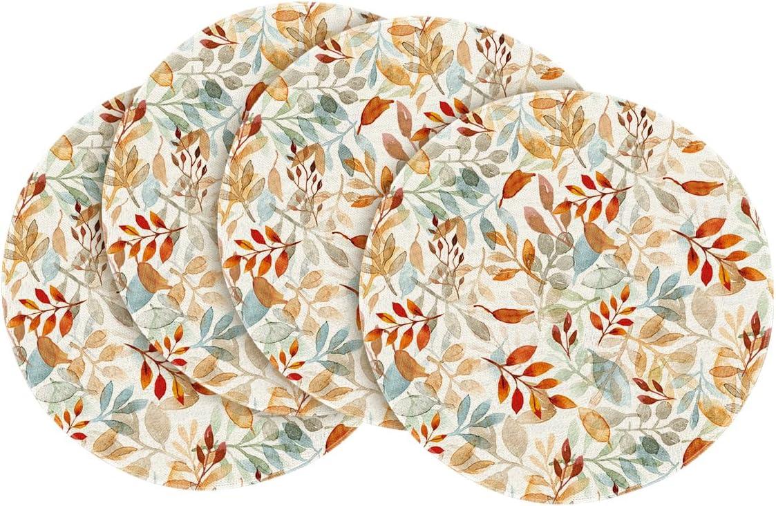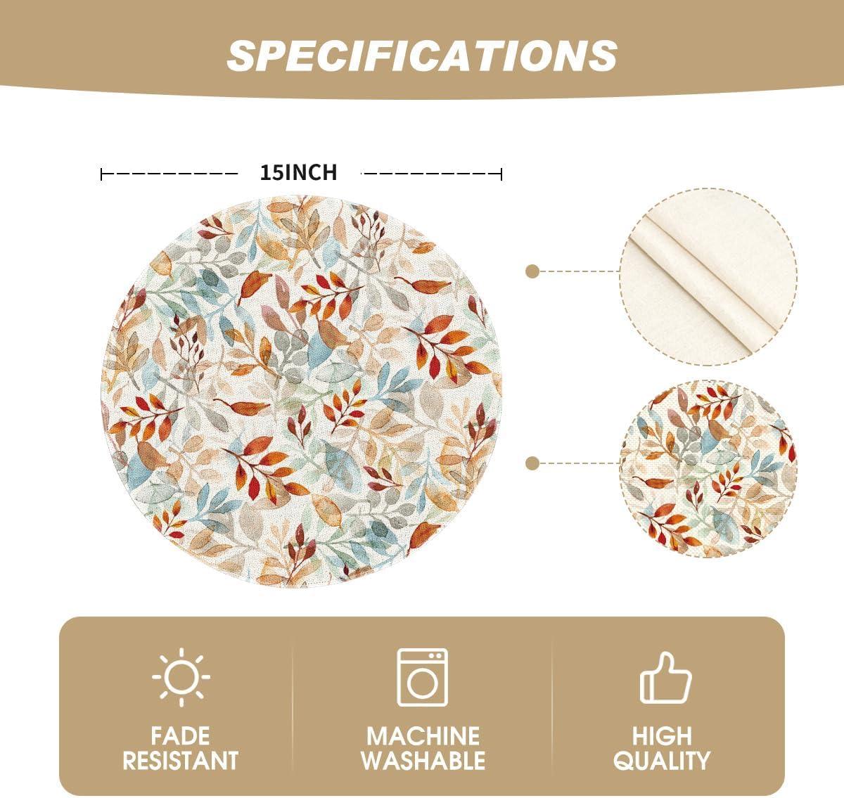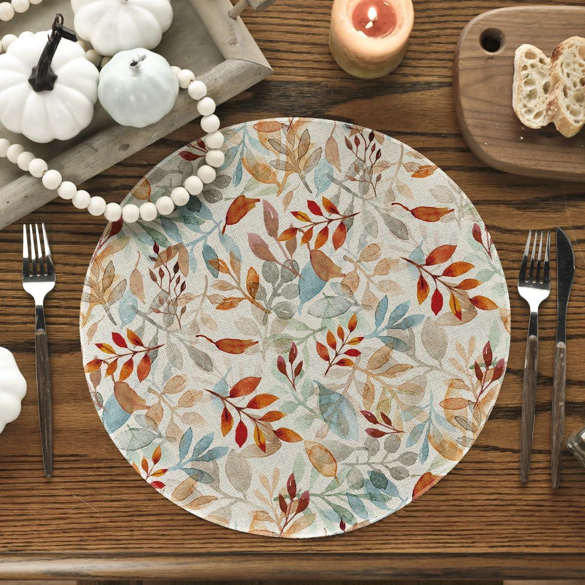 Artoid Mode Leaves Round Fall Placemats Set of 4, 14 Inch Seasonal Autumn Thanksgiving Round Table Mats for Dining Decoration(Orange/Blue)