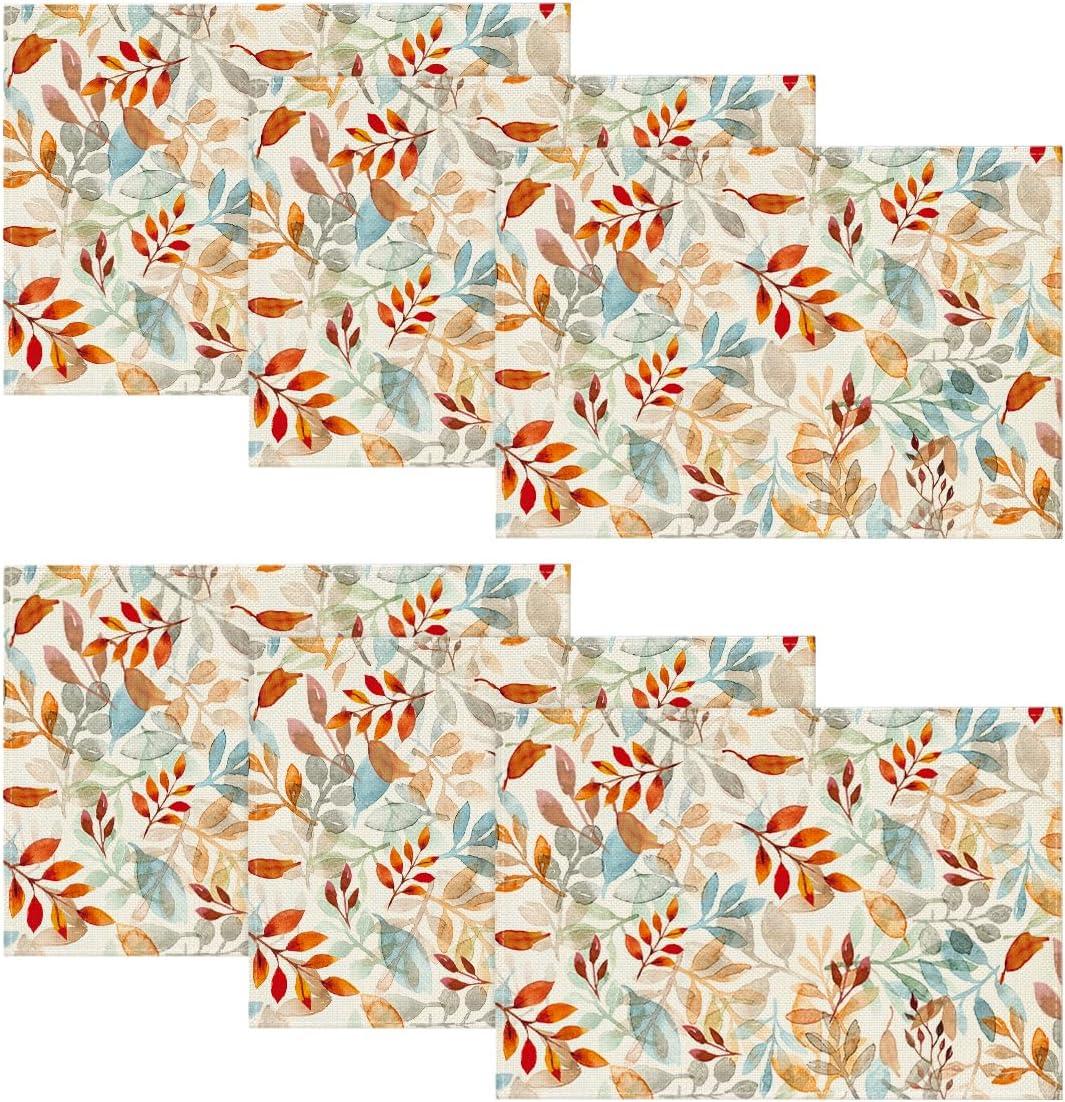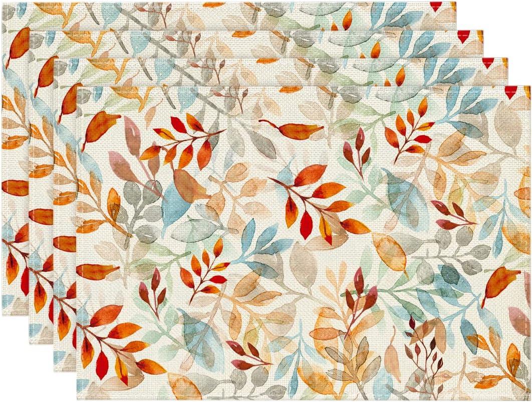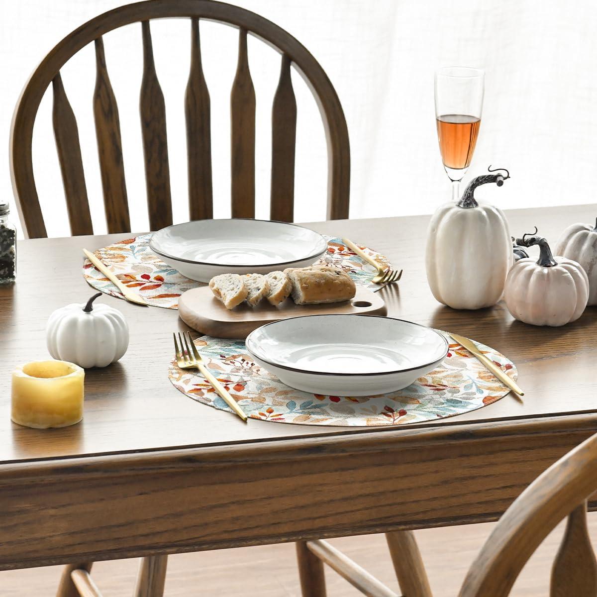 Artoid Mode Leaves Round Fall Placemats Set of 4, 14 Inch Seasonal Autumn Thanksgiving Round Table Mats for Dining Decoration(Orange/Blue)