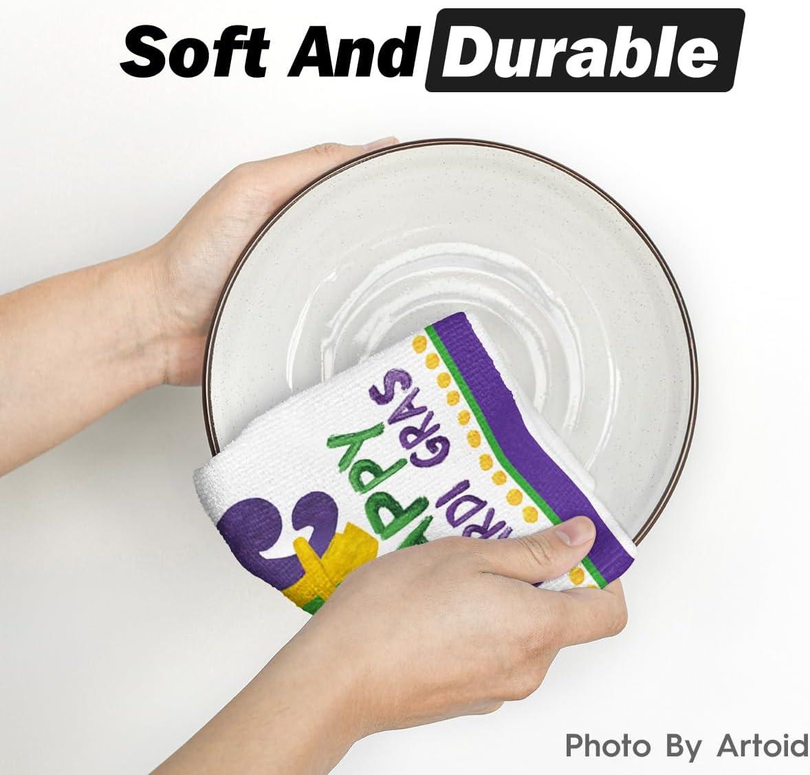 Artoid Mode Let’s get Cray Edge Mardi Gras Carnival Kitchen Towels Dish Towels, Seasonal Holiday 18×26 Inch Seasonal Decoration Hand Towels Set of 4