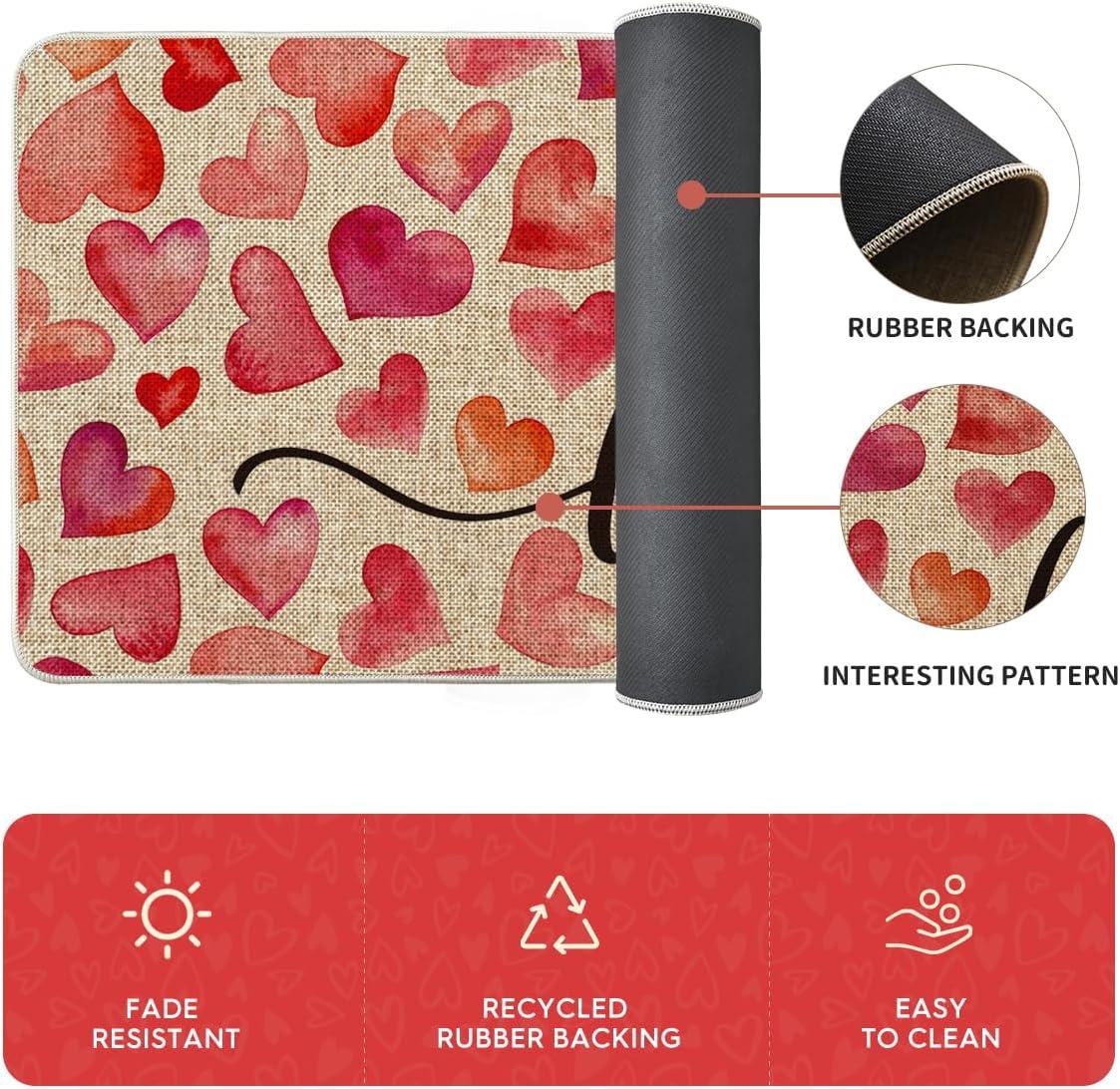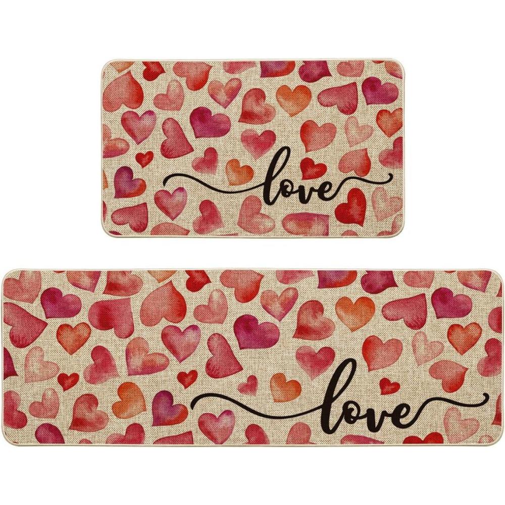 Artoid Mode Love Heart Valentines Kitchen Mats Set of 2, Home Decor Low-Profile Kitchen Rugs for Floor – 17×29 and 17×47 Inch