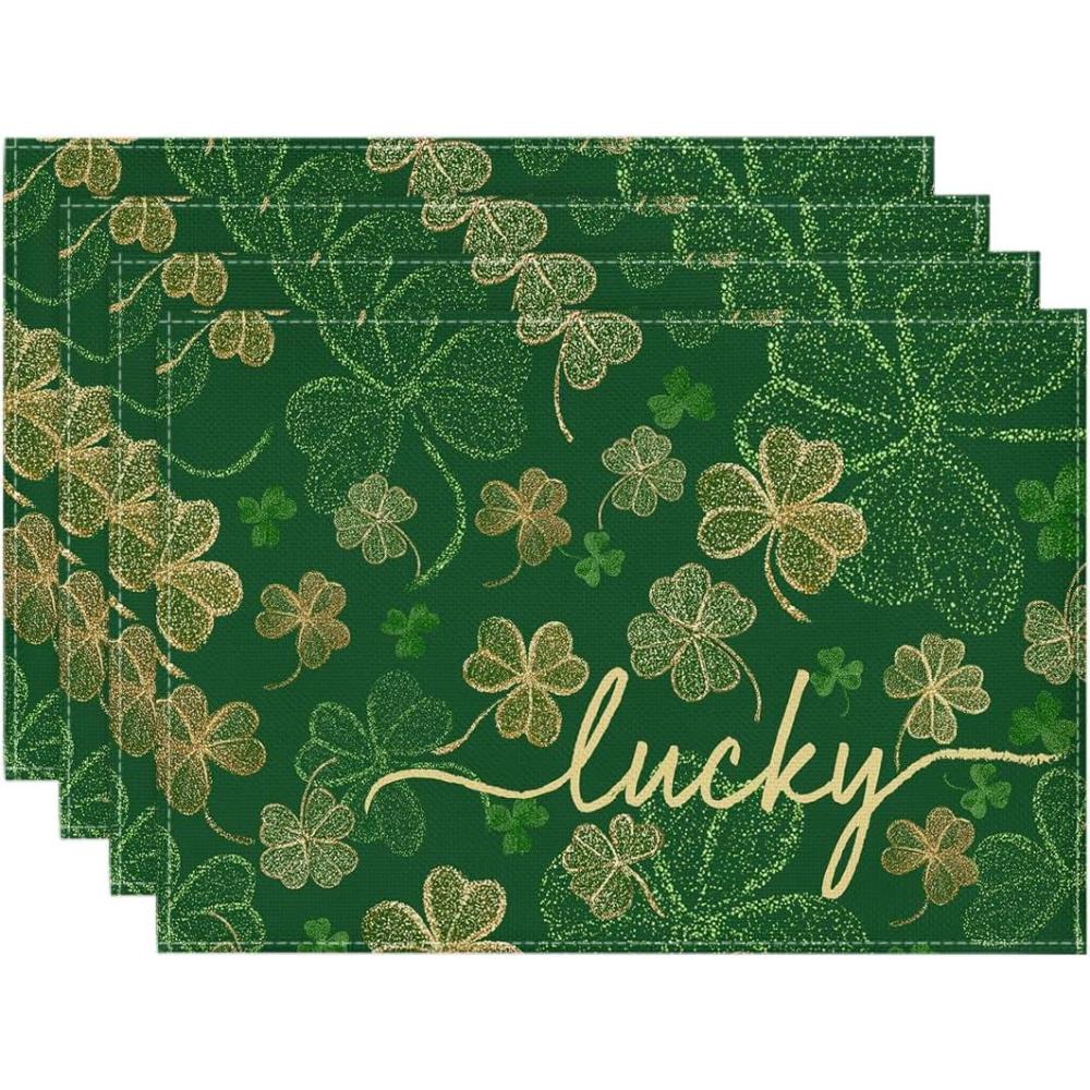 Artoid Mode Lucky Shamrocks Round St. Patrick’s Day Placemats Set of 4, 14 Inch Seasonal Clover Spring Round Table Mats for Kitchen Dining Decoration(Green)