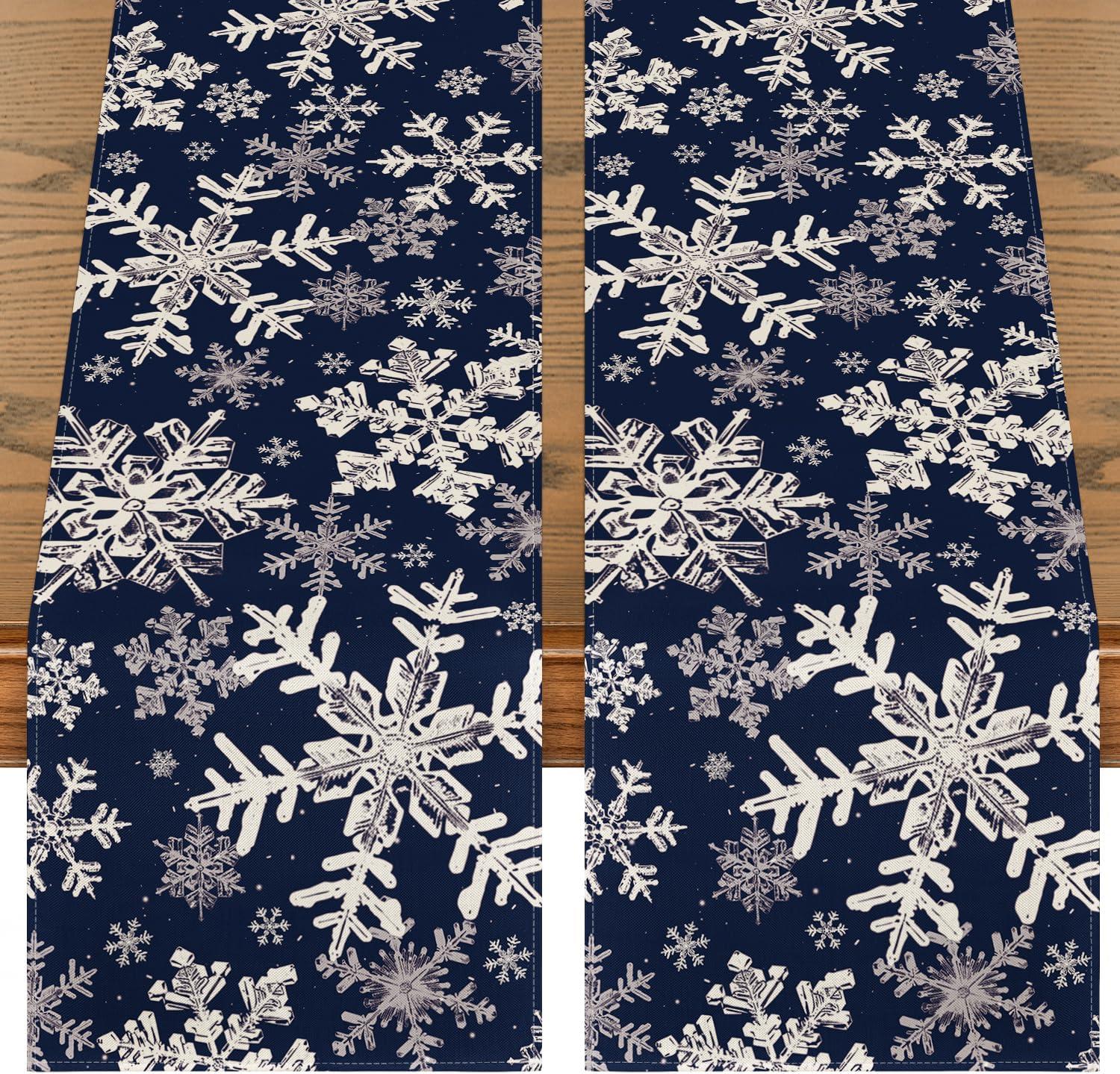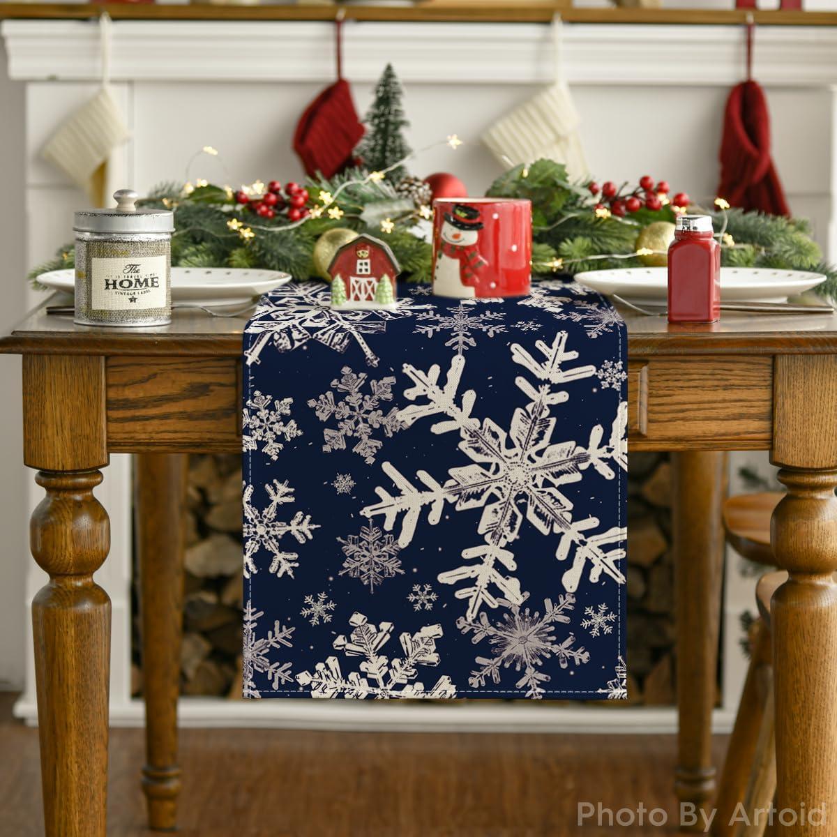 Artoid Mode Navy Blue Snowflakes Christmas Table Runner, Seasonal Winter Holiday Kitchen Dining Table Decoration for Home Party Decor 13×72 Inch(Navy Blue)