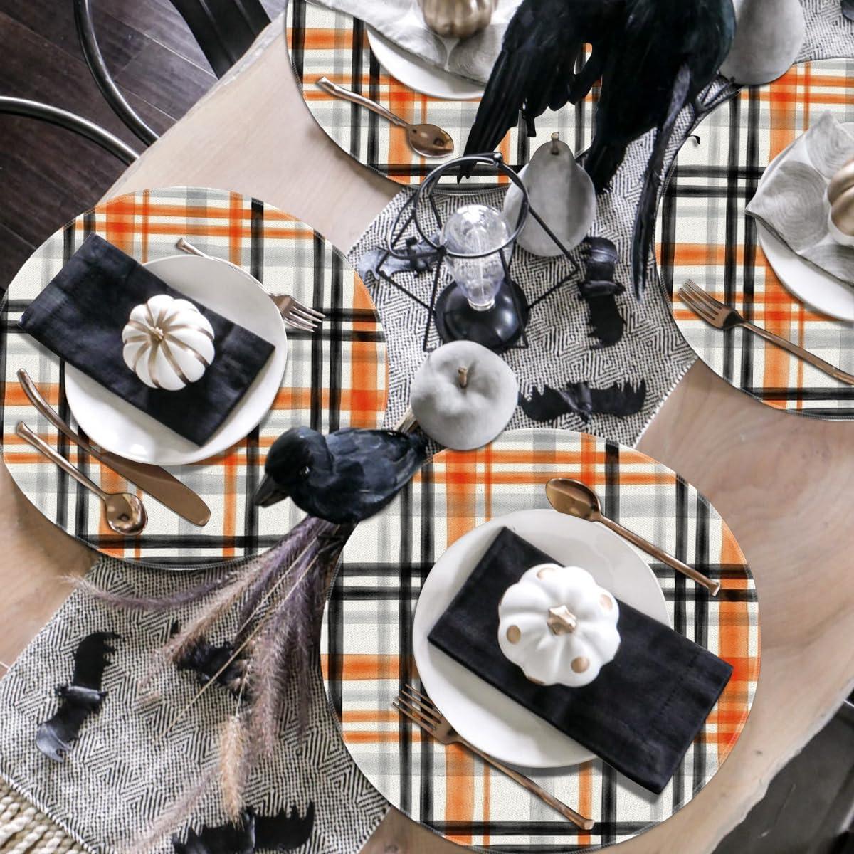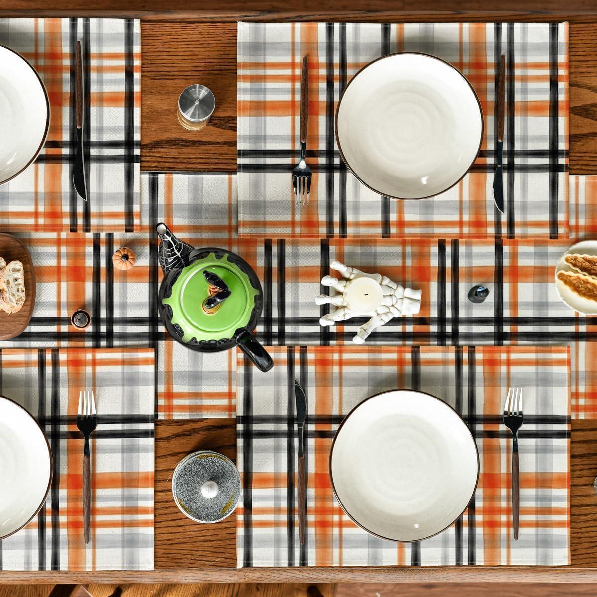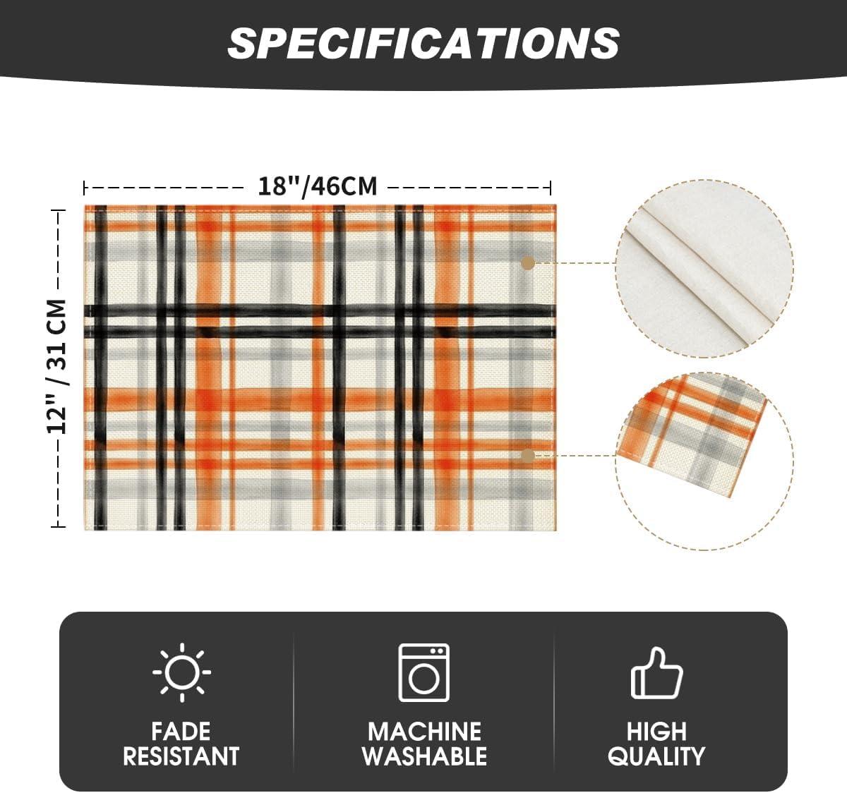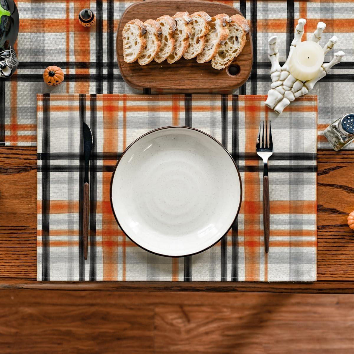 Artoid Mode Orange Black Buffalo Plaid Fall Placemats Set of 6, 12×18 Inch Halloween Seasonal Table Mats for Party Kitchen Dining Decoration(Orange/Black)
