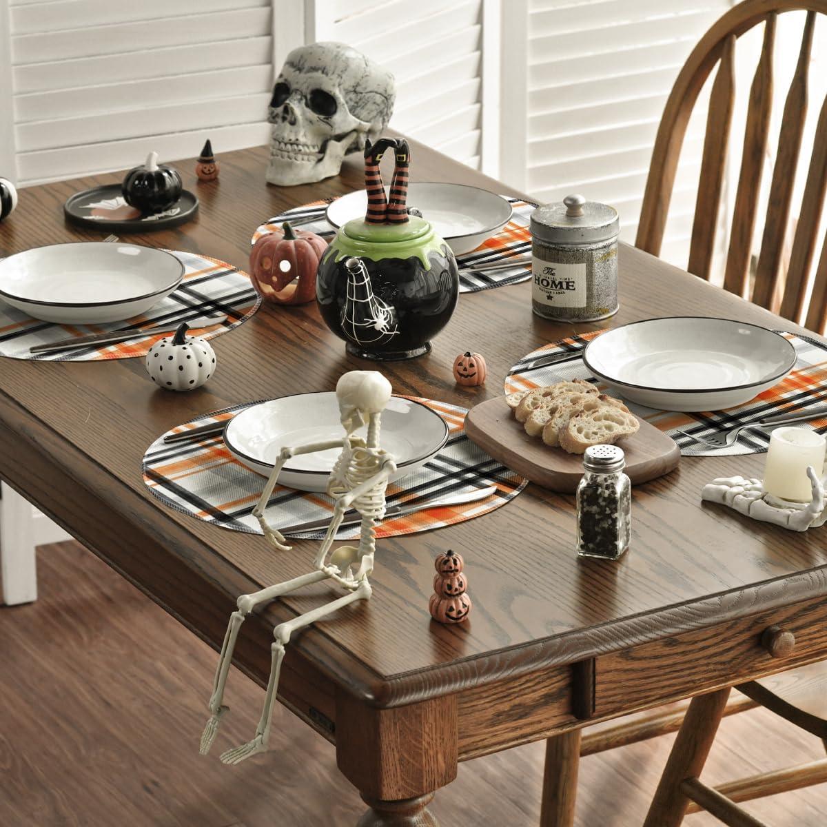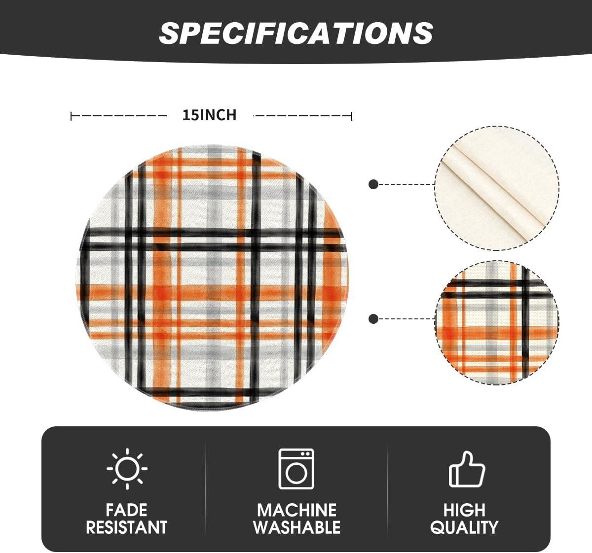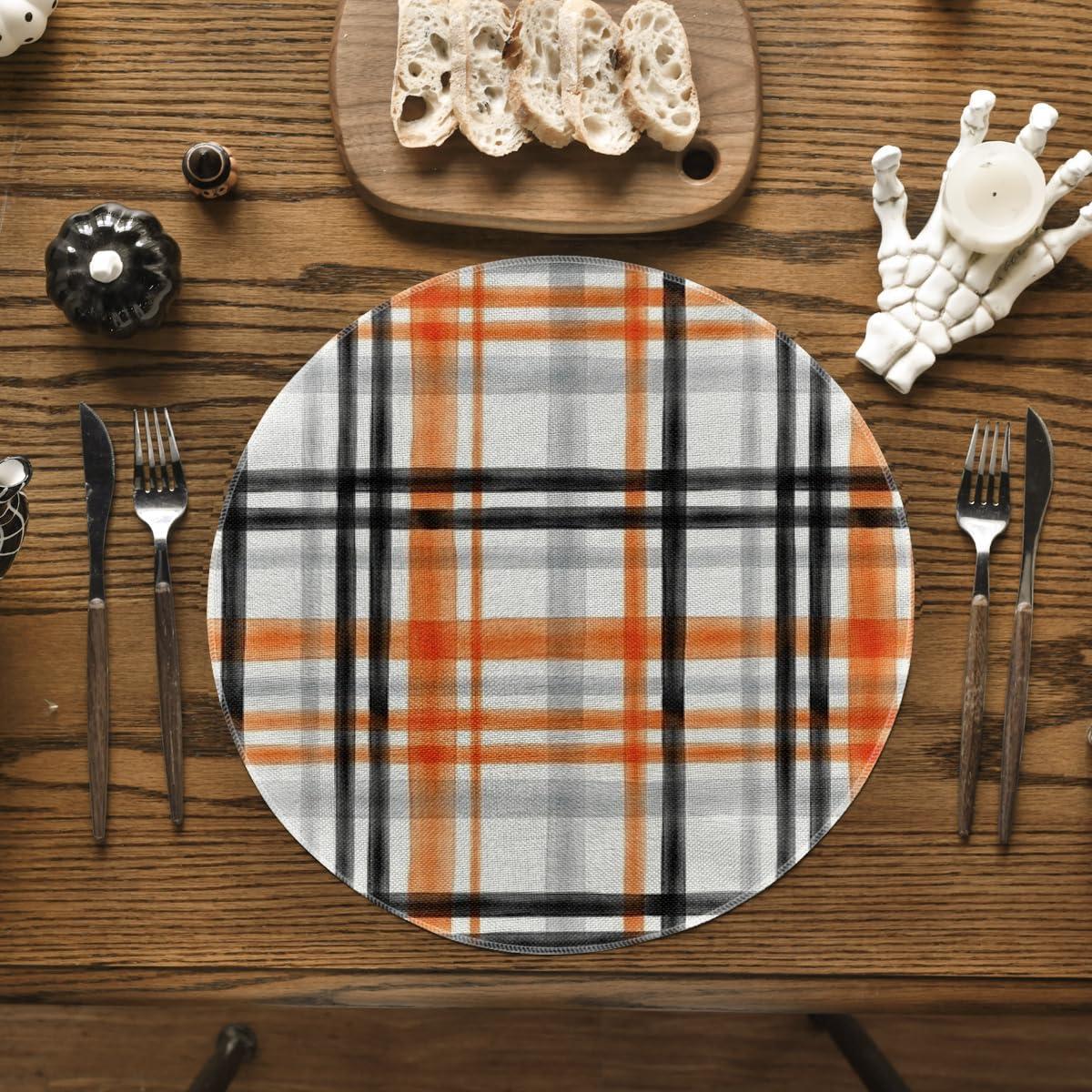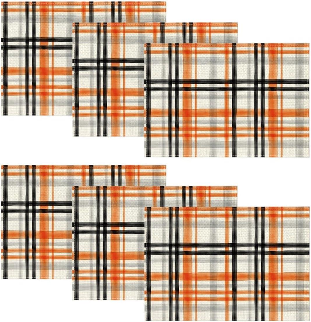 Artoid Mode Orange Black Buffalo Plaid Fall Placemats Set of 6, 12×18 Inch Halloween Seasonal Table Mats for Party Kitchen Dining Decoration(Orange/Black)