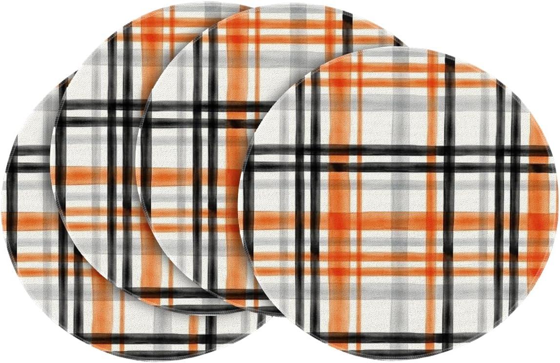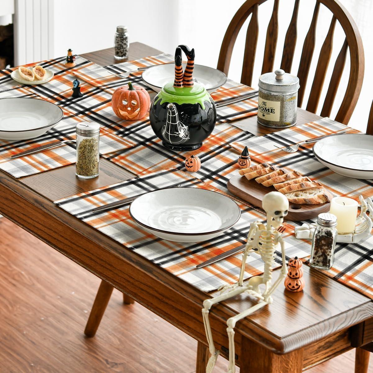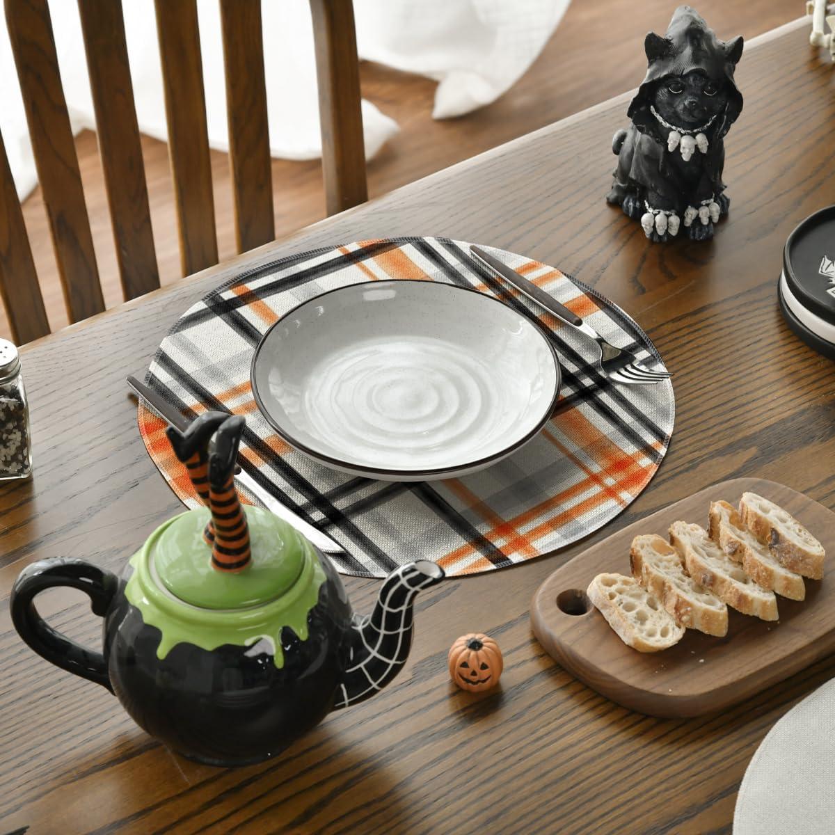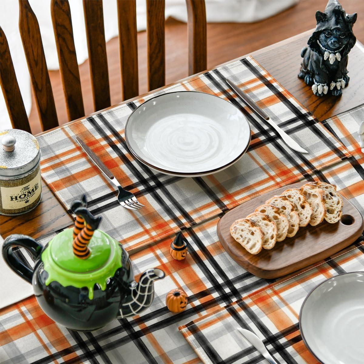 Artoid Mode Orange Black Buffalo Plaid Fall Placemats Set of 6, 12×18 Inch Halloween Seasonal Table Mats for Party Kitchen Dining Decoration(Orange/Black)