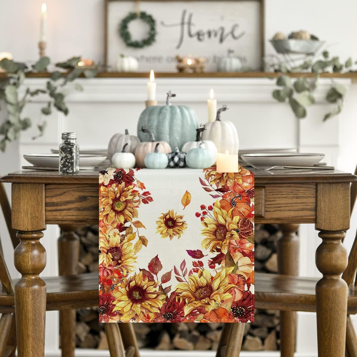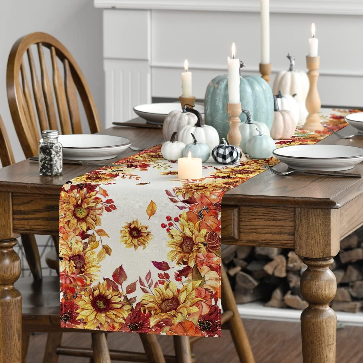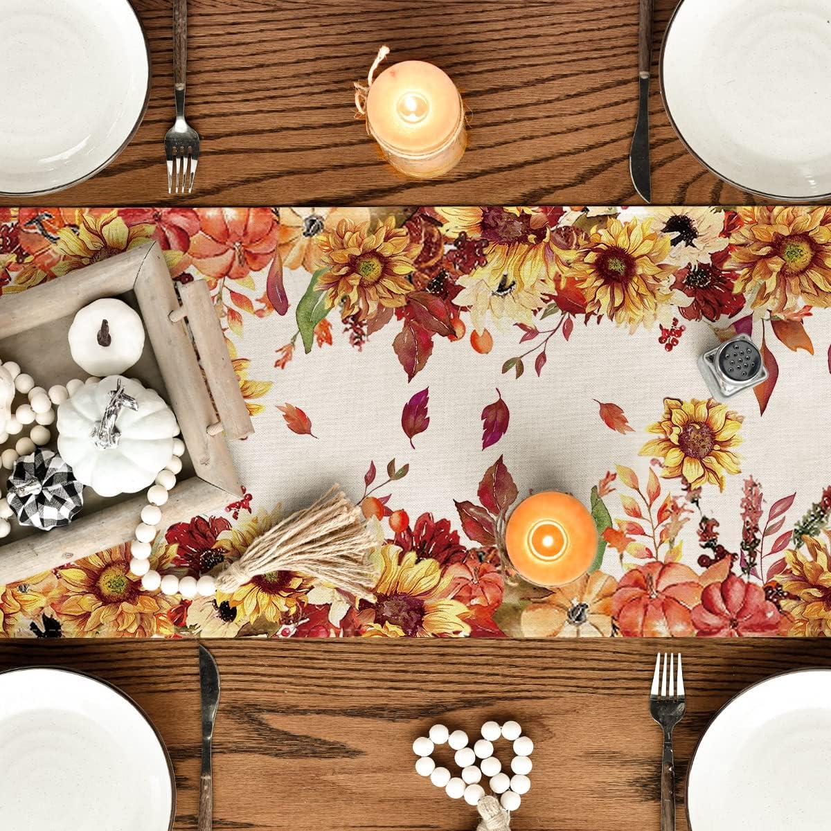 Artoid Mode Orange Floral Fall Table Runner, Seasonal Autumn Kitchen Dining Table Decoration for Home Party Decor 13×72 Inch(Orange)