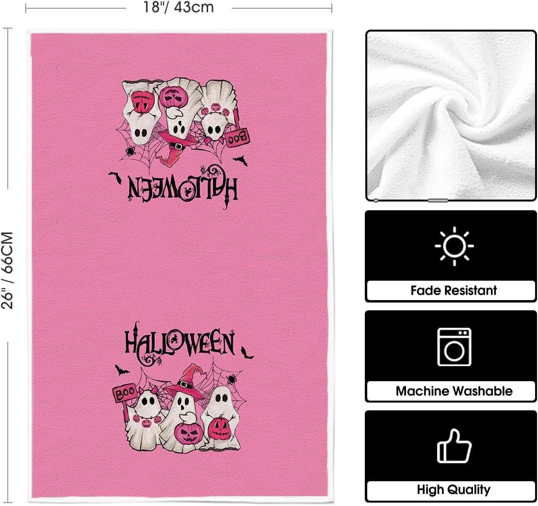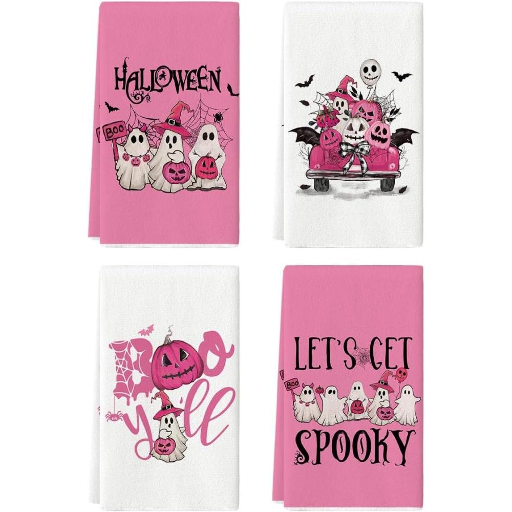 Artoid Mode Orange Ghost Pumpkins Bats Truck Spooky Halloween Kitchen Towels Dish Towels, 18×26 Inch Jack-O’-Lantern Decoration Hand Towels Set of 4(Pink)