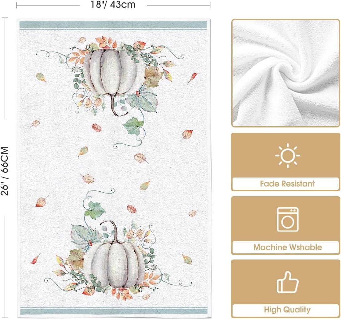 Artoid Mode Orange Hello Pumpkin Fall Kitchen Towels Dish Towels, 18×26 Inch Watercolor Stripes Leaves Decoration Hand Towels Set of 2(Blue)