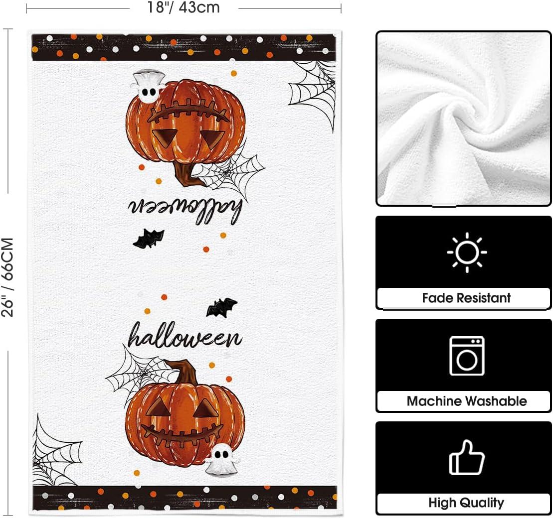 Artoid Mode Orange Polka Dot Pumpkin Ghost Halloween Kitchen Towels Dish Towels, 18×26 Inch Farmhouse Cobweb Bat Decoration Hand Towels Set of 2