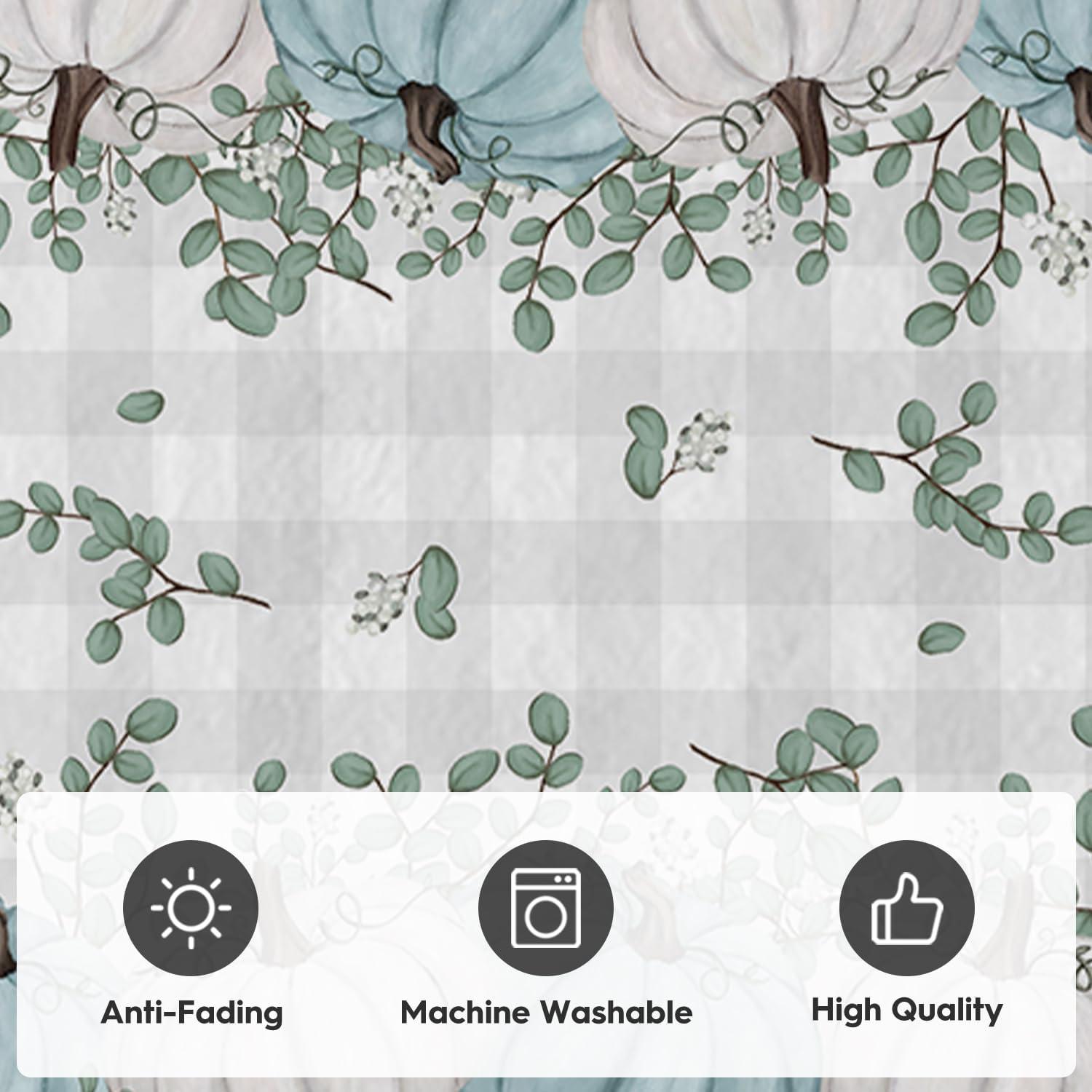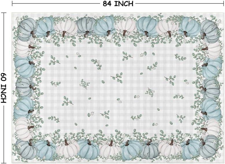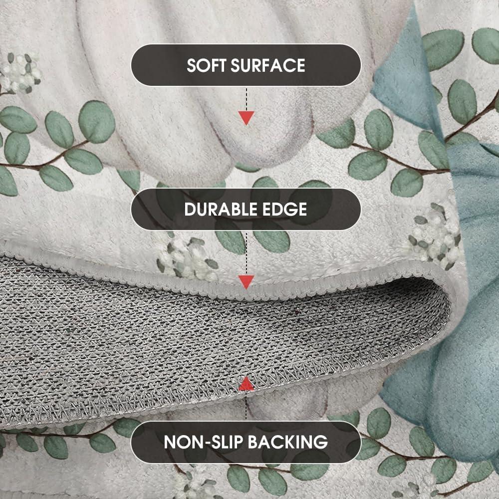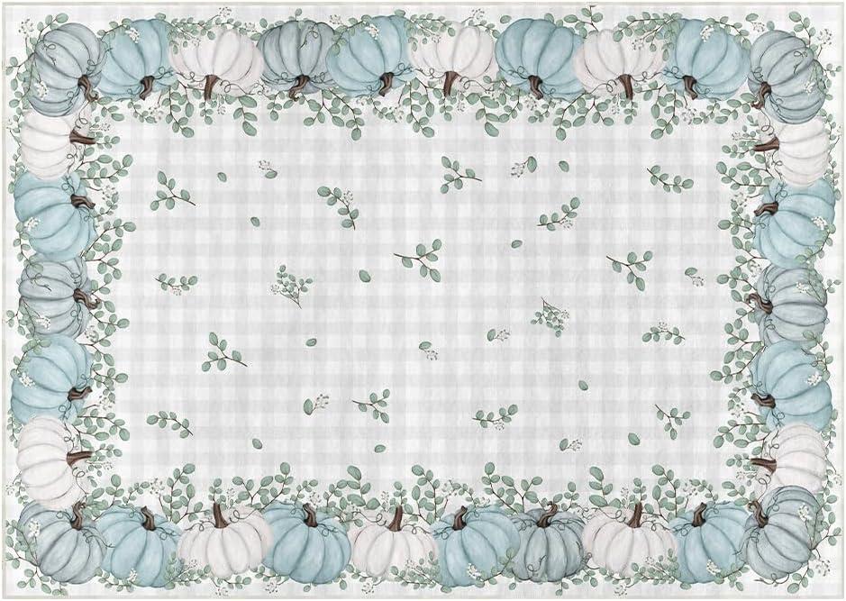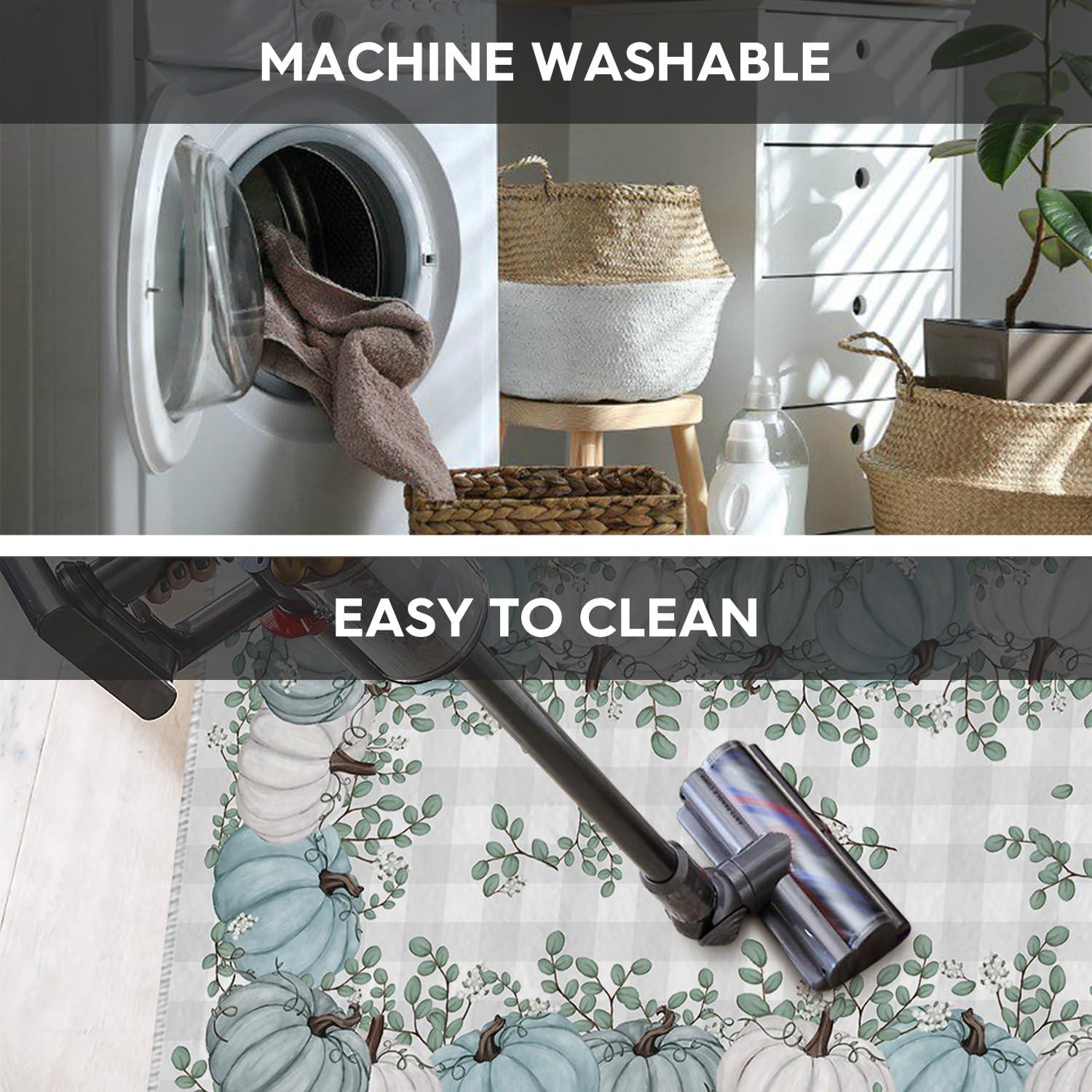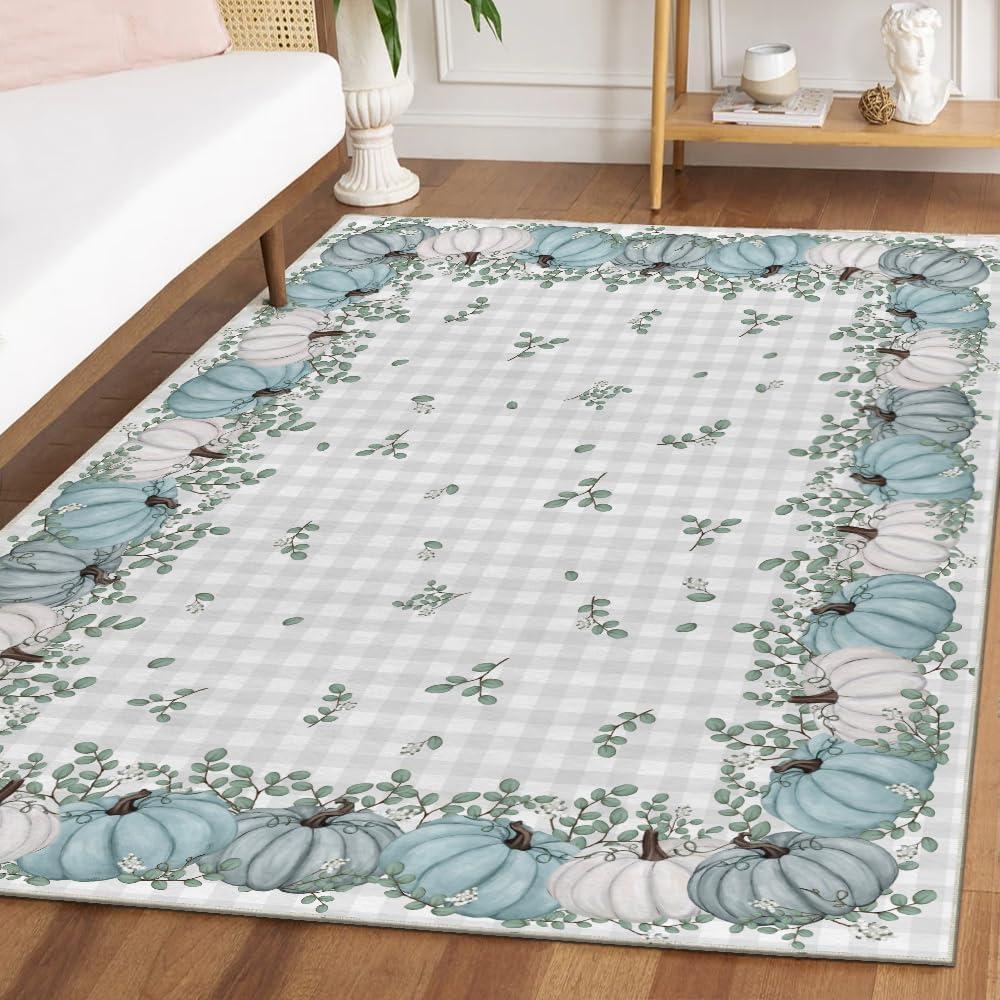 Artoid Mode Orange Pumpkins Eucalyptus Leaves Fall Area Rug, Autumn Thanksgiving Home Decor Low-Profile Washable Area Rugs for Entryway Bedroom Living Room Laundry Room Indoor 5×7 Feet(Blue)