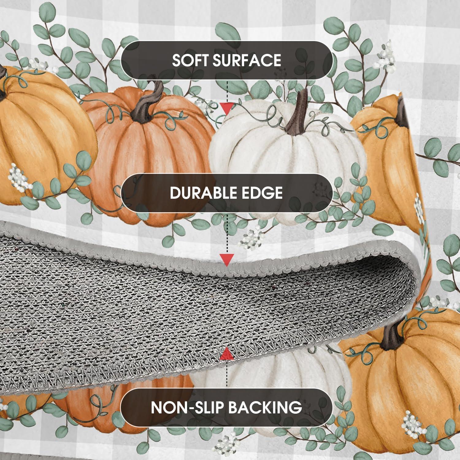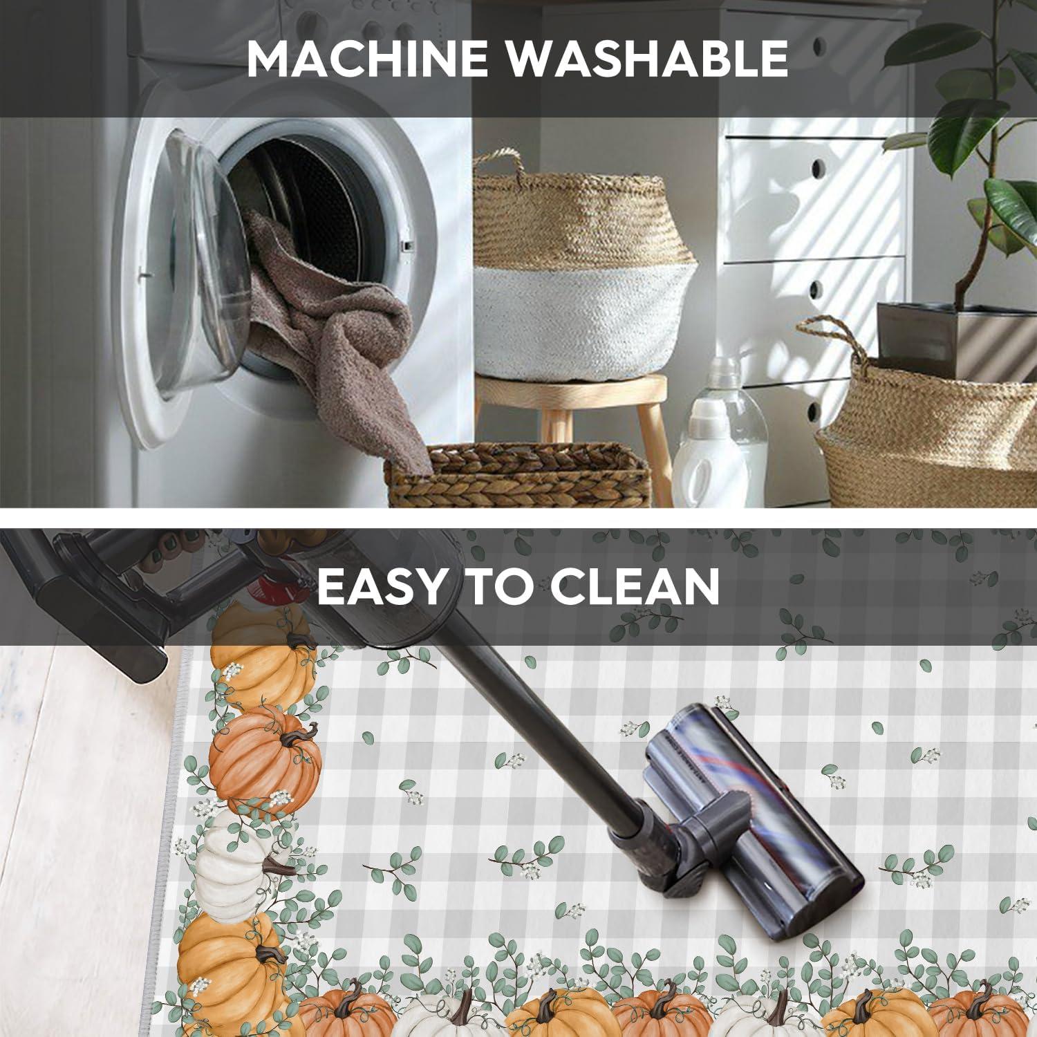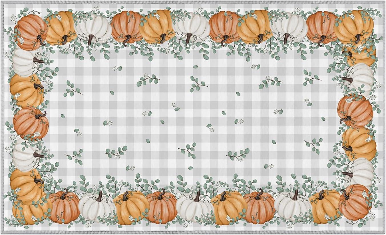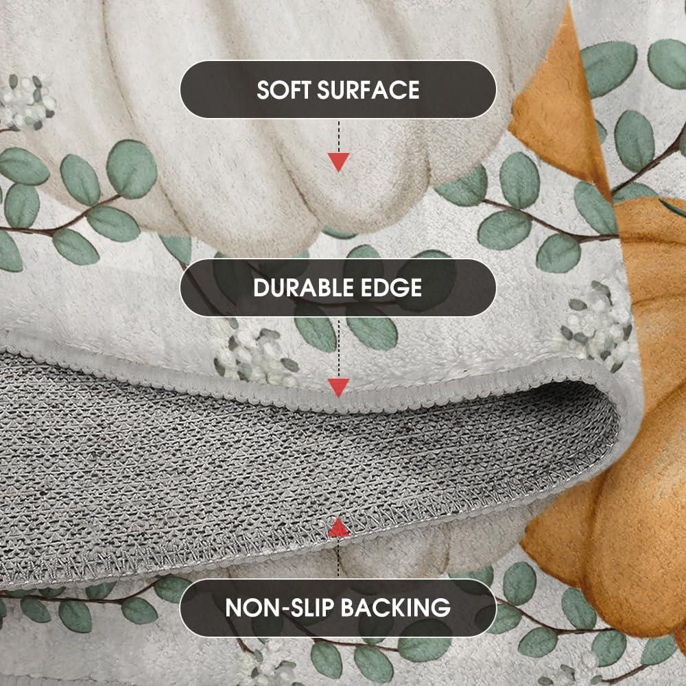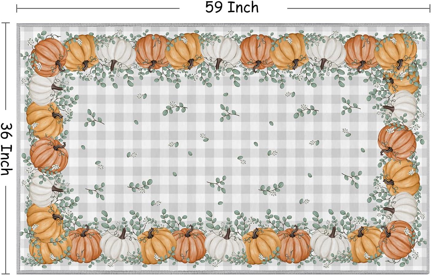 Artoid Mode Orange Pumpkins Eucalyptus Leaves Fall Area Rug, Autumn Thanksgiving Home Decor Low-Profile Washable Area Rugs for Entryway Bedroom Living Room Laundry Room Indoor 5×7 Feet(Orange)