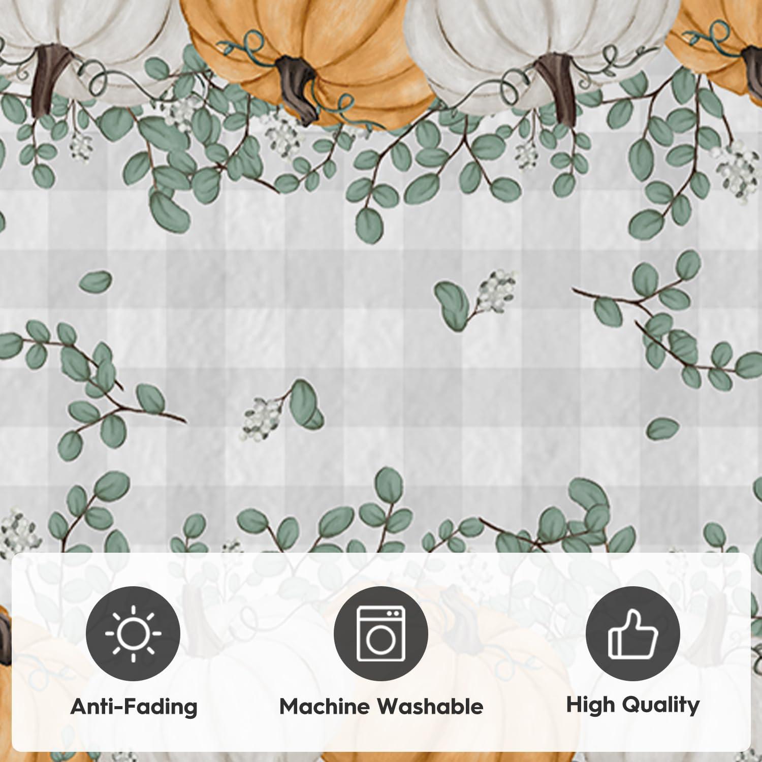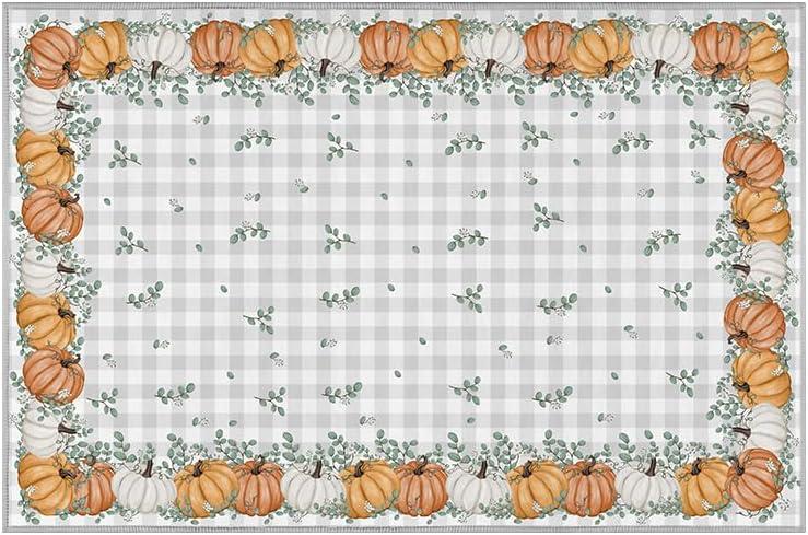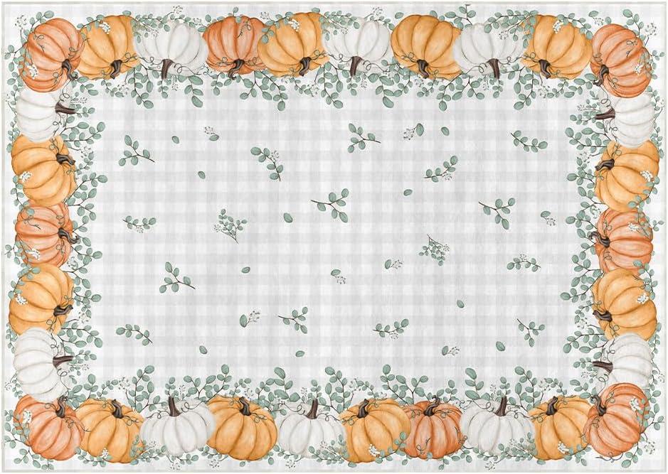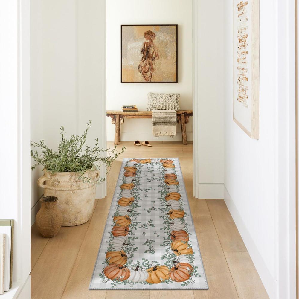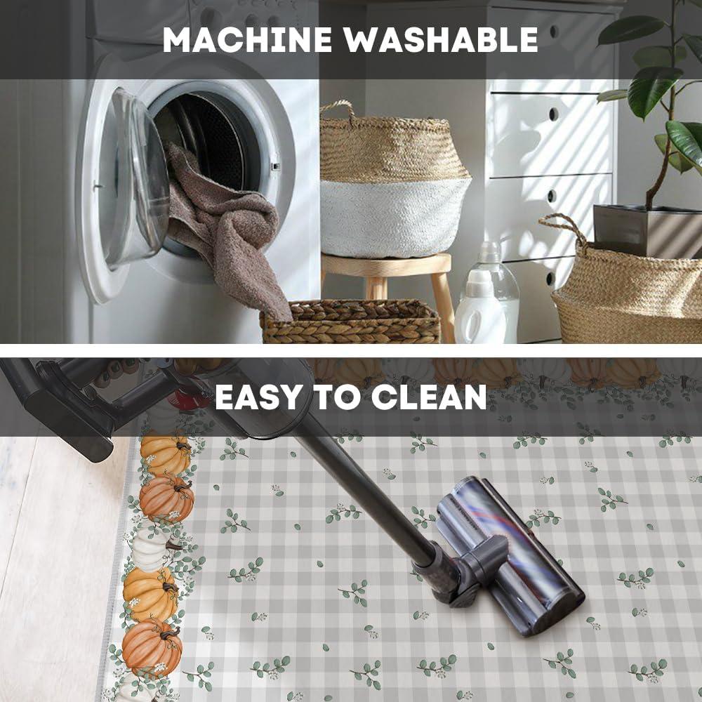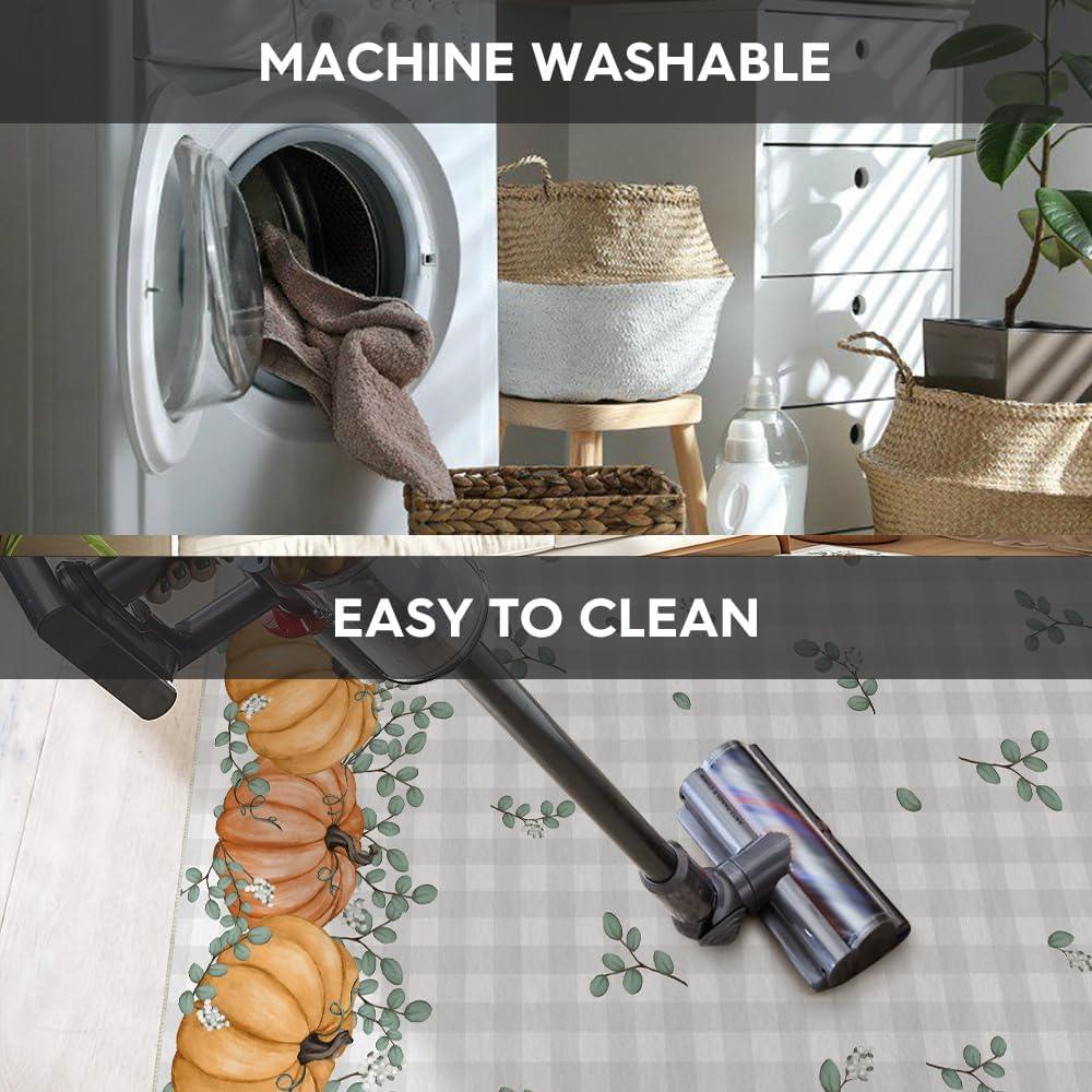 Artoid Mode Orange Pumpkins Eucalyptus Leaves Fall Area Rug, Autumn Thanksgiving Home Decor Low-Profile Washable Area Rugs for Entryway Bedroom Living Room Laundry Room Indoor 5×7 Feet(Orange)