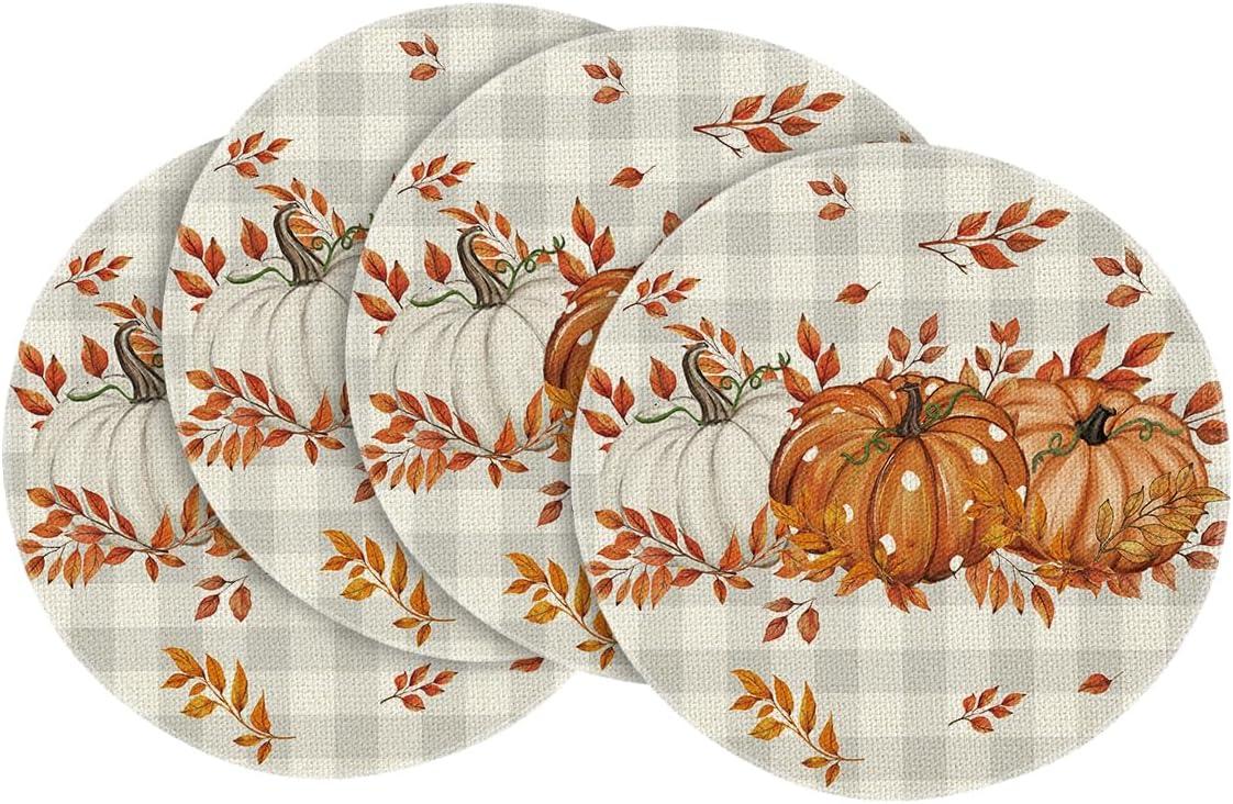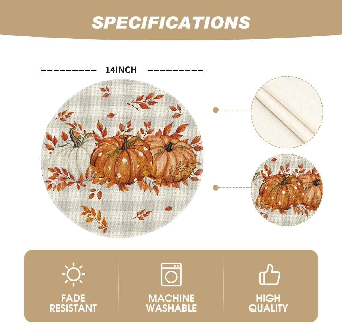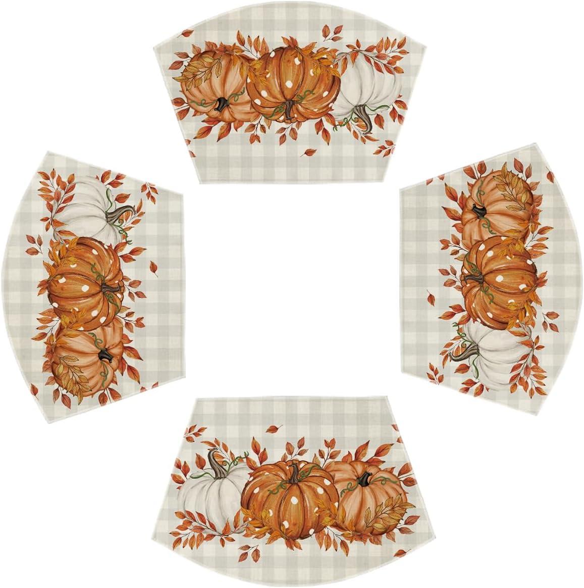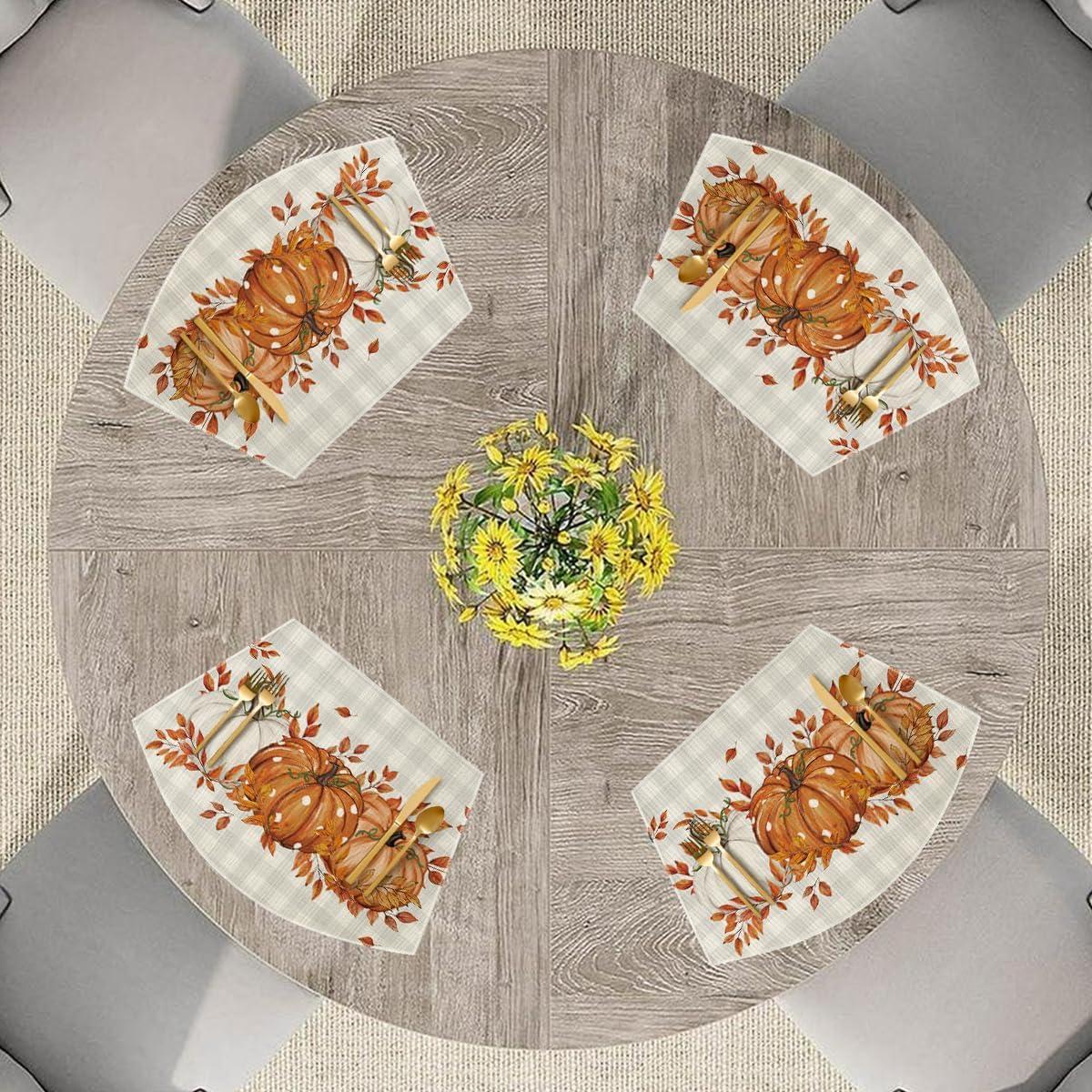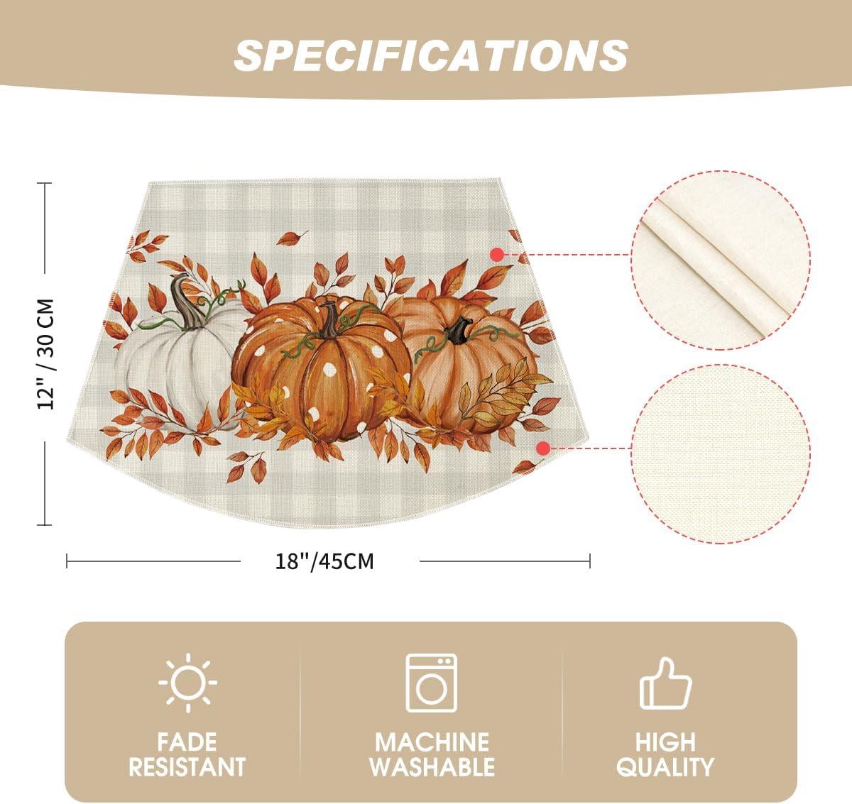 Artoid Mode Orange Pumpkins Eucalyptus Leaves Fall Placemats Set of 4, 12×18 Inch Seasonal Autumn Table Mats for Party Kitchen Dining Decoration(Beige/Orange)