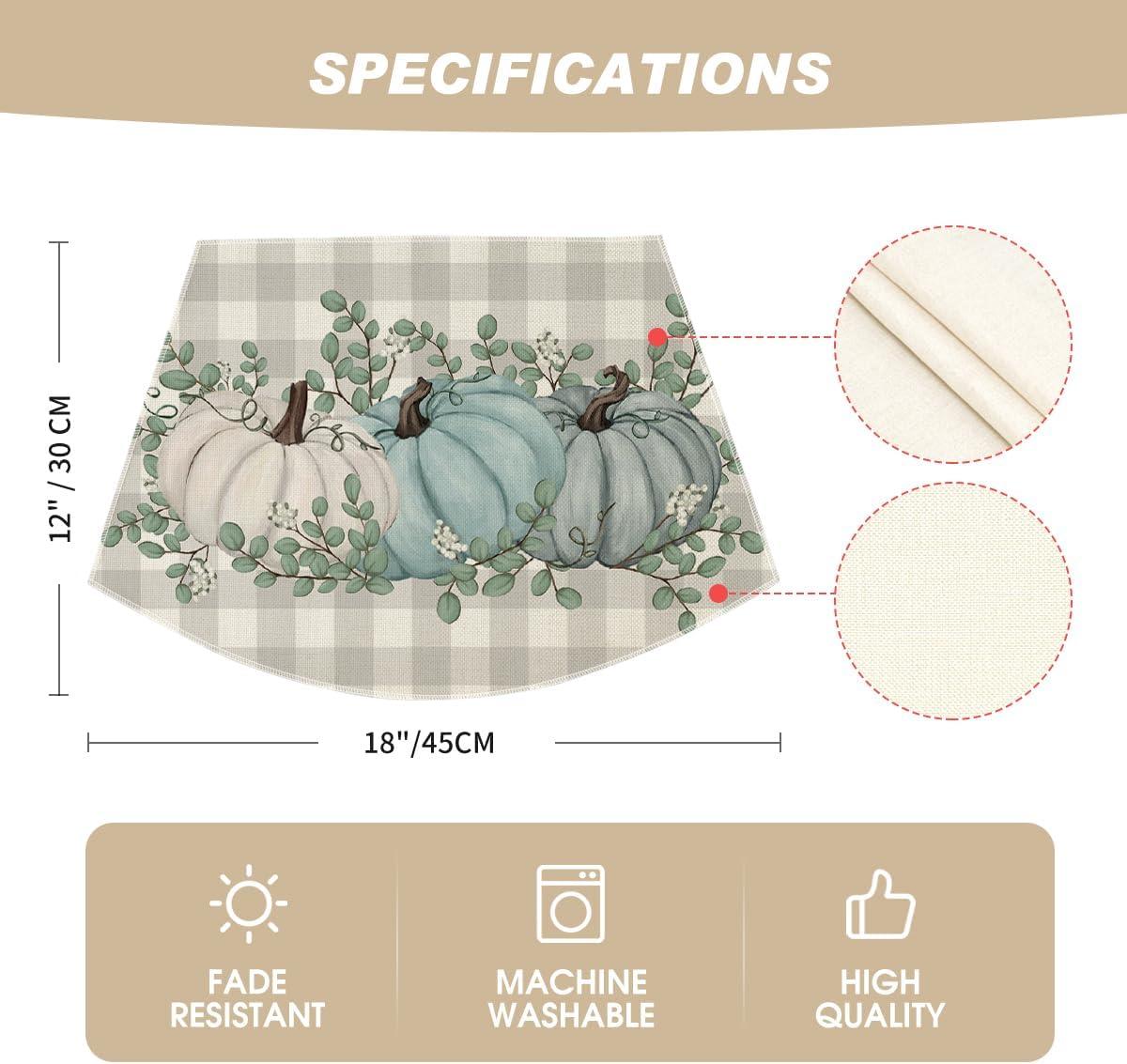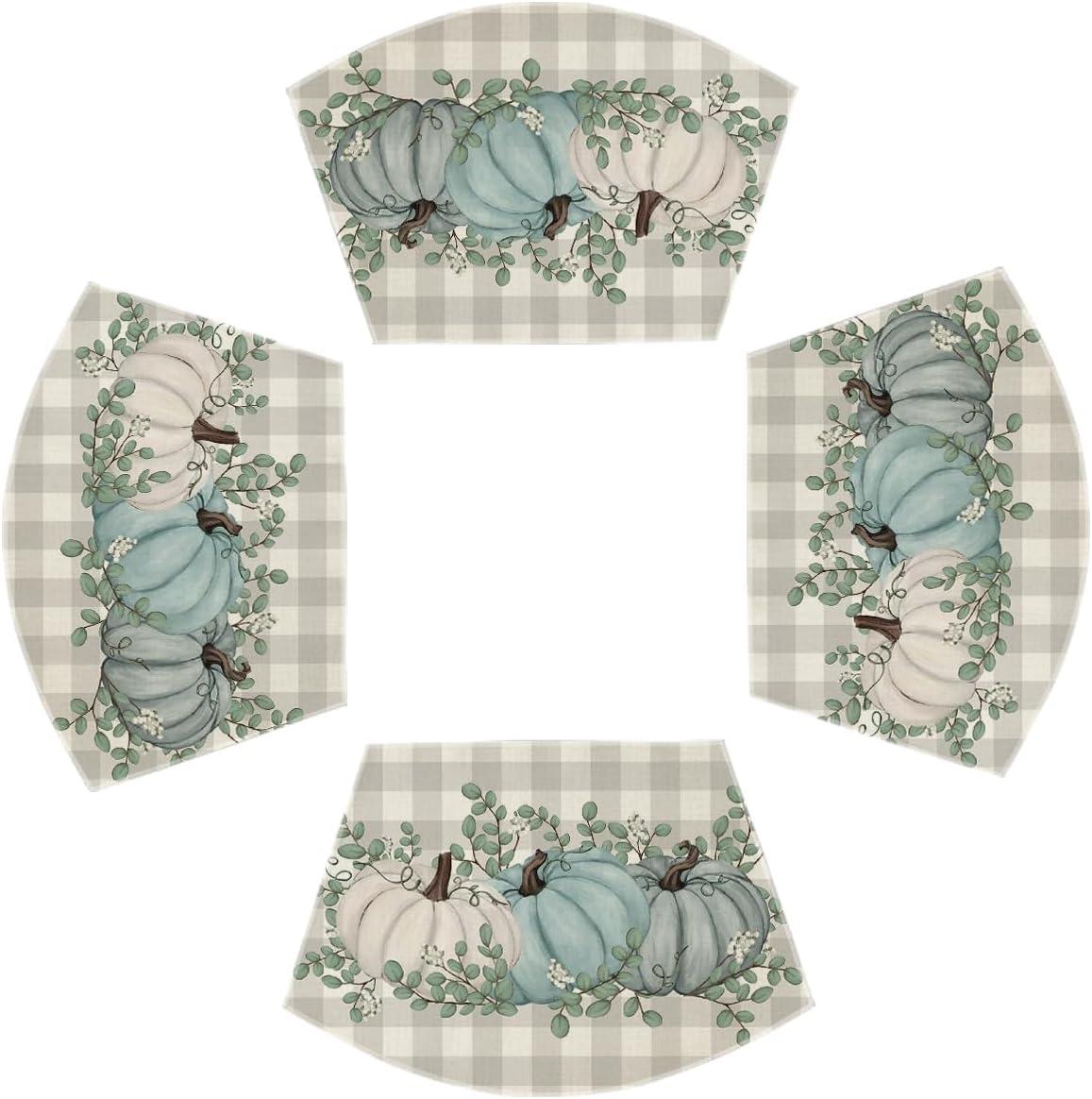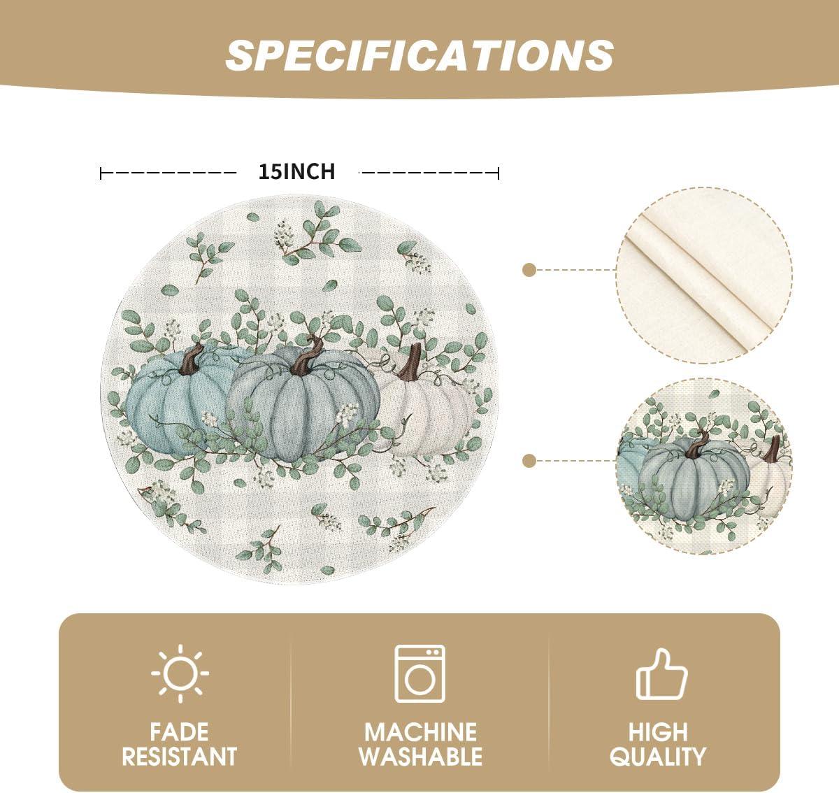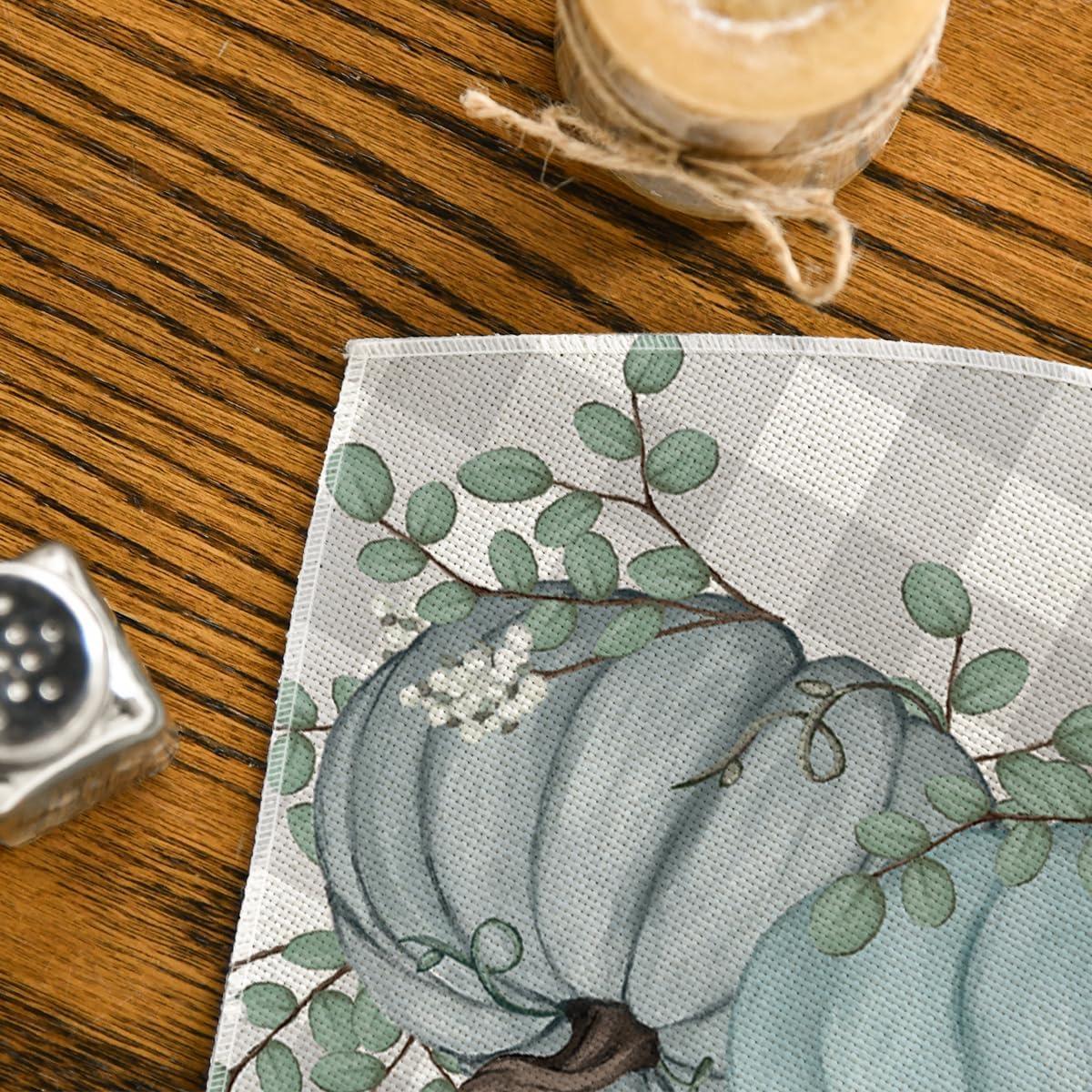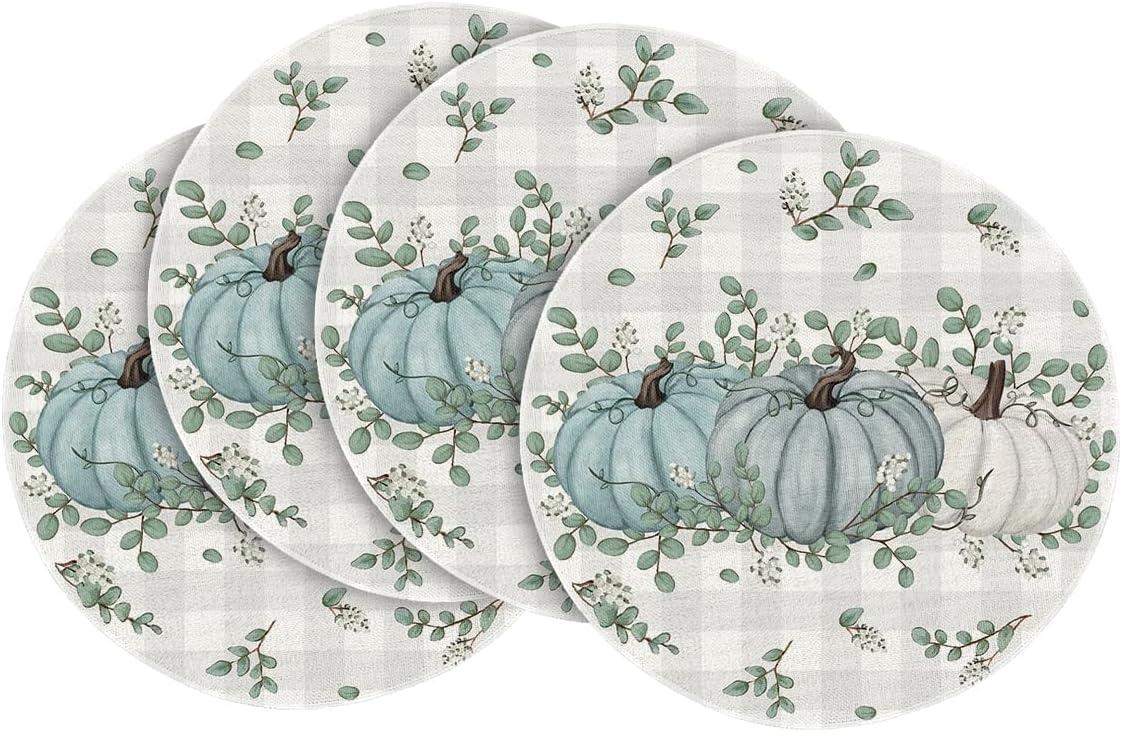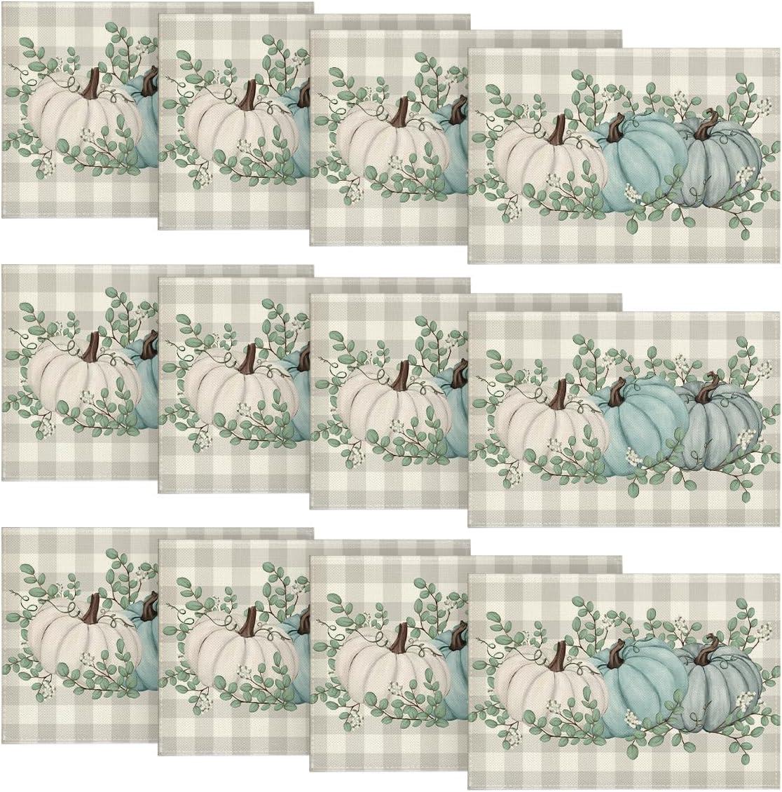 Artoid Mode Orange Pumpkins Eucalyptus Leaves Fall Placemats Set of 4, 12×18 Inch Seasonal Autumn Table Mats for Party Kitchen Dining Decoration(Blue)