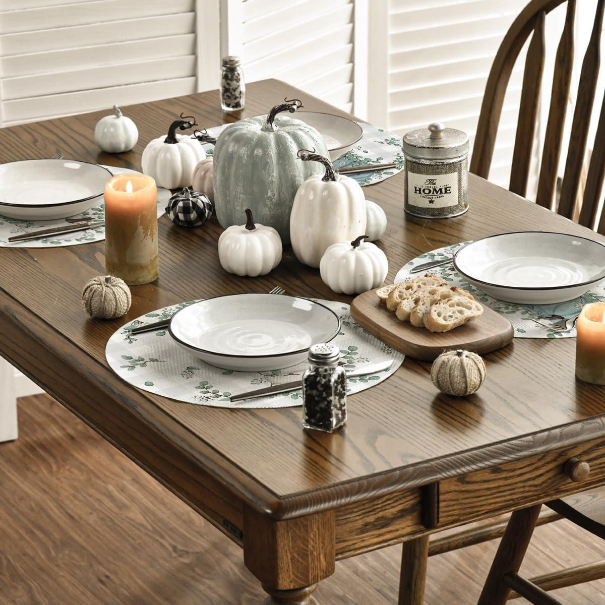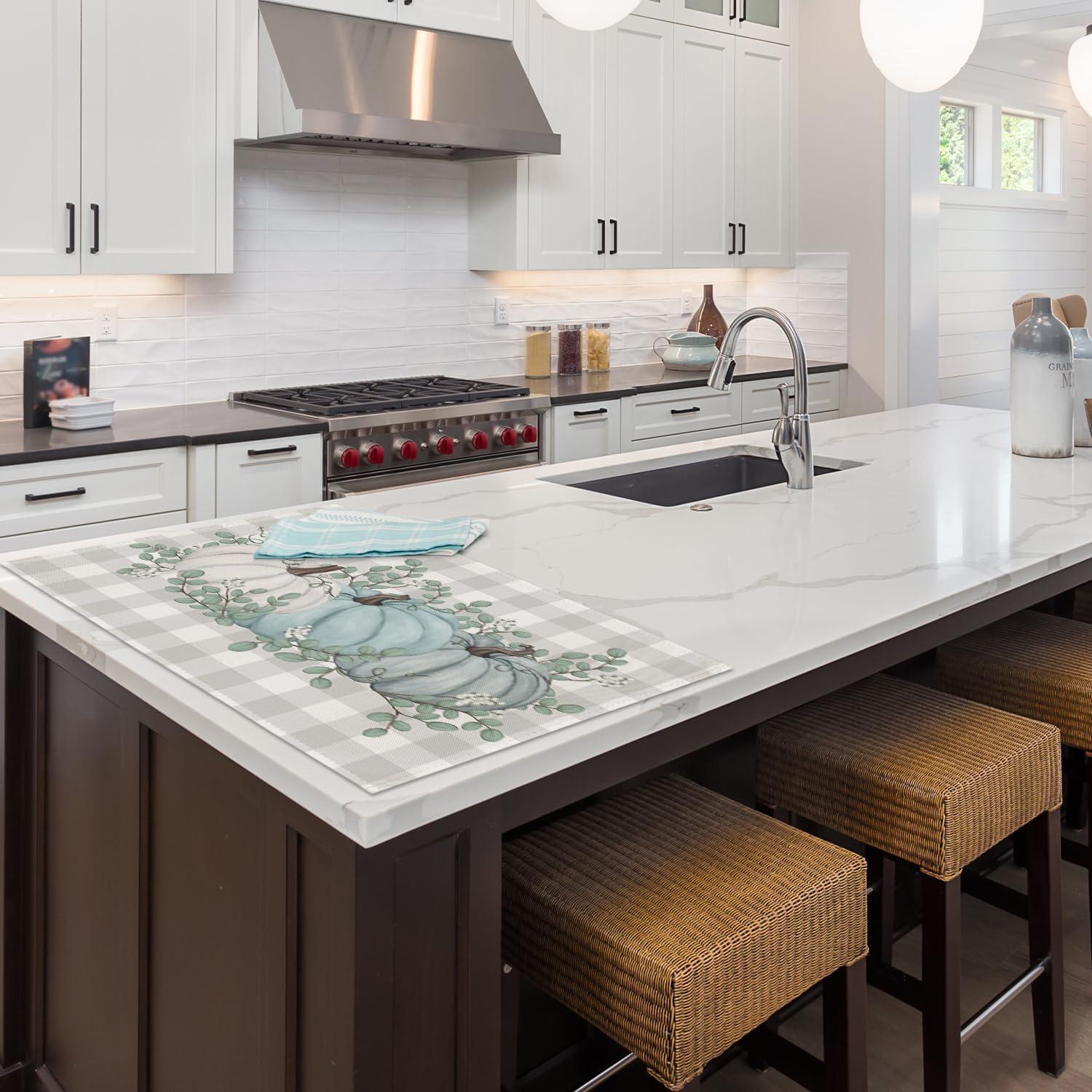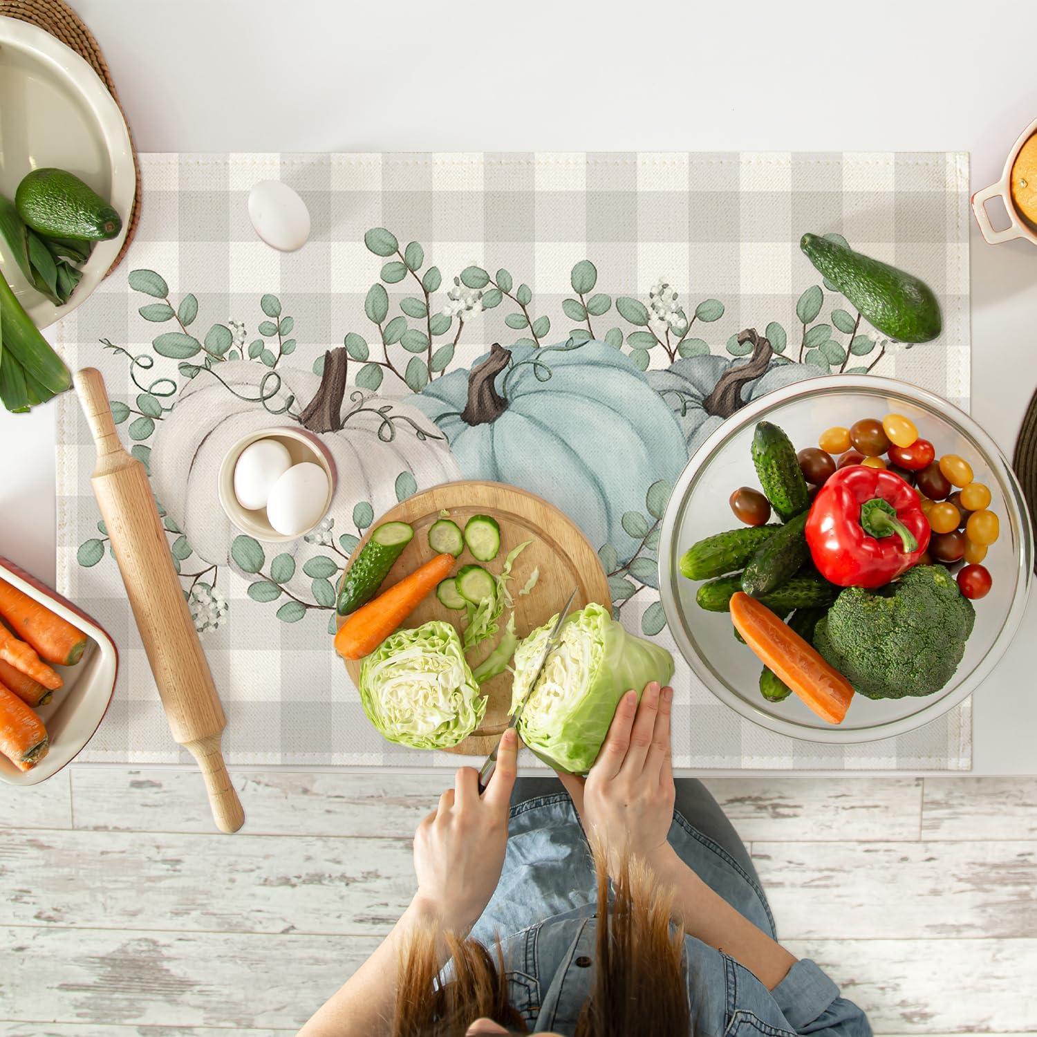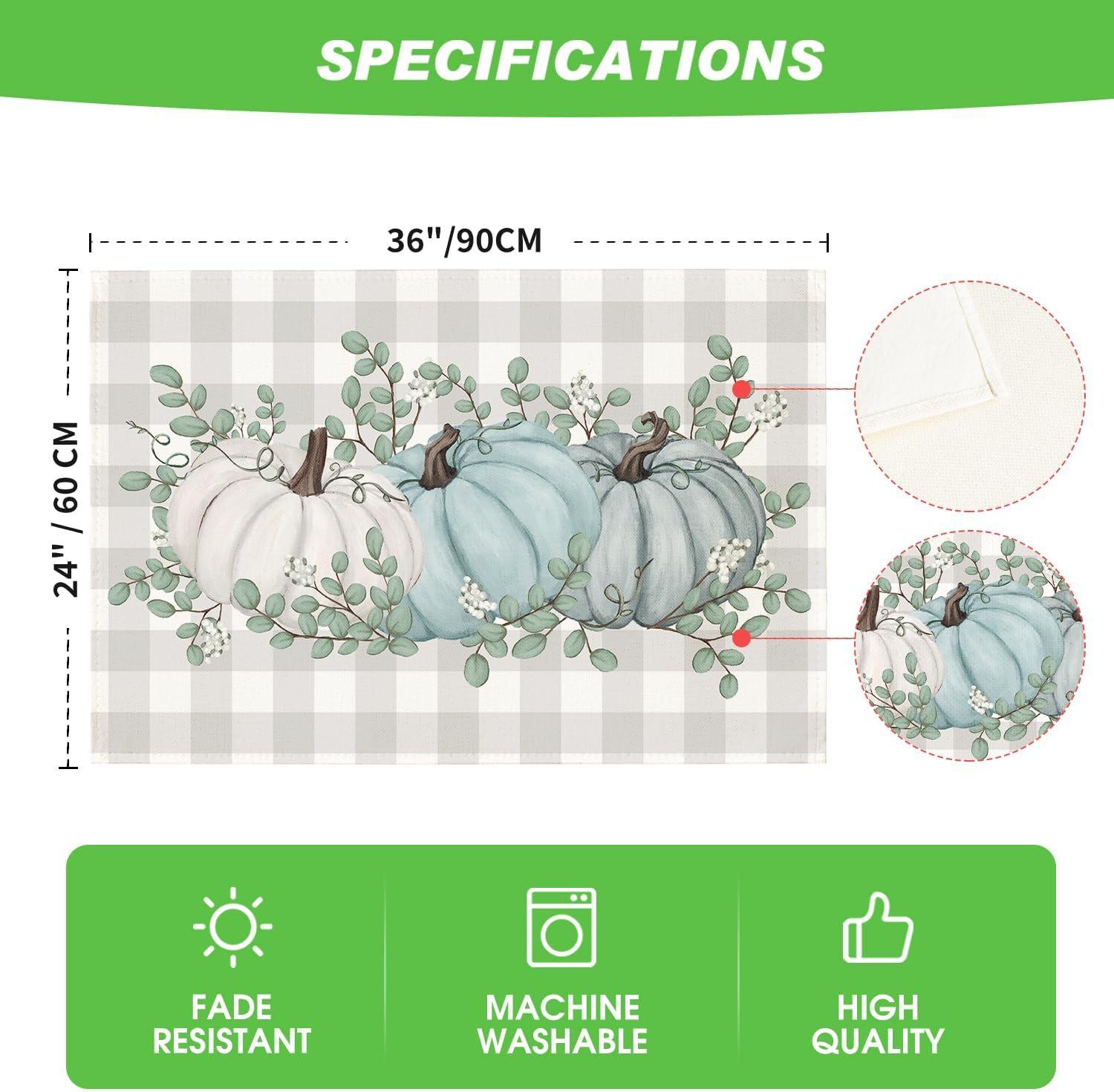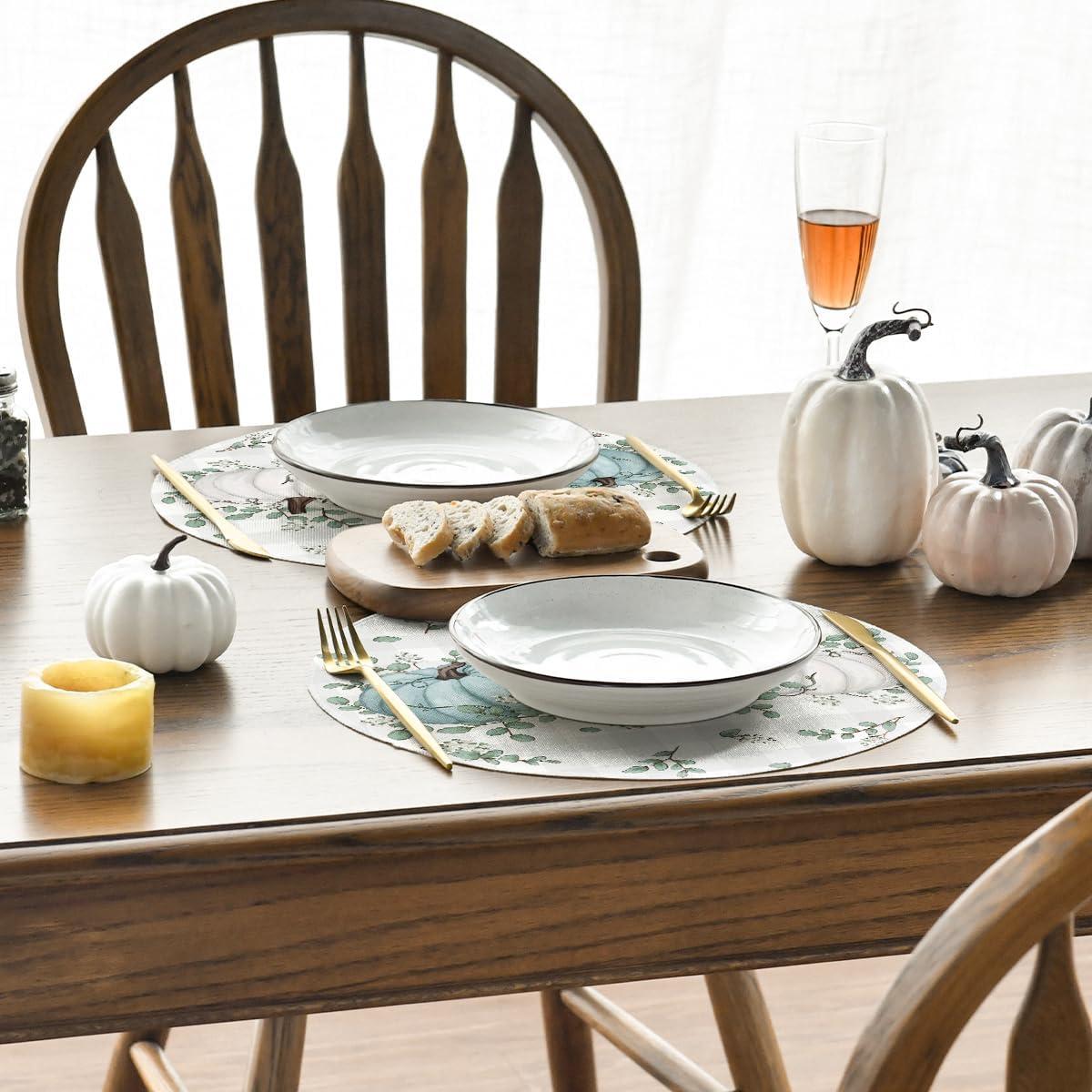 Artoid Mode Orange Pumpkins Eucalyptus Leaves Fall Placemats Set of 4, 12×18 Inch Seasonal Autumn Table Mats for Party Kitchen Dining Decoration(Blue)