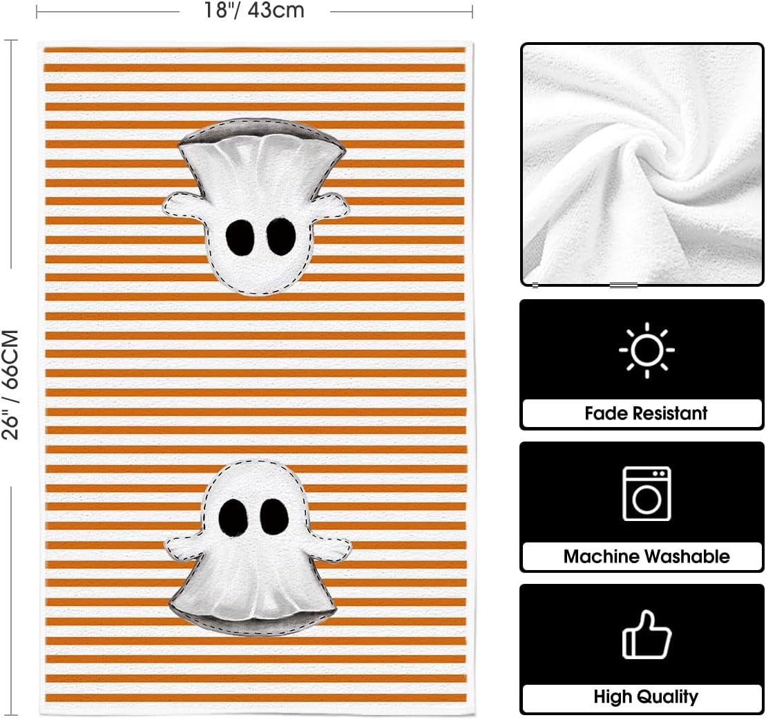 Artoid Mode Orange Stripes Ghost Boo Spooky Halloween Kitchen Towels Dish Towels, 18×26 Inch Bow Knot Decoration Hand Towels Set of 4(Orange)