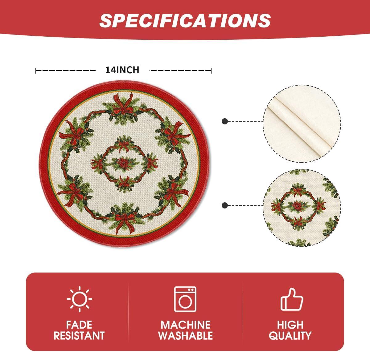 Be the first to review “Artoid Mode Pine Branches Bow Ribbon Christmas Round Placemats Set of 4, 14 Inch Winter Round Table Mats for Dining Decoration(Red)”