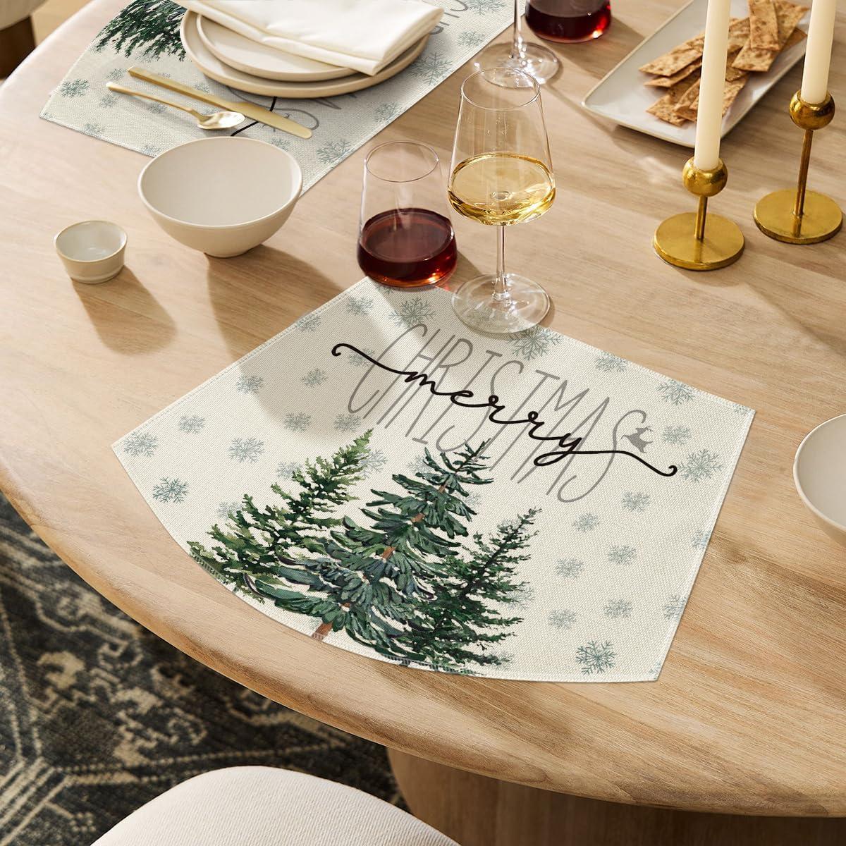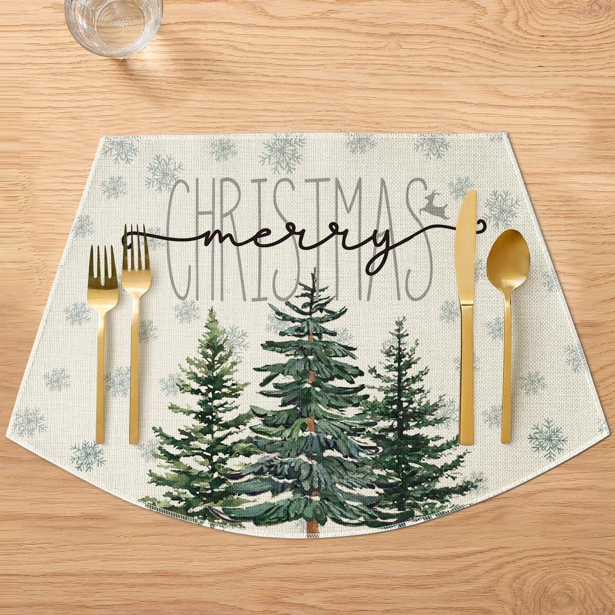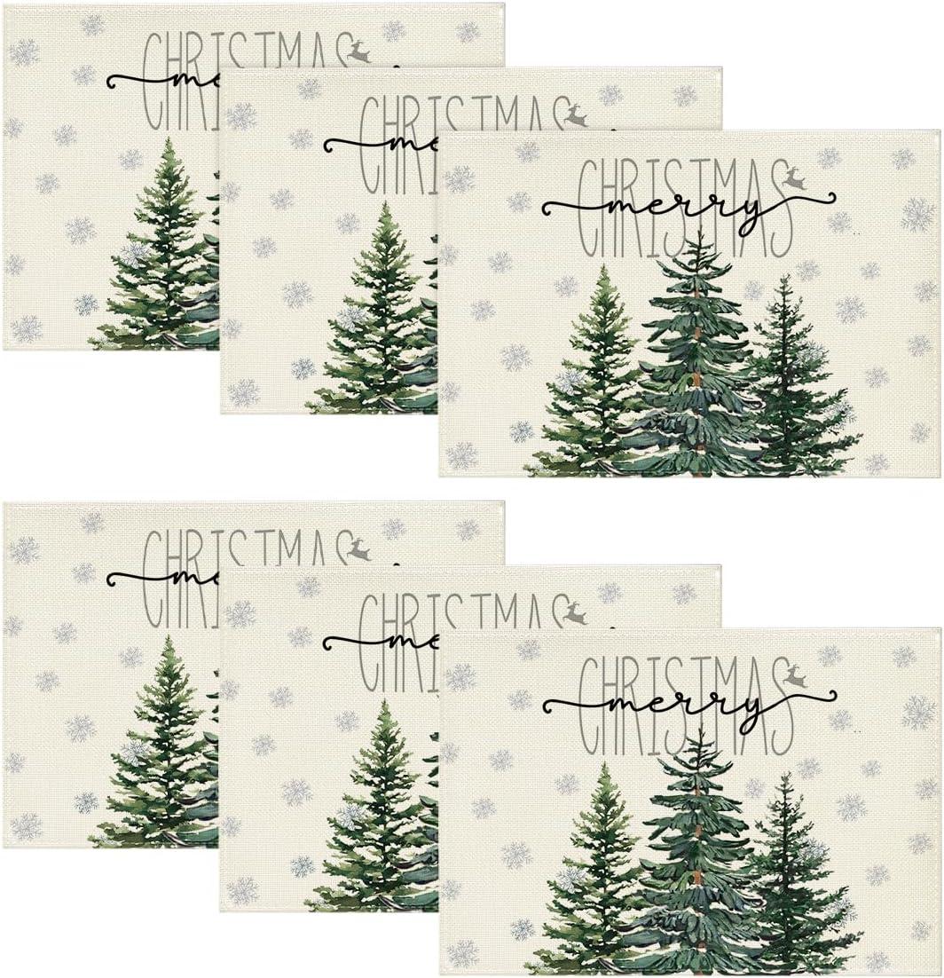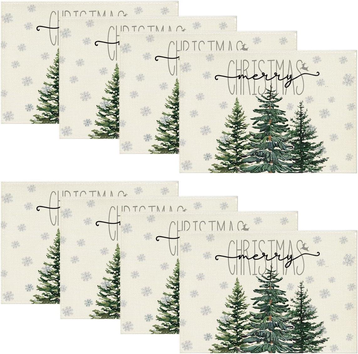 Artoid Mode Pine Tree Snowflake Merry Christmas Placemats Set of 4, 12×18 Inch Seasonal Winter Xmas Holiday Table Mats for Party Kitchen Dining Decoration(Beige)