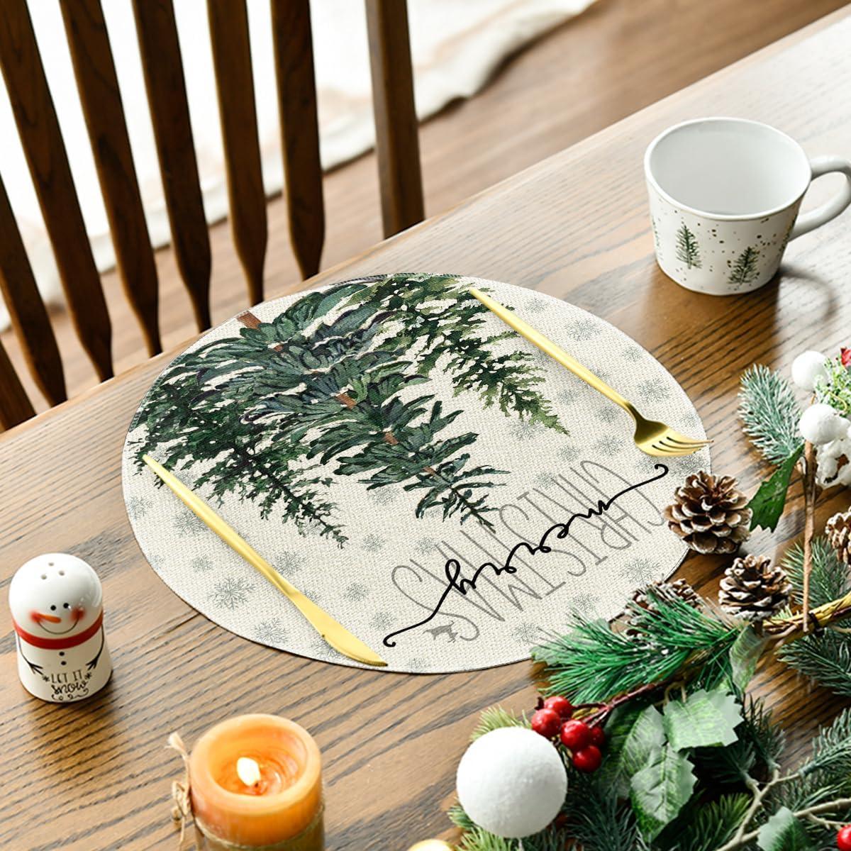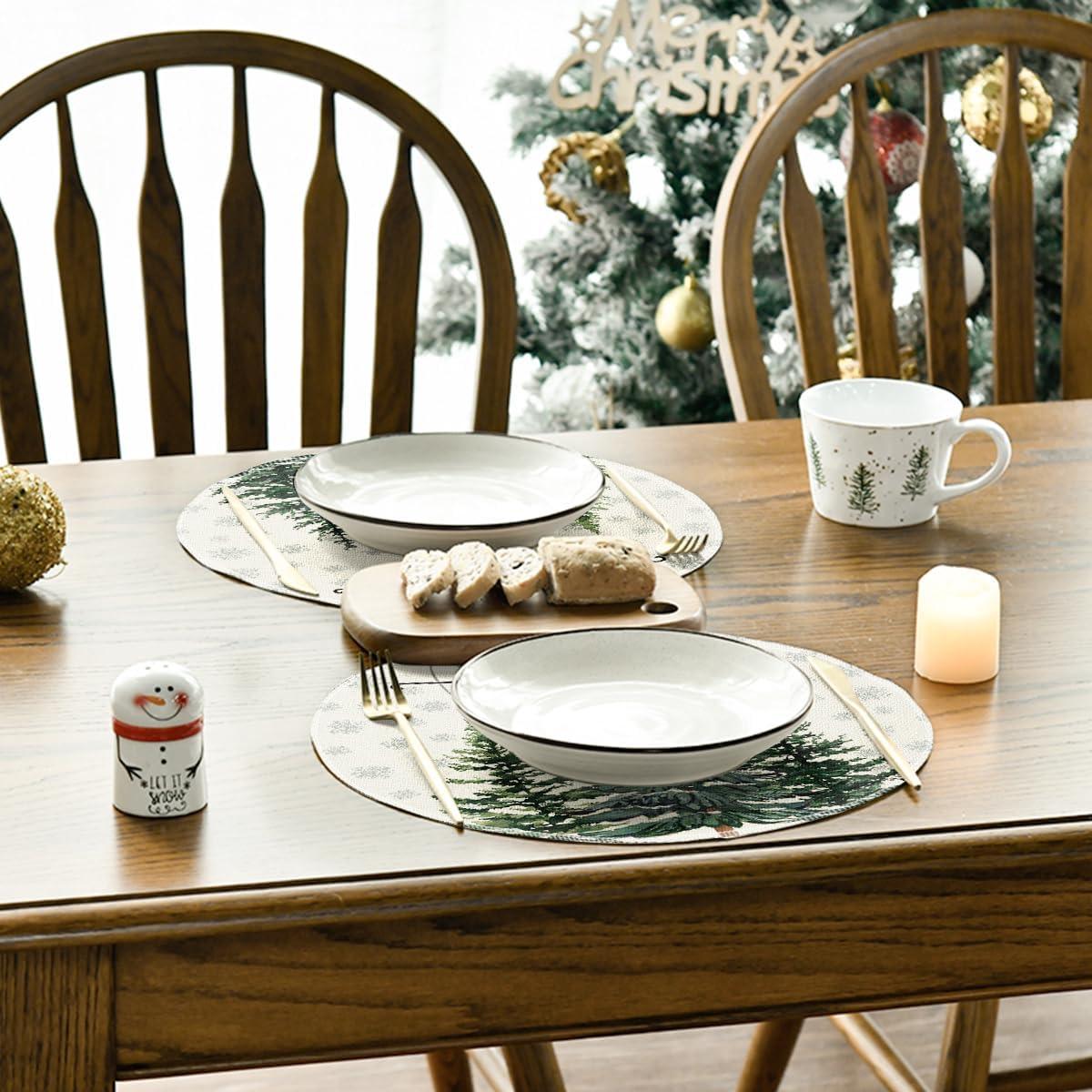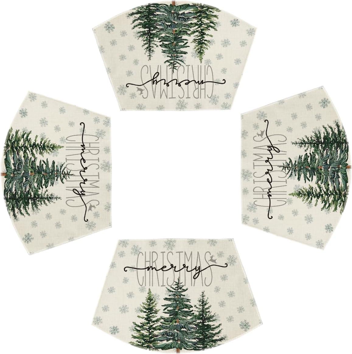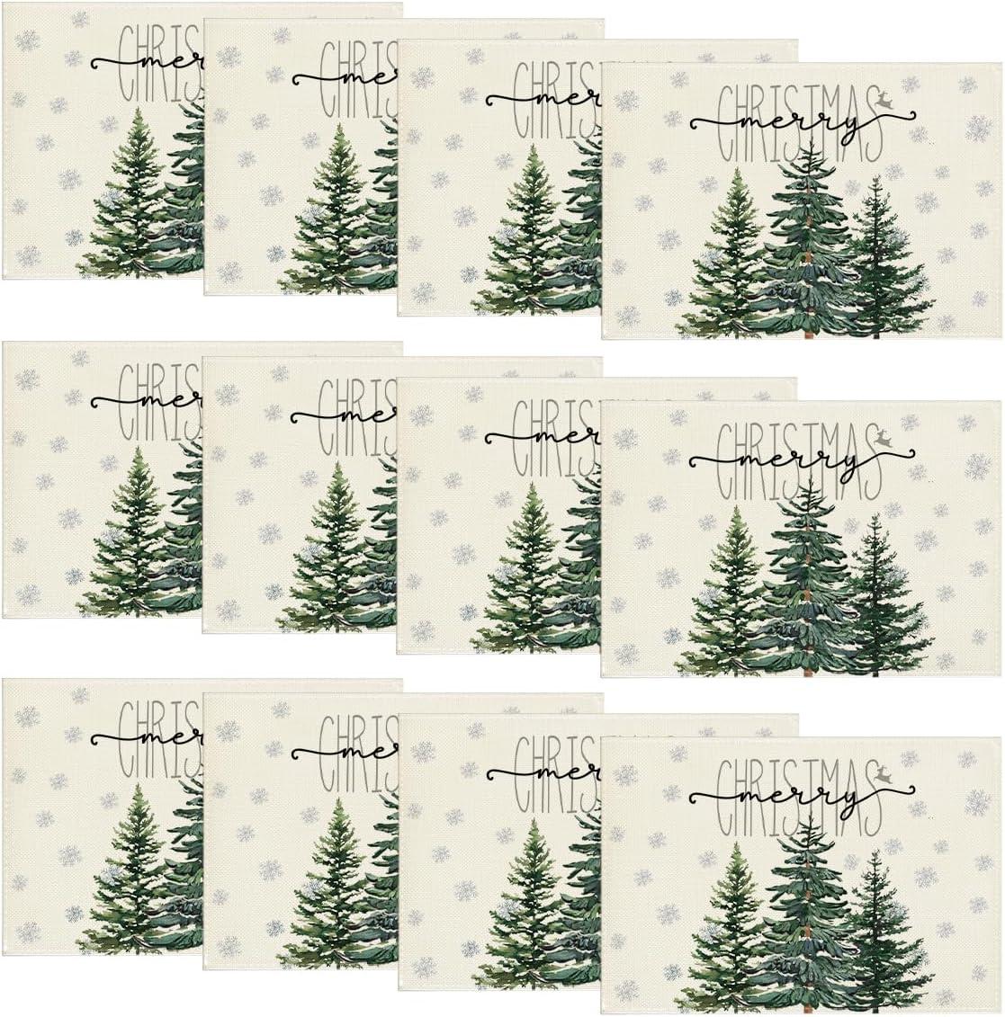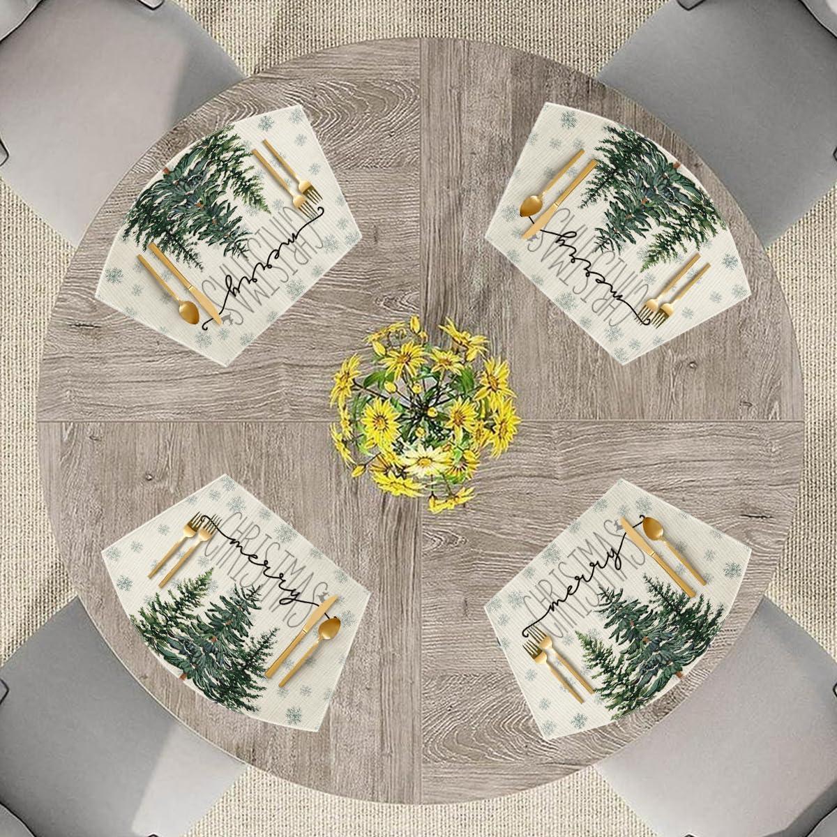 Artoid Mode Pine Tree Snowflake Merry Christmas Placemats Set of 4, 12×18 Inch Seasonal Winter Xmas Holiday Table Mats for Party Kitchen Dining Decoration(Beige)