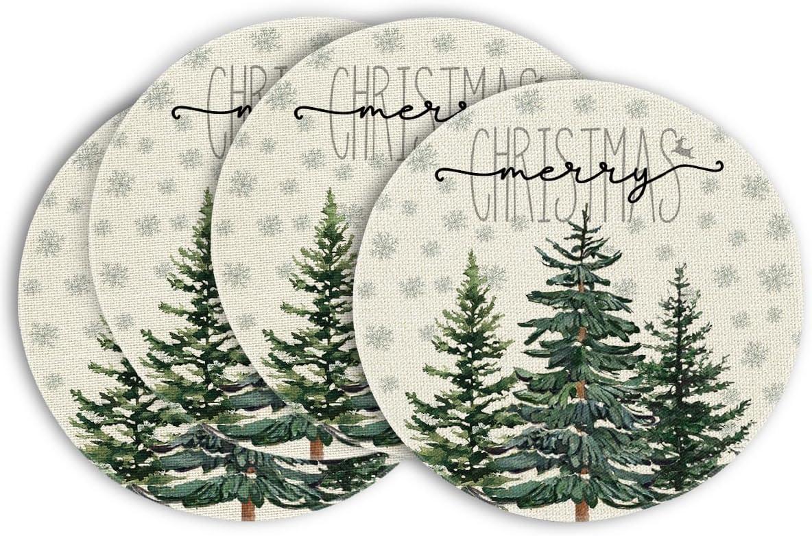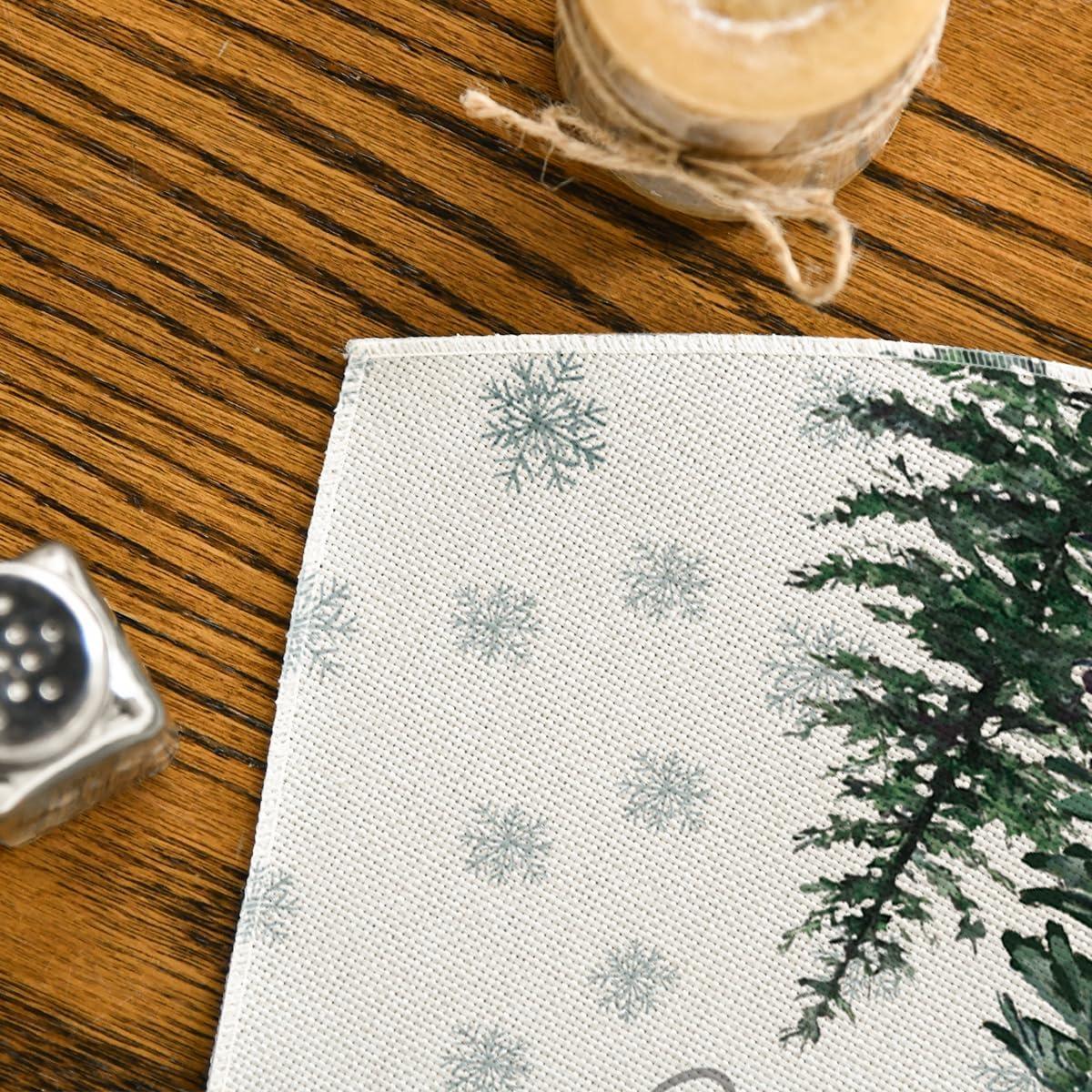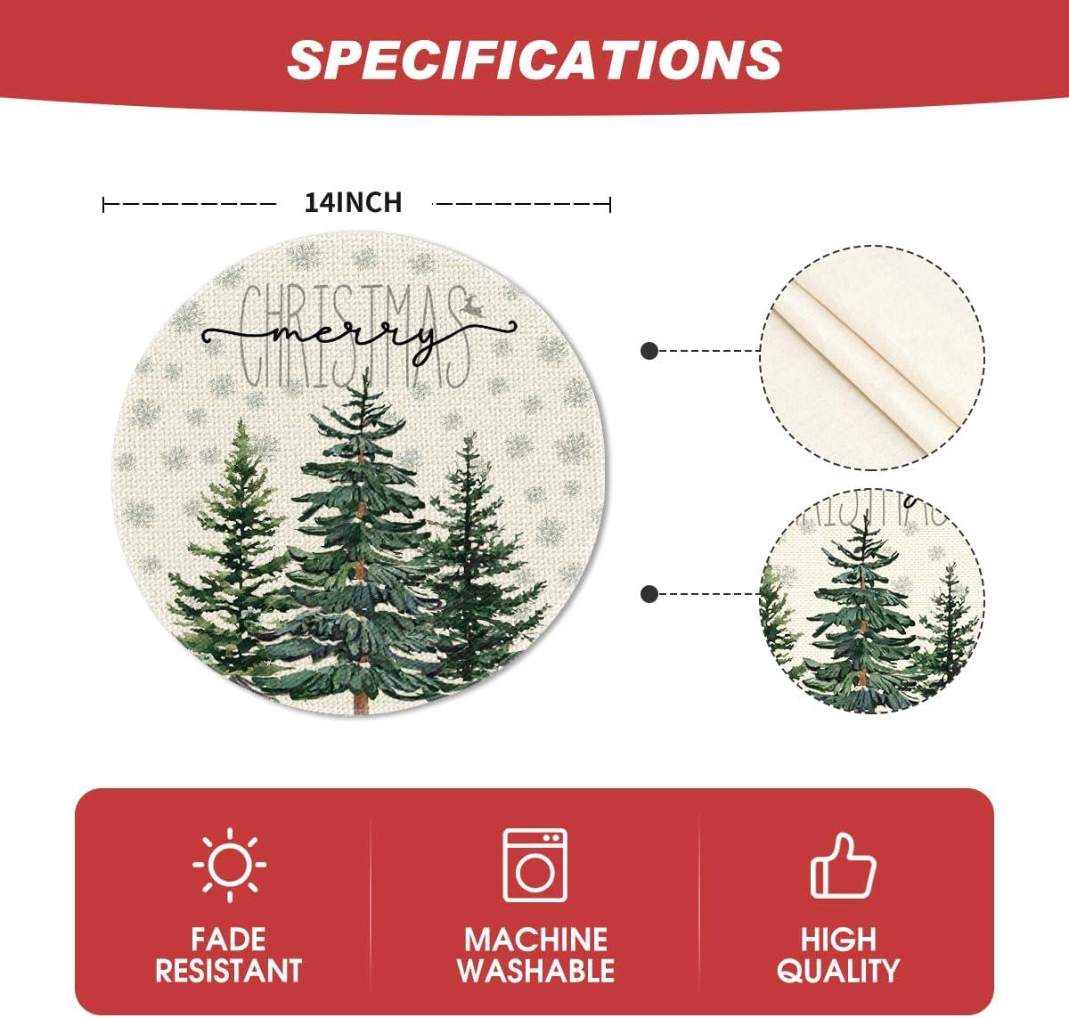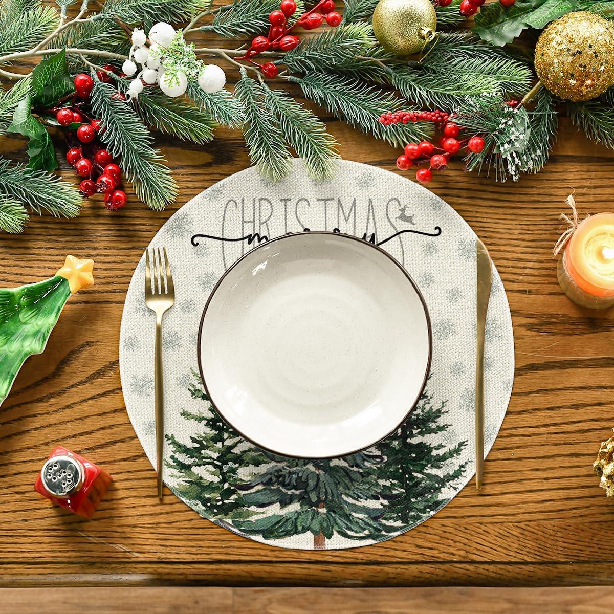 Artoid Mode Pine Tree Snowflake Merry Christmas Placemats Set of 4, 12×18 Inch Seasonal Winter Xmas Holiday Table Mats for Party Kitchen Dining Decoration(Beige)
