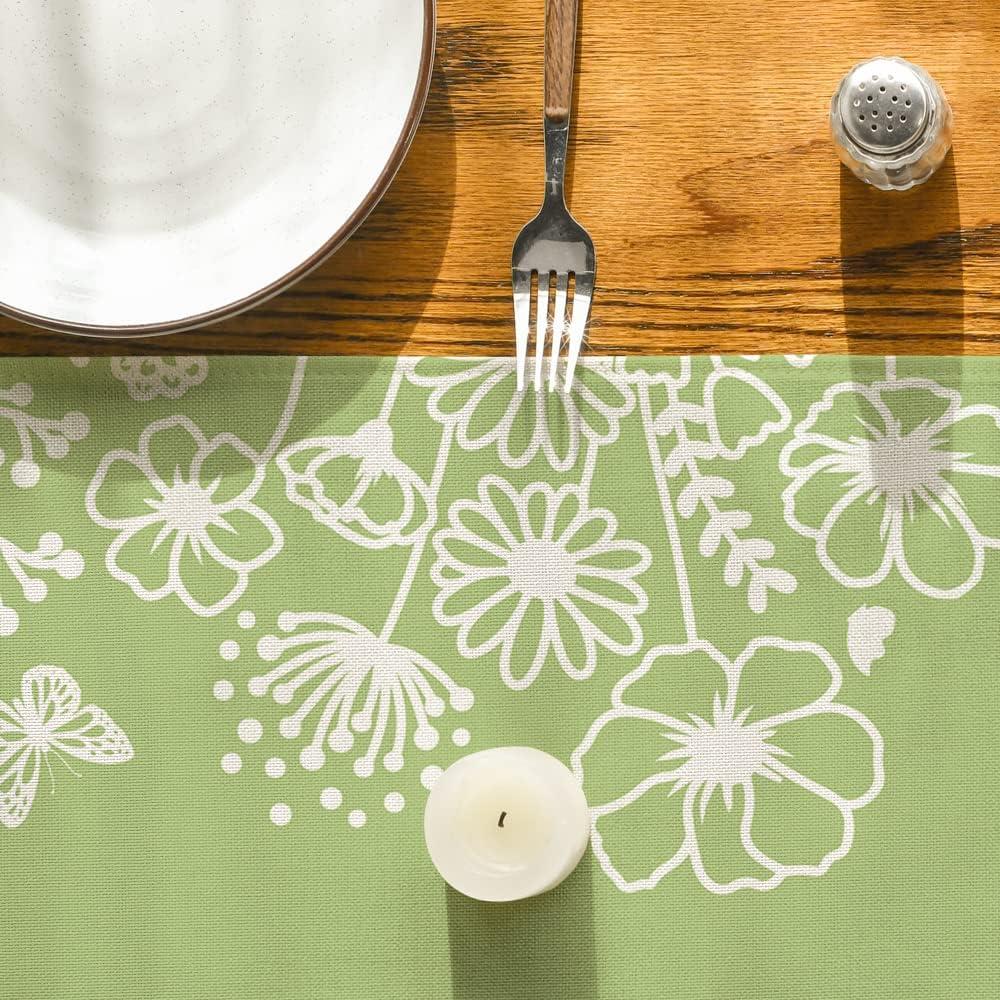 Artoid Mode Pink Bloom Flowers Butterfly Spring Table Runner, Seasonal Holiday Kitchen Dining Table Decoration for Home Party Indoor 13×72 Inch(Green)