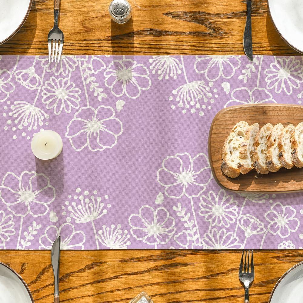 Artoid Mode Pink Bloom Flowers Butterfly Spring Table Runner, Seasonal Holiday Kitchen Dining Table Decoration for Home Party Indoor 13×72 Inch(Purple)