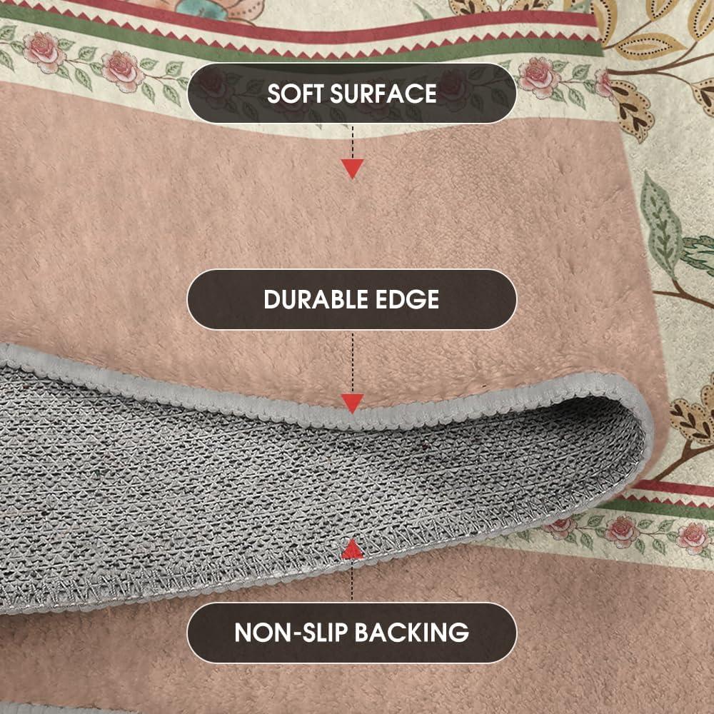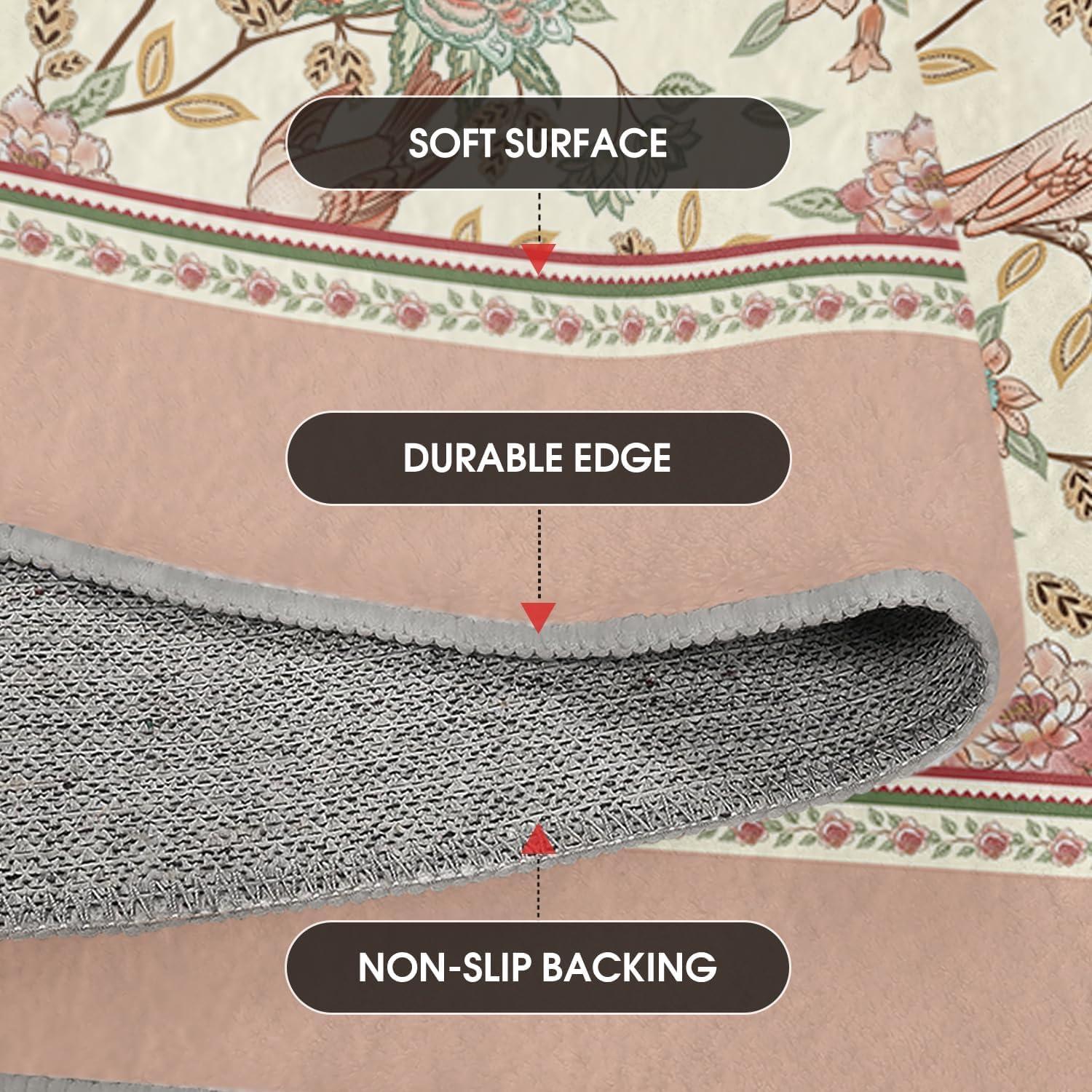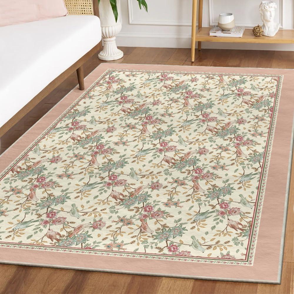 Artoid Mode Pink Floral Bird Spring Area Rug, Summer Home Decor Low-Profile Washable Area Rugs for Entryway Bedroom Living Room Laundry Room Indoor 5×7 Feet(Pink)