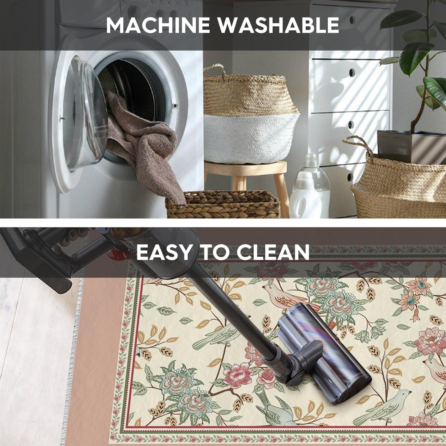 AREA RUGS WASHABLE:The washing machine and vacuum cleaner is friendly to these area rug. Rugs are quick and easy to clean and maintain which is durable, just regular vacuuming and gently blotting out minor stains with a mild detergent or carpet cleaner. A clean rug for living room can be obtained without taking a long time.