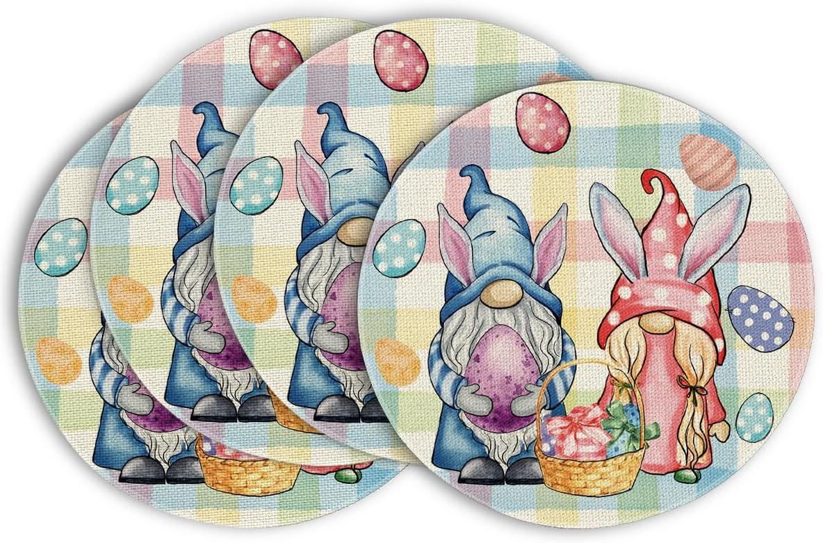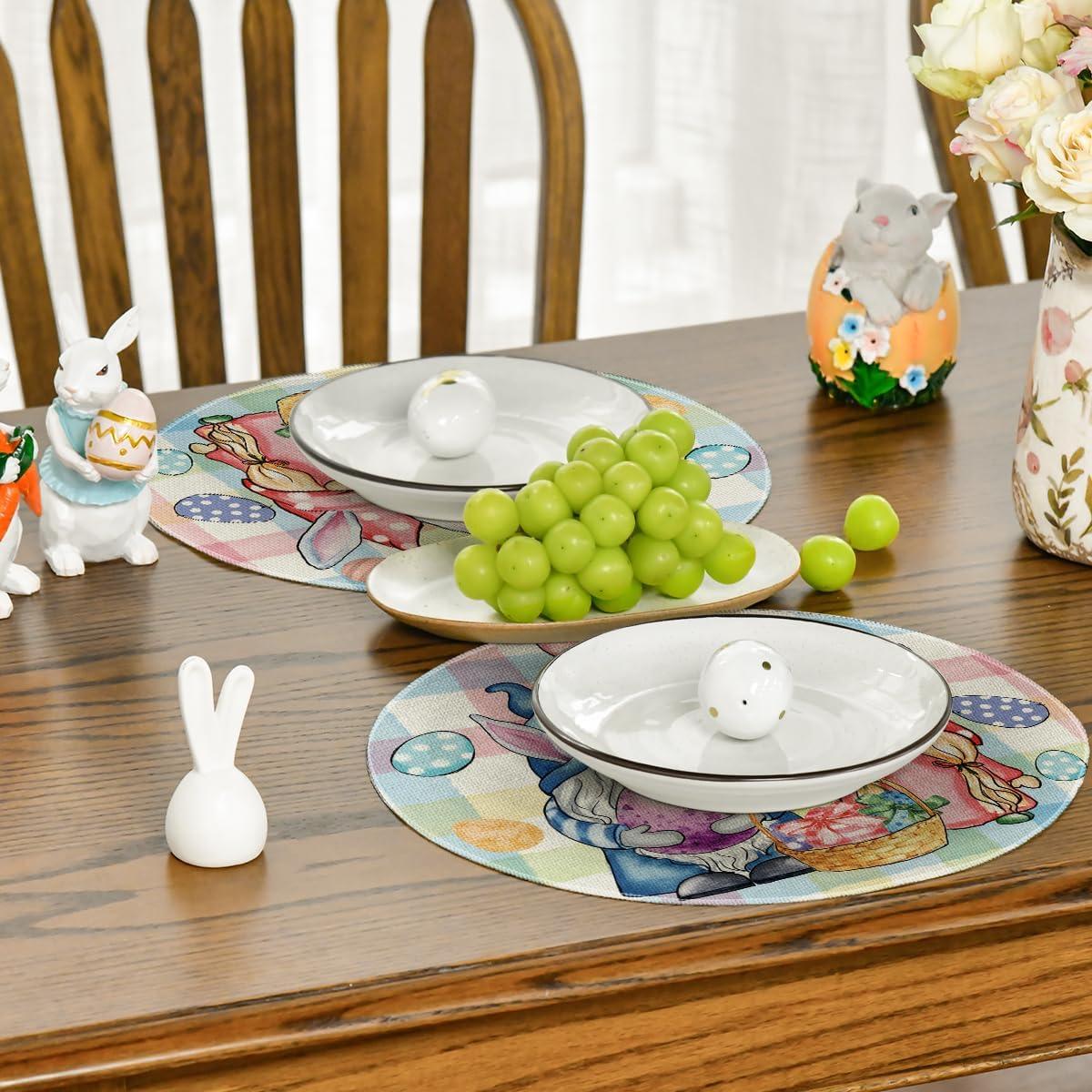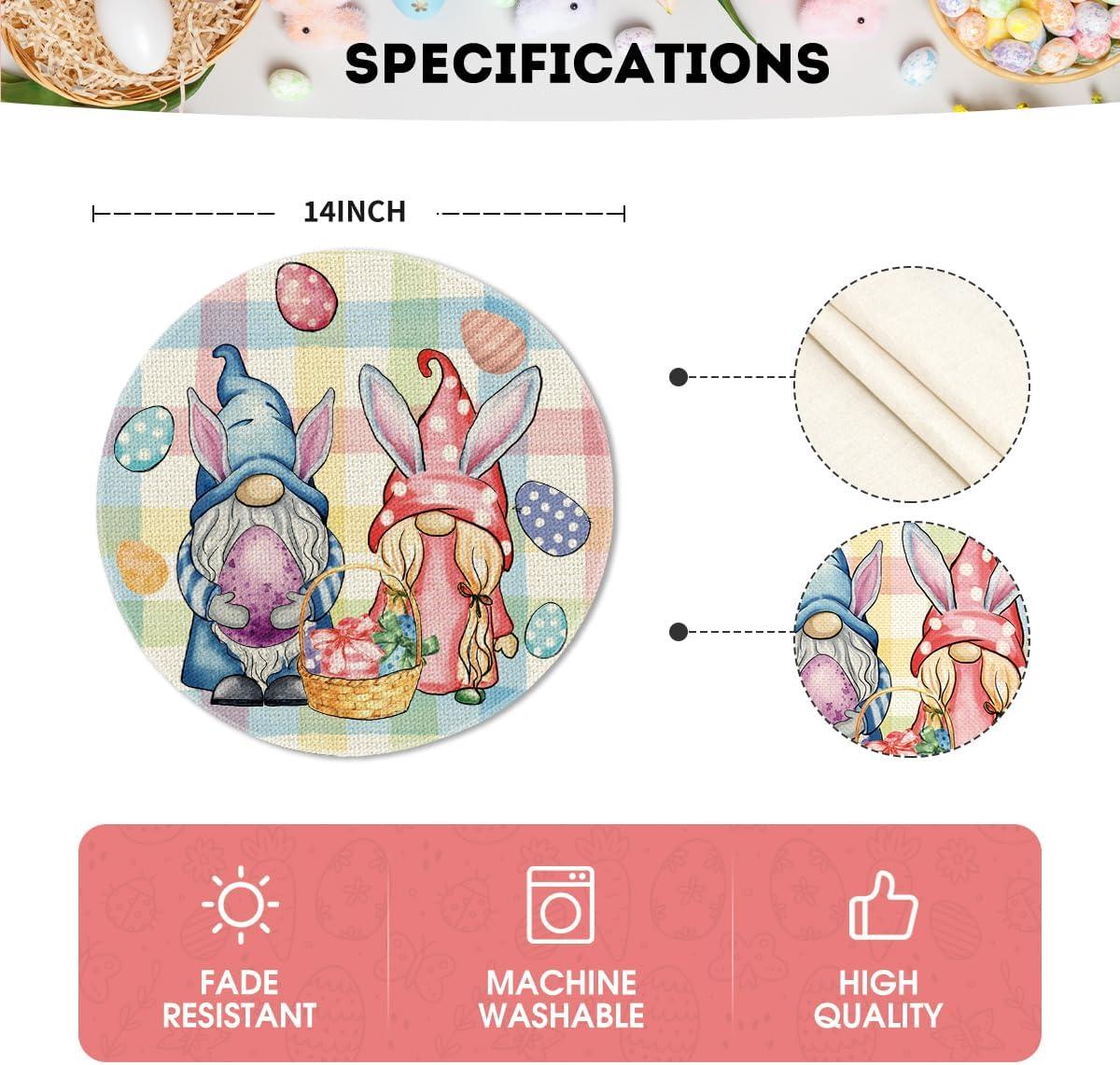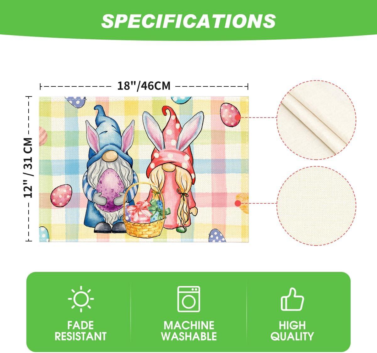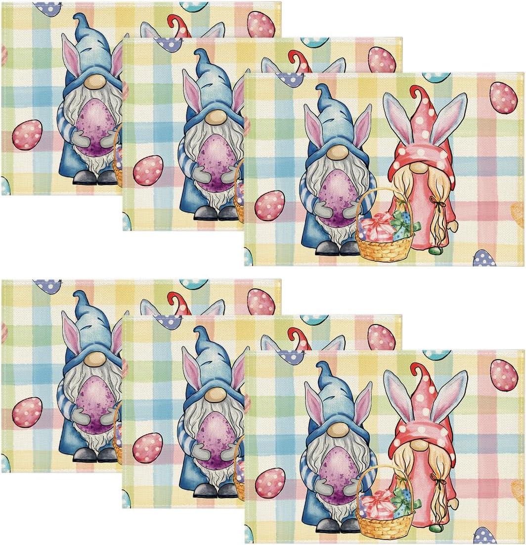 Artoid Mode Pink Green Buffalo Plaid Bunny Gnomes Eggs Easter Placemats Set of 4, 12×18 Inch Seasonal Table Mats for Party Kitchen Dining Decoration(Pink/Blue)