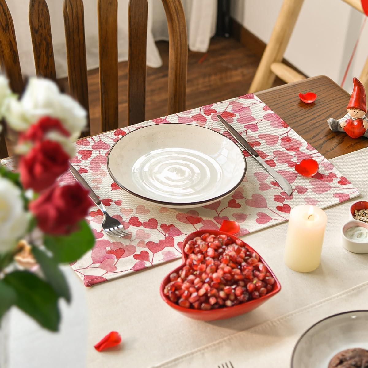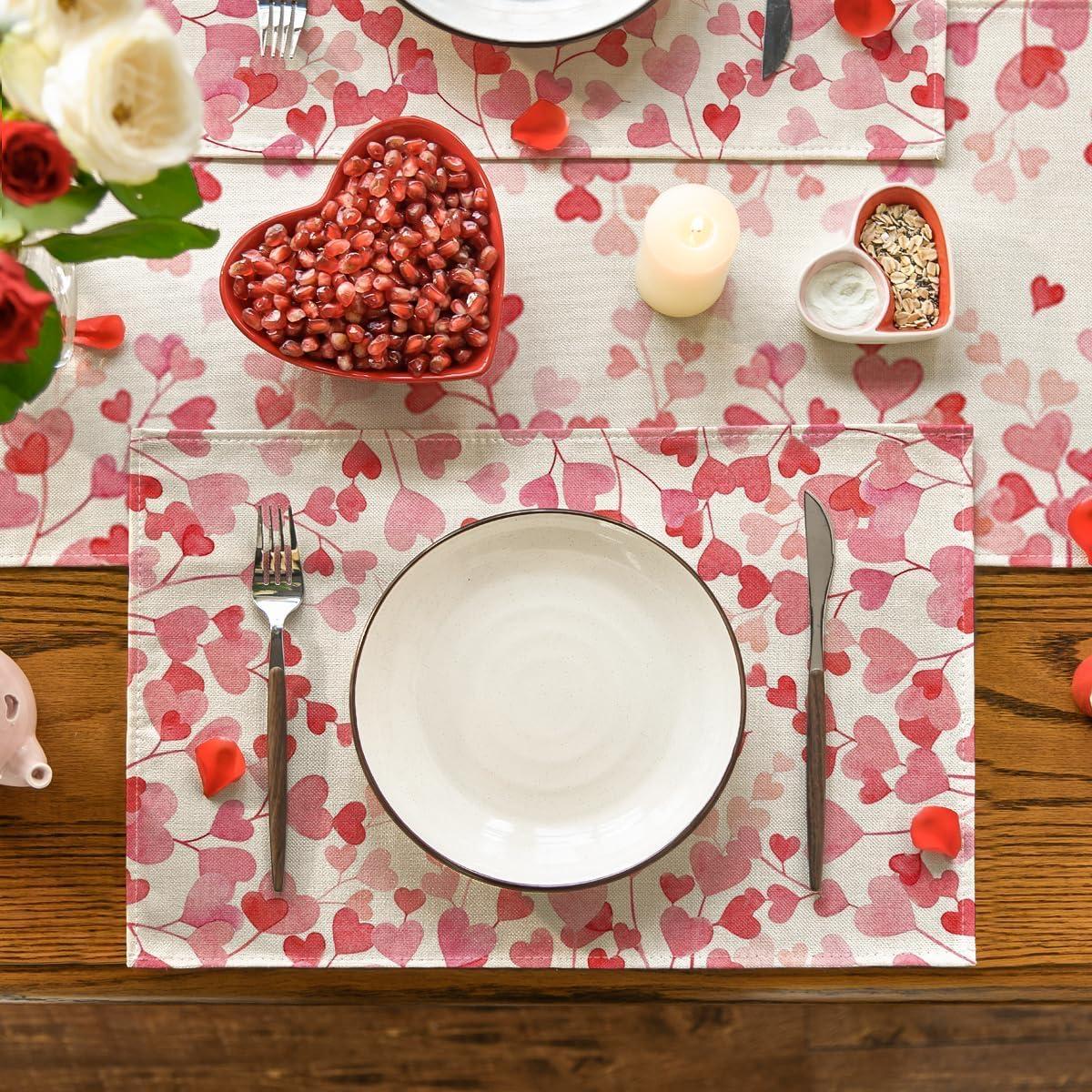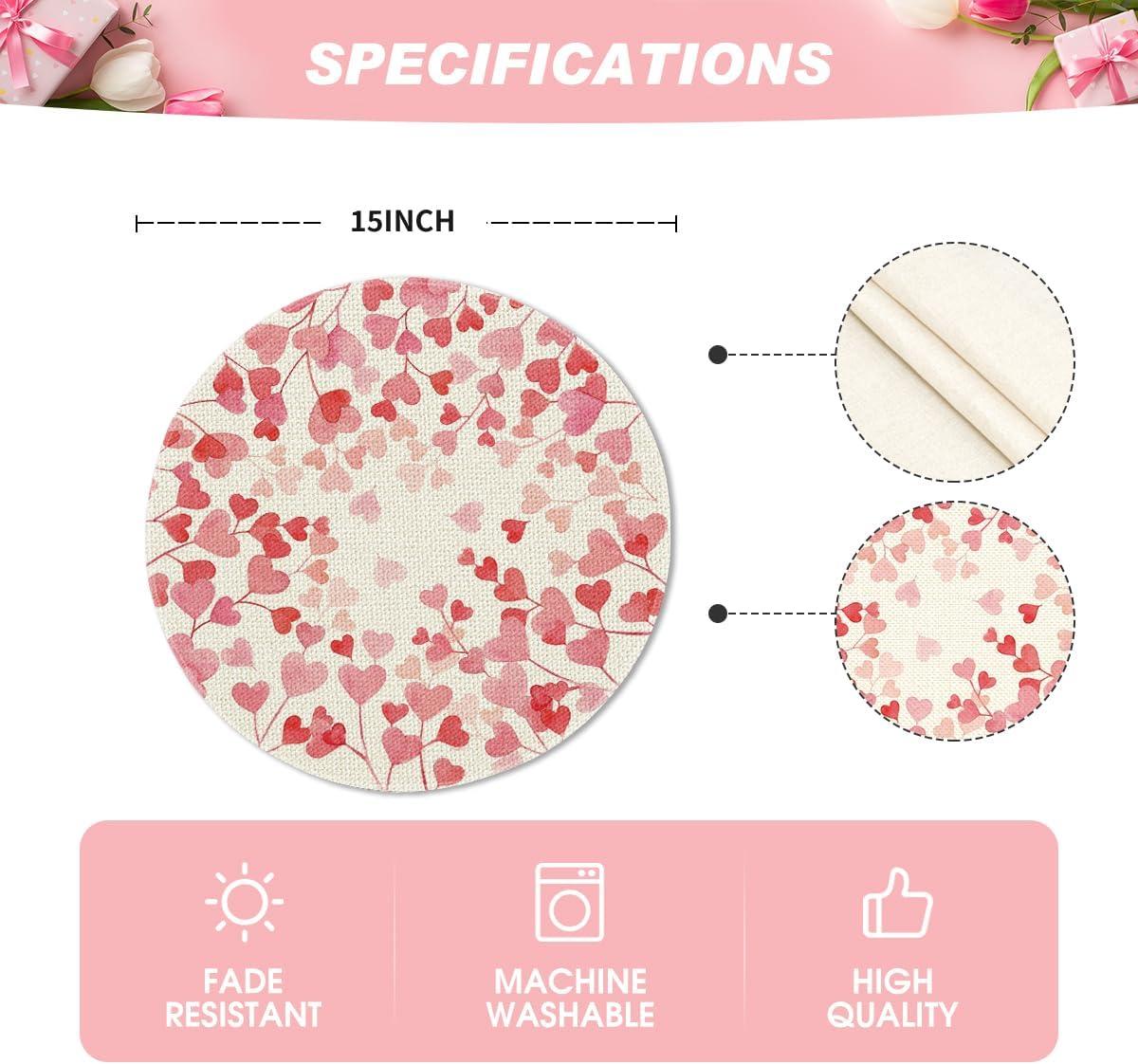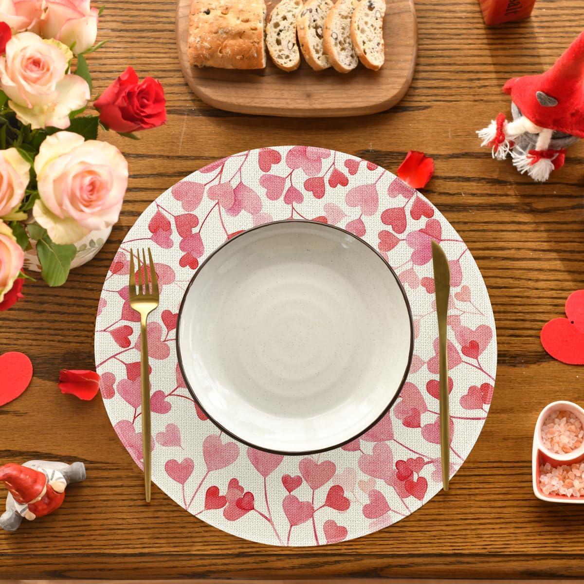 Artoid Mode Pink Love Hearts Round Valentine Placemats Set of 4, 14 Inch Anniversary Wedding Round Table Mats for Dining Decoration(Pink)