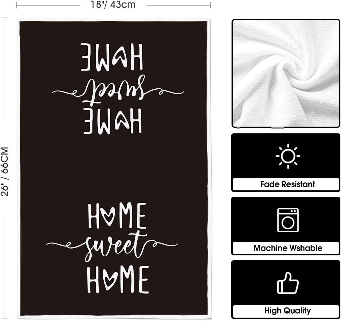 Artoid Mode Pink Stripes Home Sweet Home Boho Kitchen Towels Dish Towels, 18×26 Inch Wedding Decoration Hand Towels Set of 4(Black)