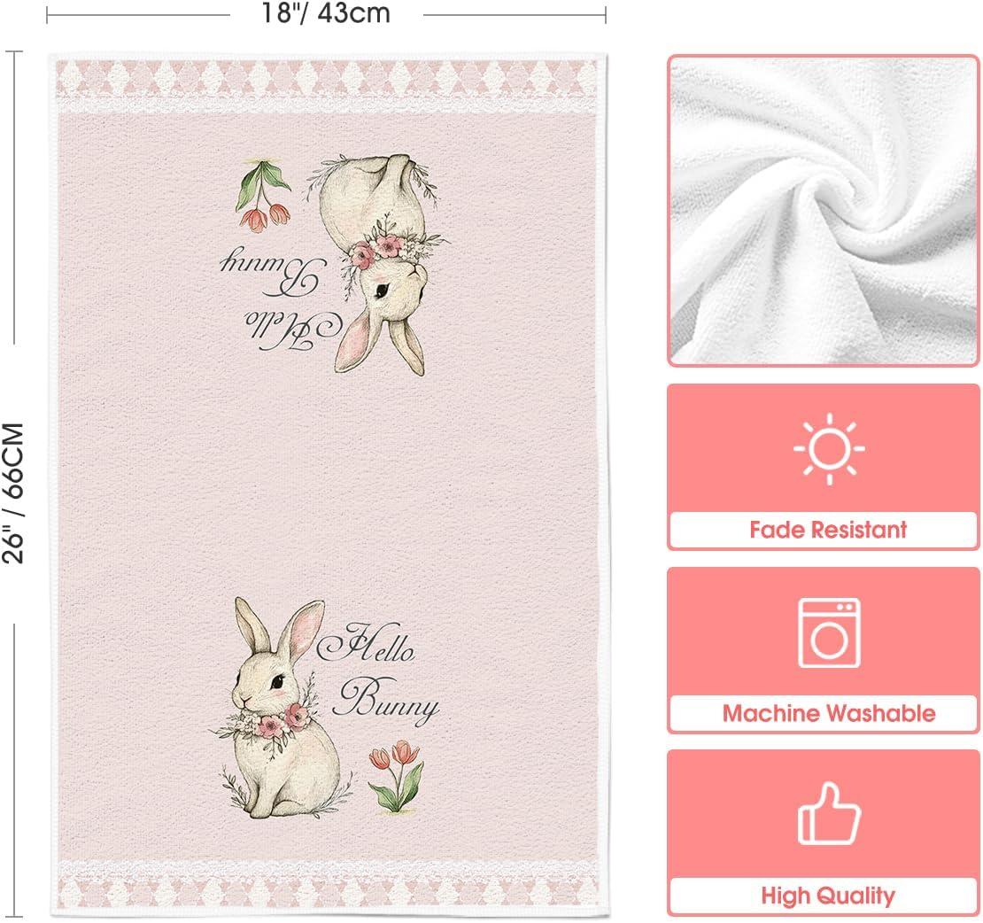 Artoid Mode Pink Tulips Hello Bunny Easter Kitchen Towels Dish Towels, 18×26 Inch Spring Farmhouse Eucalyptus Decoration Hand Towels Set of 2