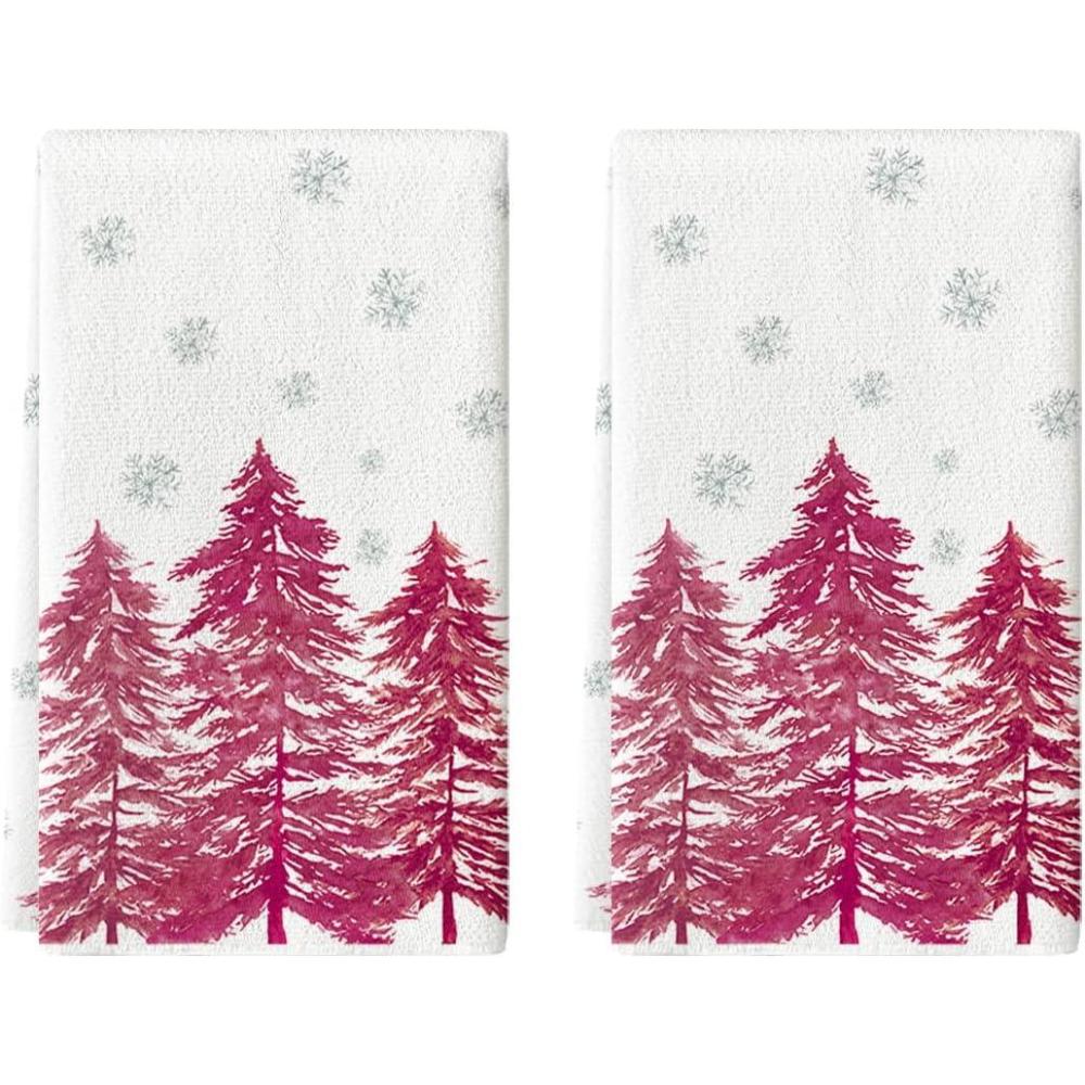 Artoid Mode Pink Xmas Tree Christmas Kitchen Towels Dish Towels, 18×26 Inch Farmhouse Snowflakes Winter Decoration Cleaning Set of 2(Pink)