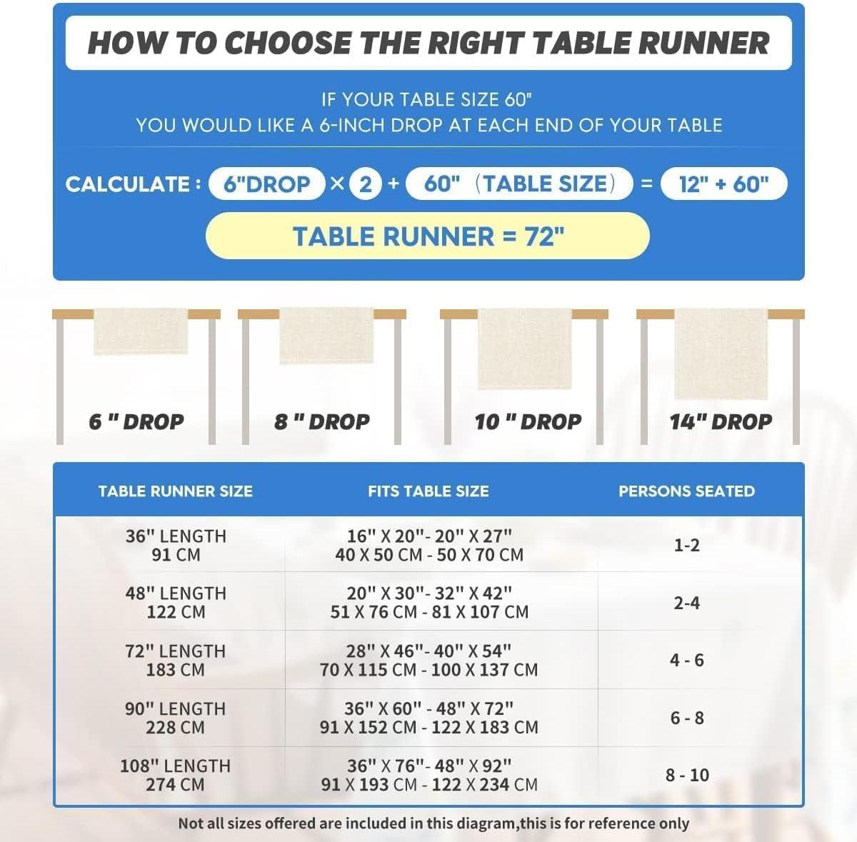 Fits Table Size : This table runner is 13 x 72 inch, appropriate for a table that can seat 4-6 people, better match your table and give you a delightful dining experience