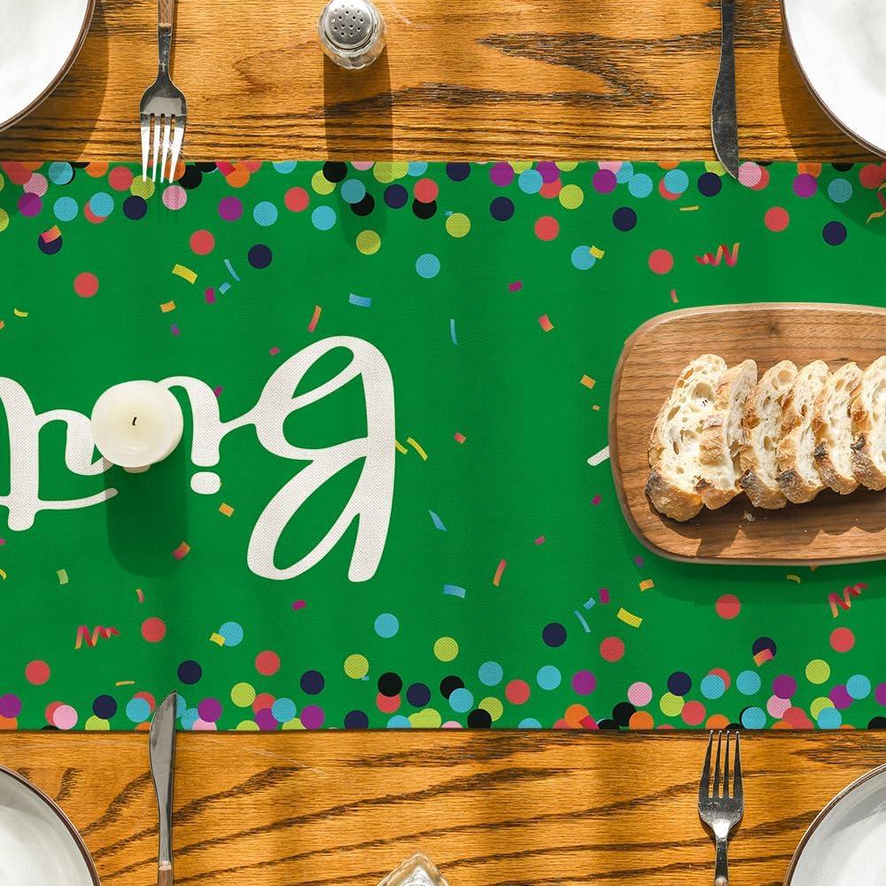 Artoid Mode Polka Dot Pink Happy Birthday Table Runner, Seasonal Kitchen Dining Table Decoration for Home Party Decor 13×72 Inch(Green)