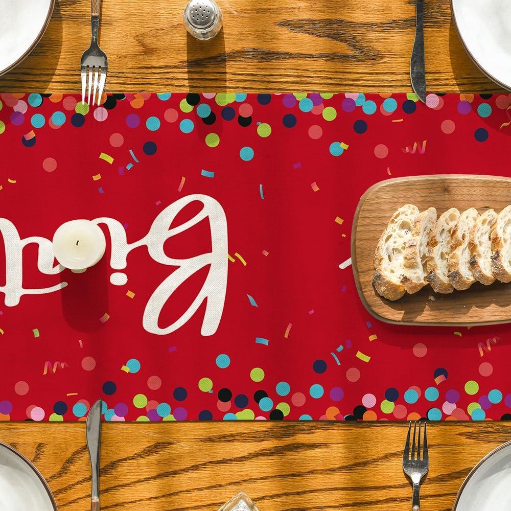 Artoid Mode Polka Dot Pink Happy Birthday Table Runner, Seasonal Kitchen Dining Table Decoration for Home Party Decor 13×72 Inch(Red)