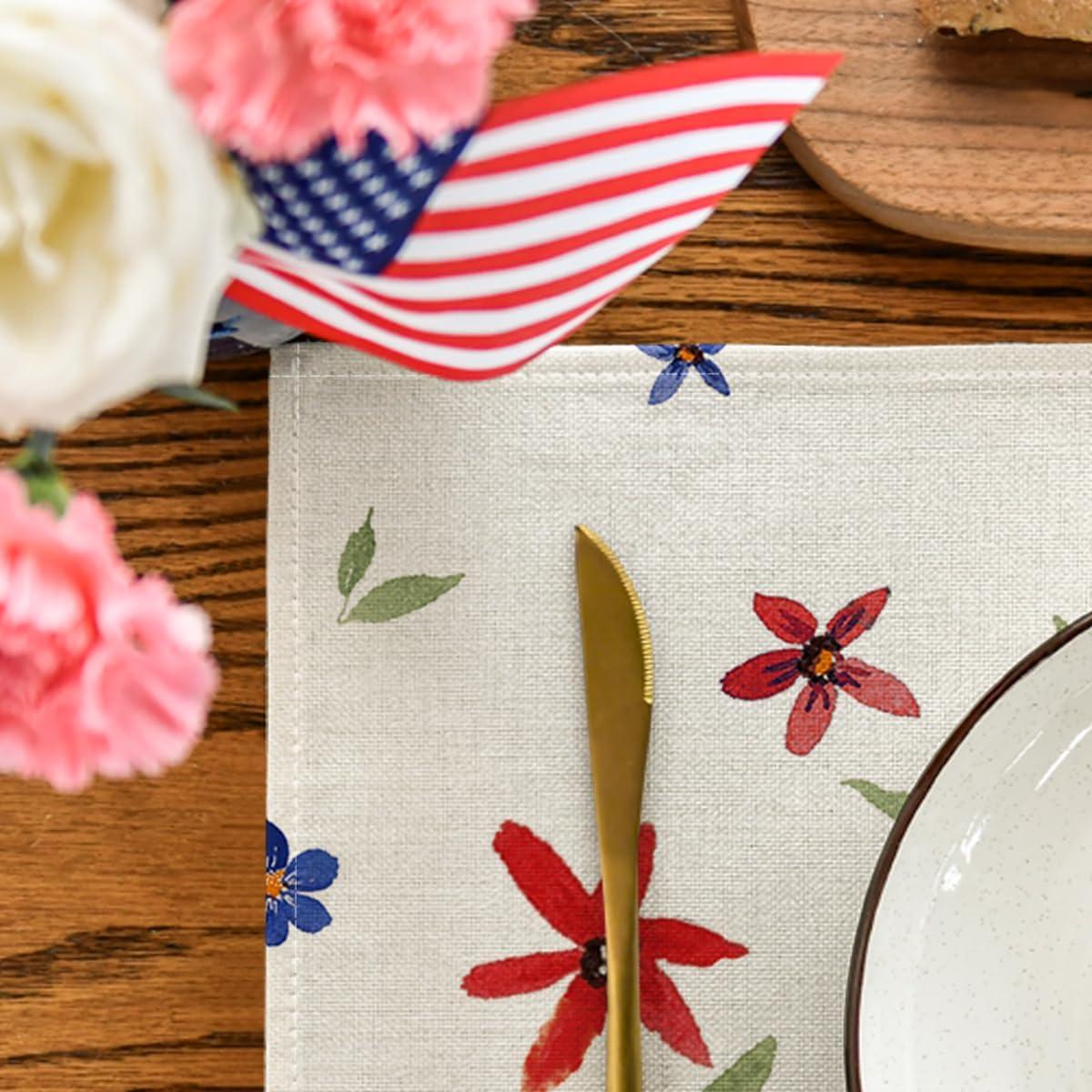 Artoid Mode Poppy Flowers Leaves 4th of July Placemats Set of 4, 12×18 Inch Memorial Day Patriotic Featival Holiday Table Mats for Party Kitchen Dining Decoration(Beige)