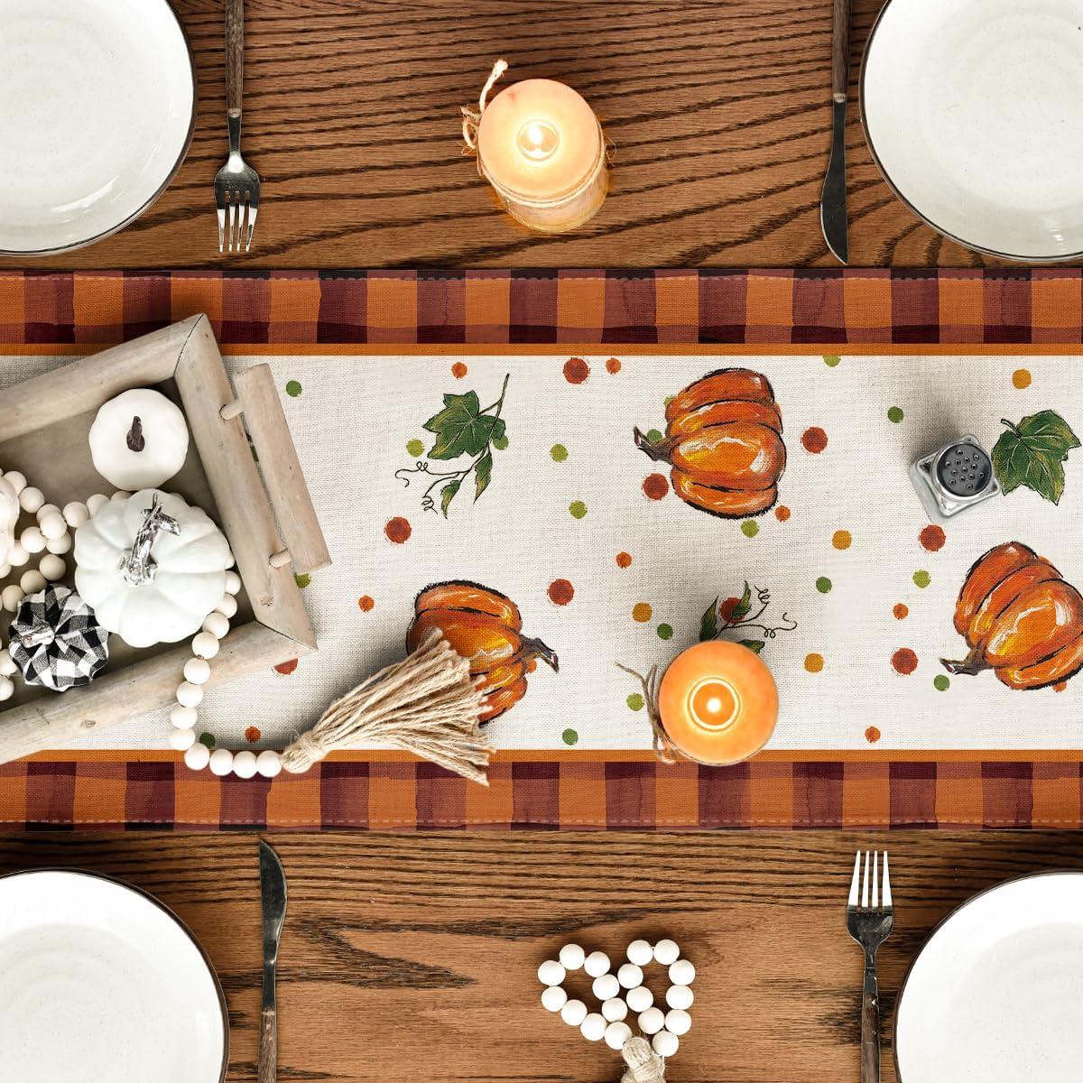 Artoid Mode Pumpkin Bow Buffalo Plaid Fall Table Runner,Seasonal Autumn Kitchen Dining Table Decoration for Home Party Decor 13×72 Inch(Black/Orange)