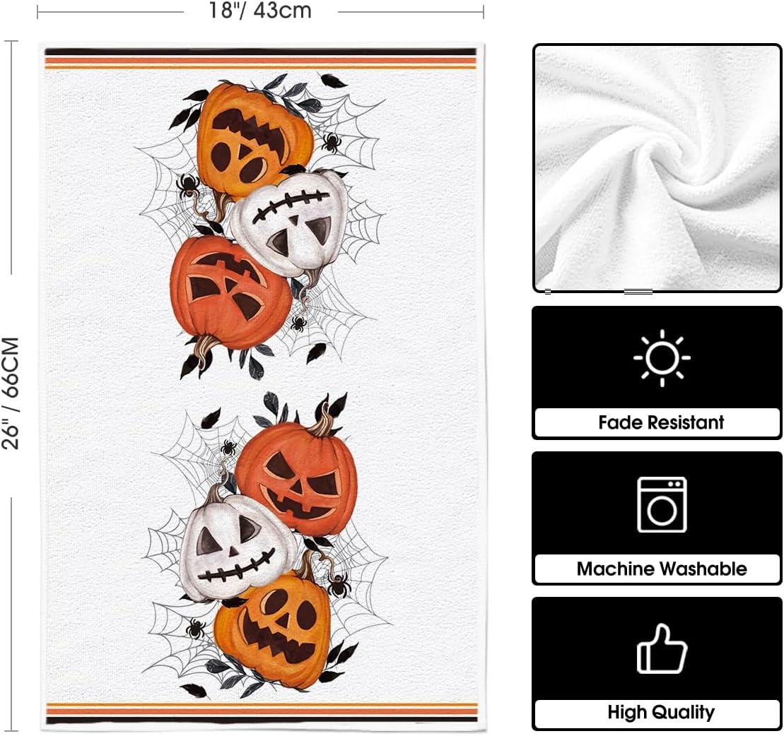 Artoid Mode Pumpkin Happy Halloween Kitchen Towels Dish Towels, 18×26 Inch Trick Or Treat Jack-O’-Lantern Decoration Hand Towels Set of 4