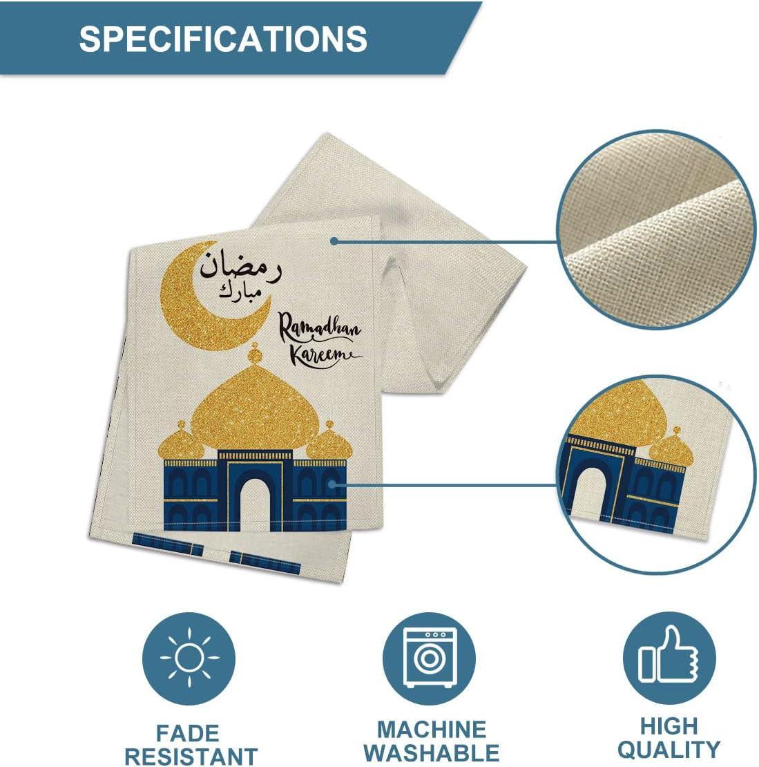 Artoid Mode Ramadan Table Runner, Seasonal Bling Bling Moon and Star Holiday Kitchen Dining Table Runners for Home Party Decor 13 x 60 Inch(Yellow)