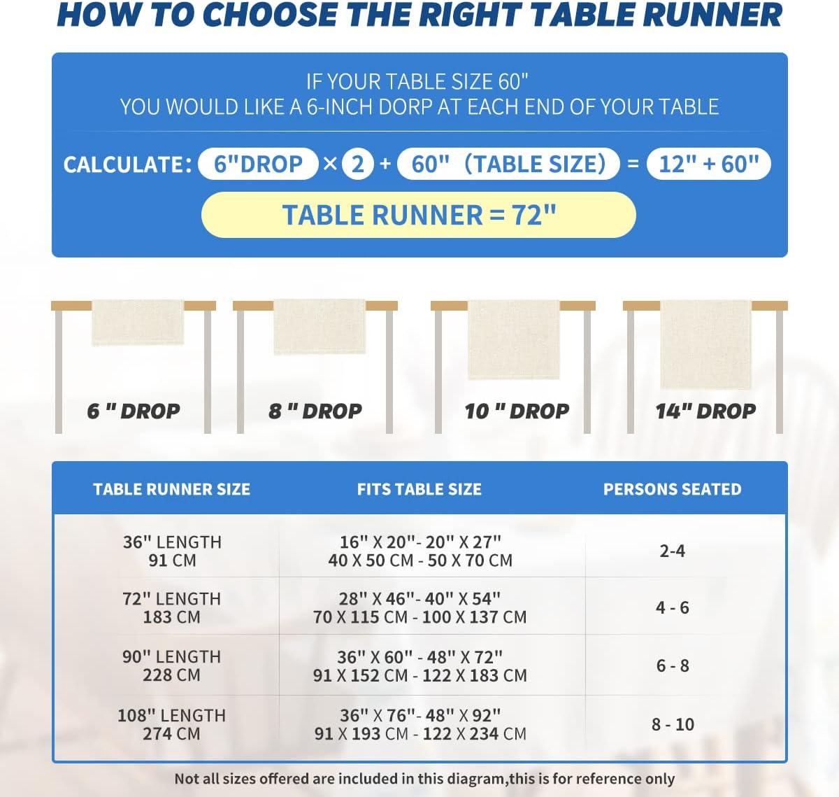 Fits Table Size : This table runner is 13 x 60 inch, appropriate for a table that can seat 2-4 people, better match your table and give you a delightful dining experience